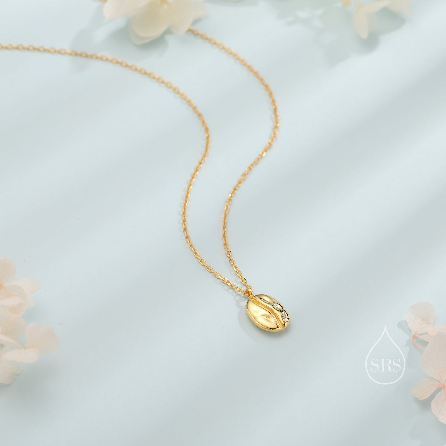 Coffee Bean Pendant Necklace in Sterling Silver, Silver or Gold, Coffee Necklace, Coffee Lover, Coffee Pendant