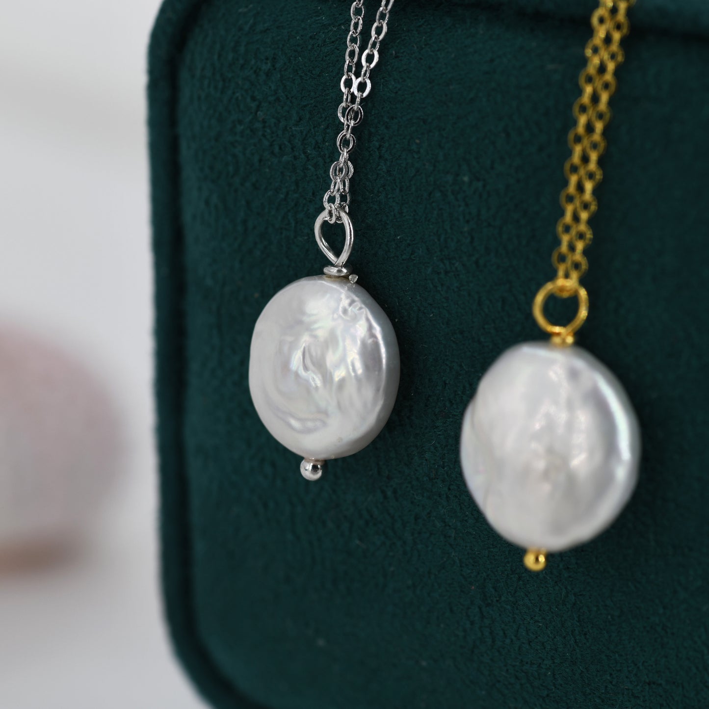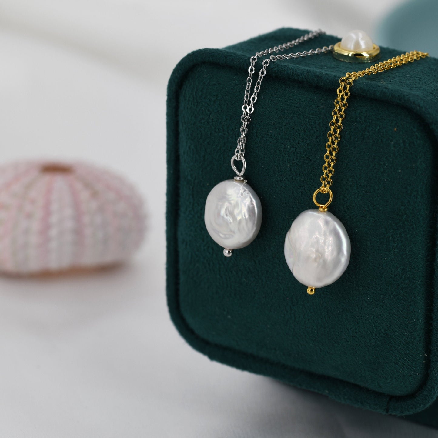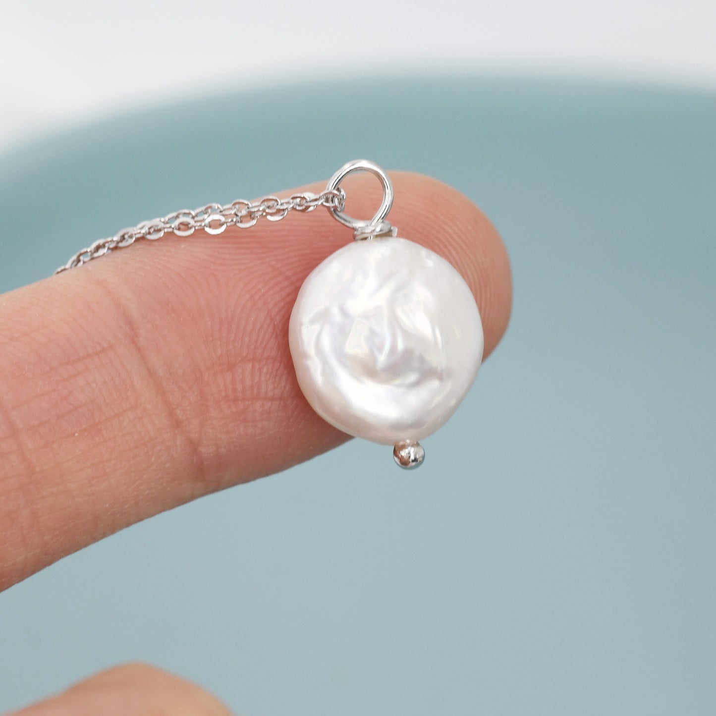 Coin Baroque Pearl Necklace in Sterling Silver, Keshi Pearl Necklace, Natural Freshwater Pearl Necklace