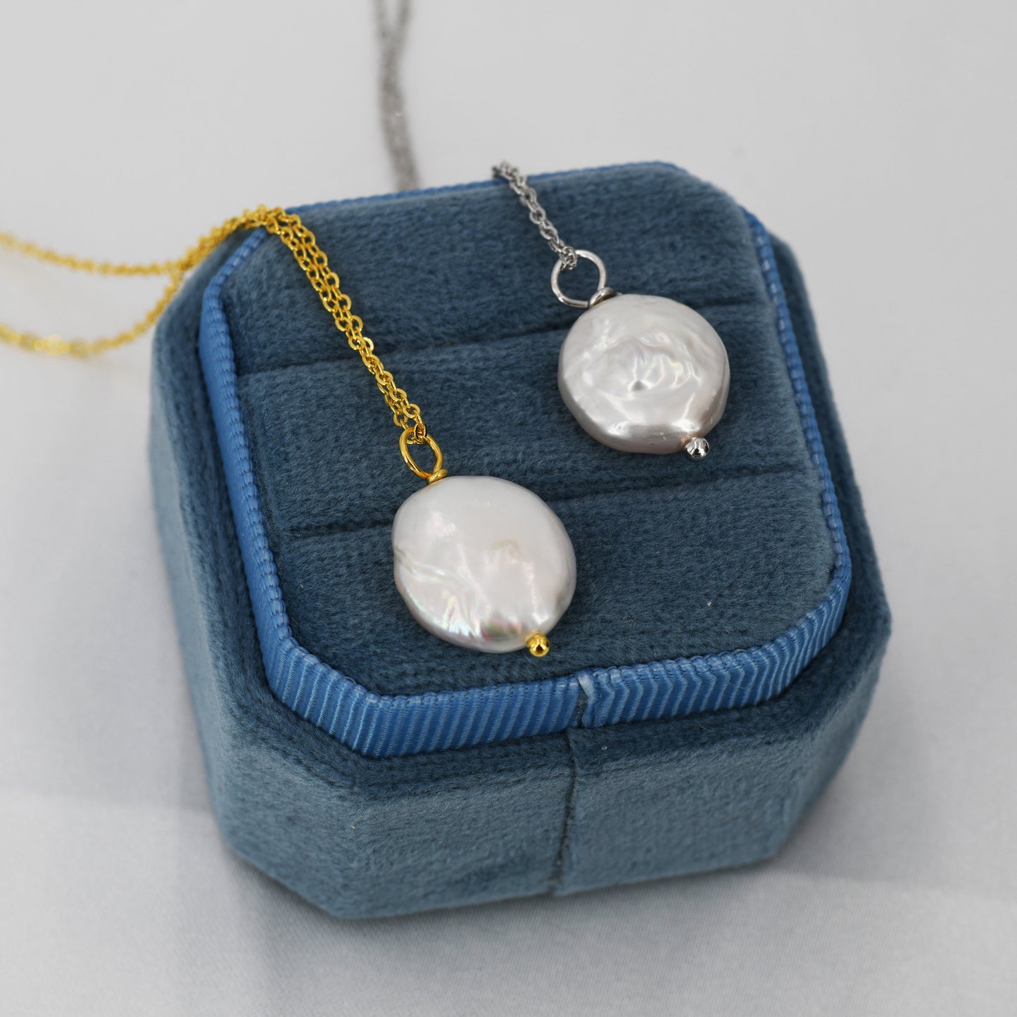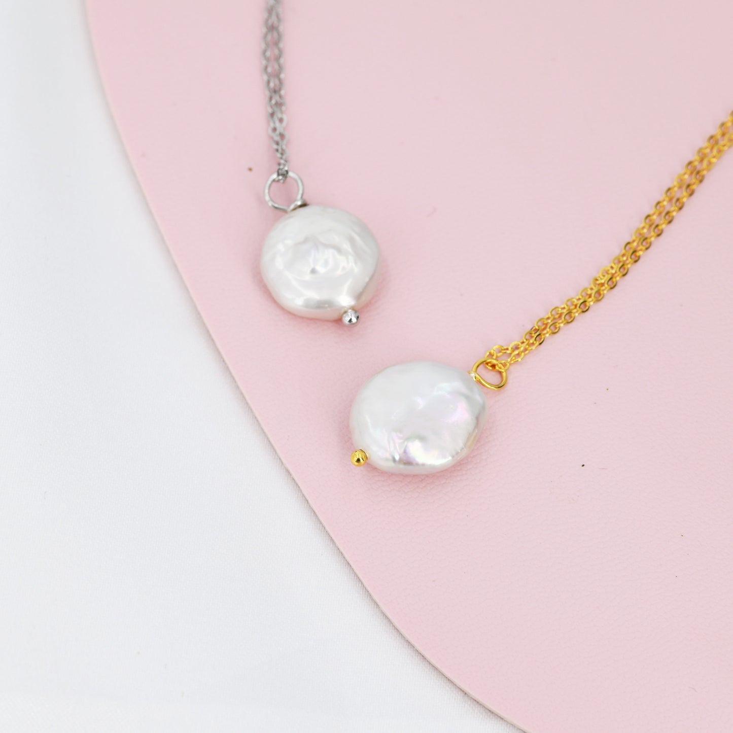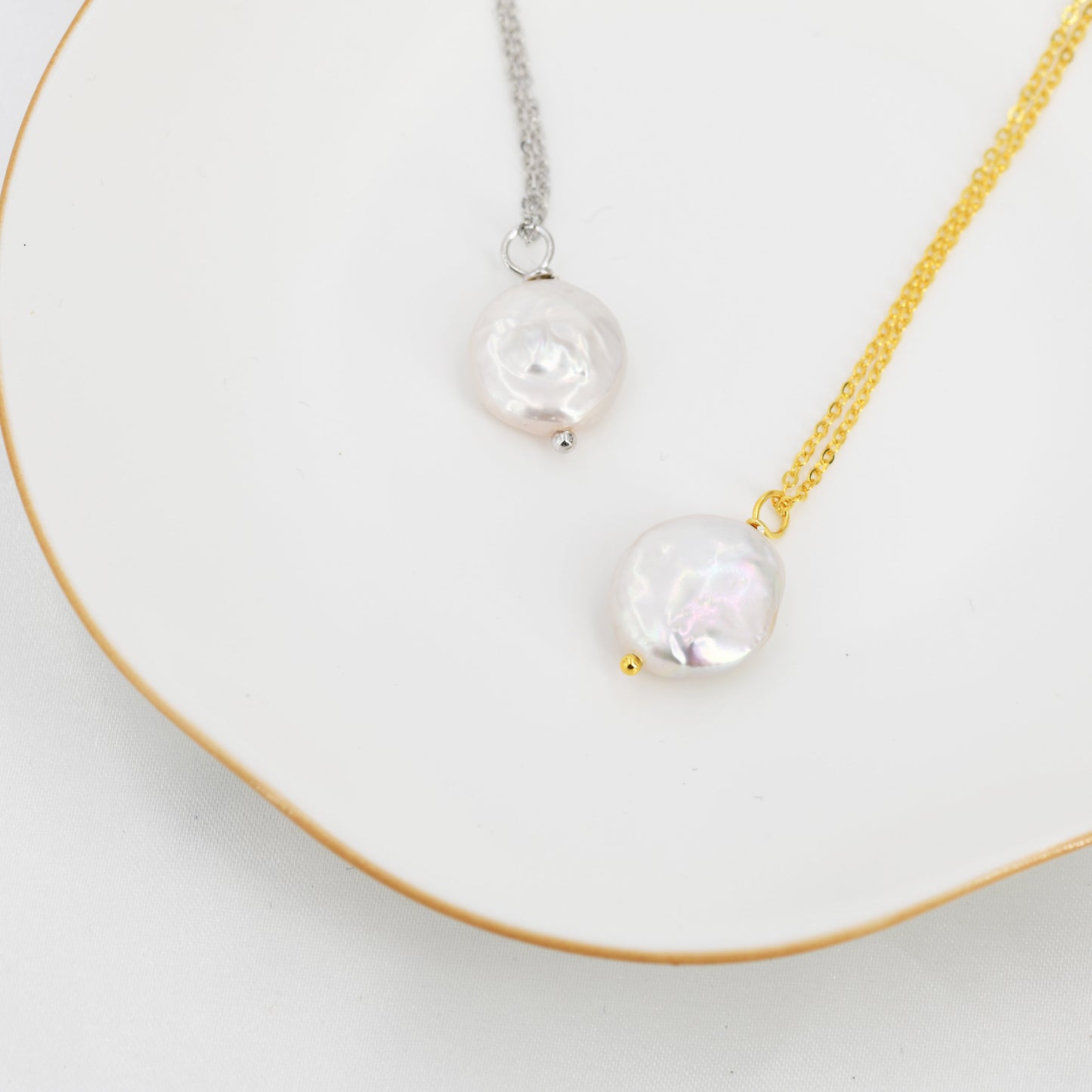 Coin Baroque Pearl Necklace in Sterling Silver, Keshi Pearl Necklace, Natural Freshwater Pearl Necklace