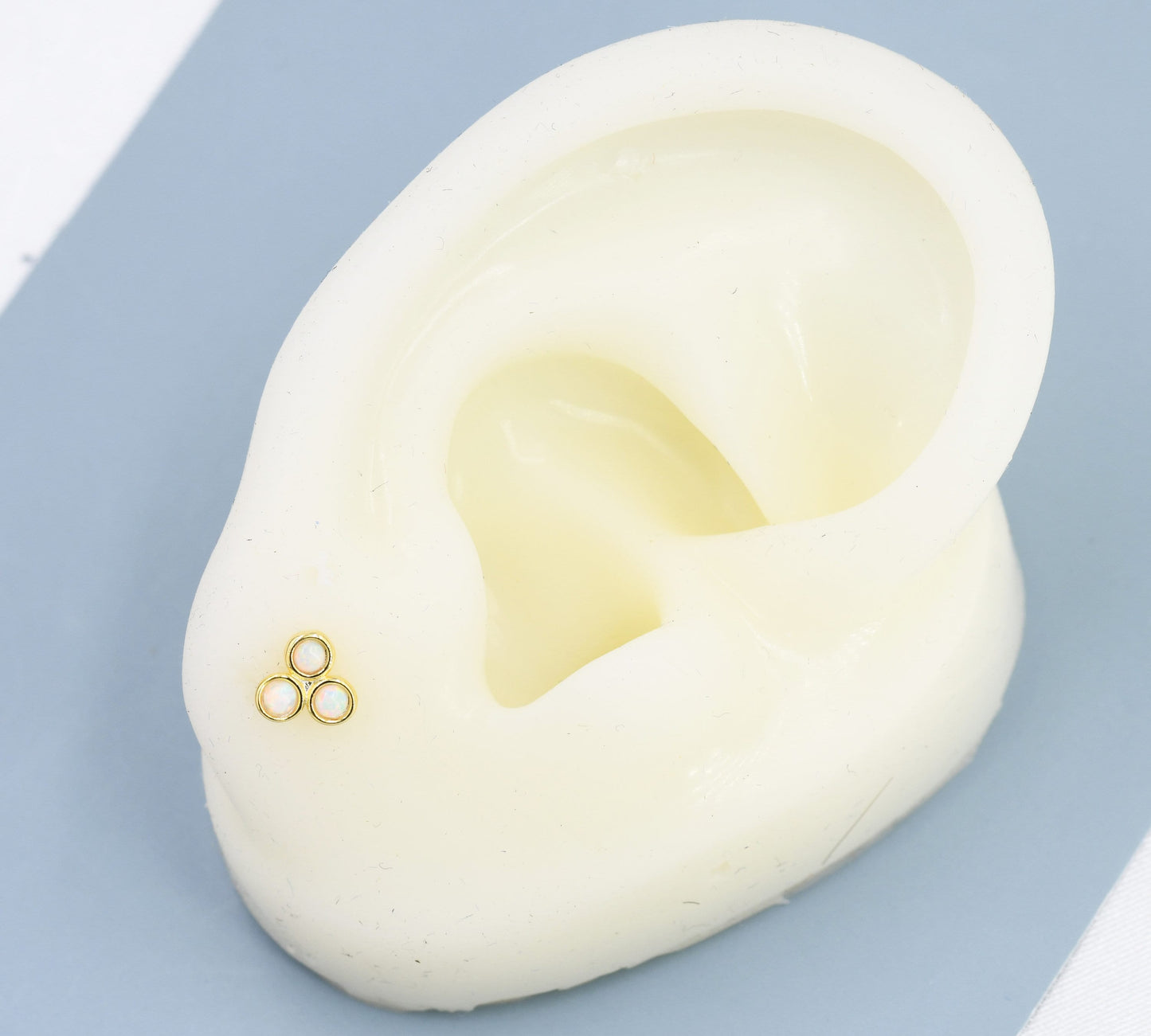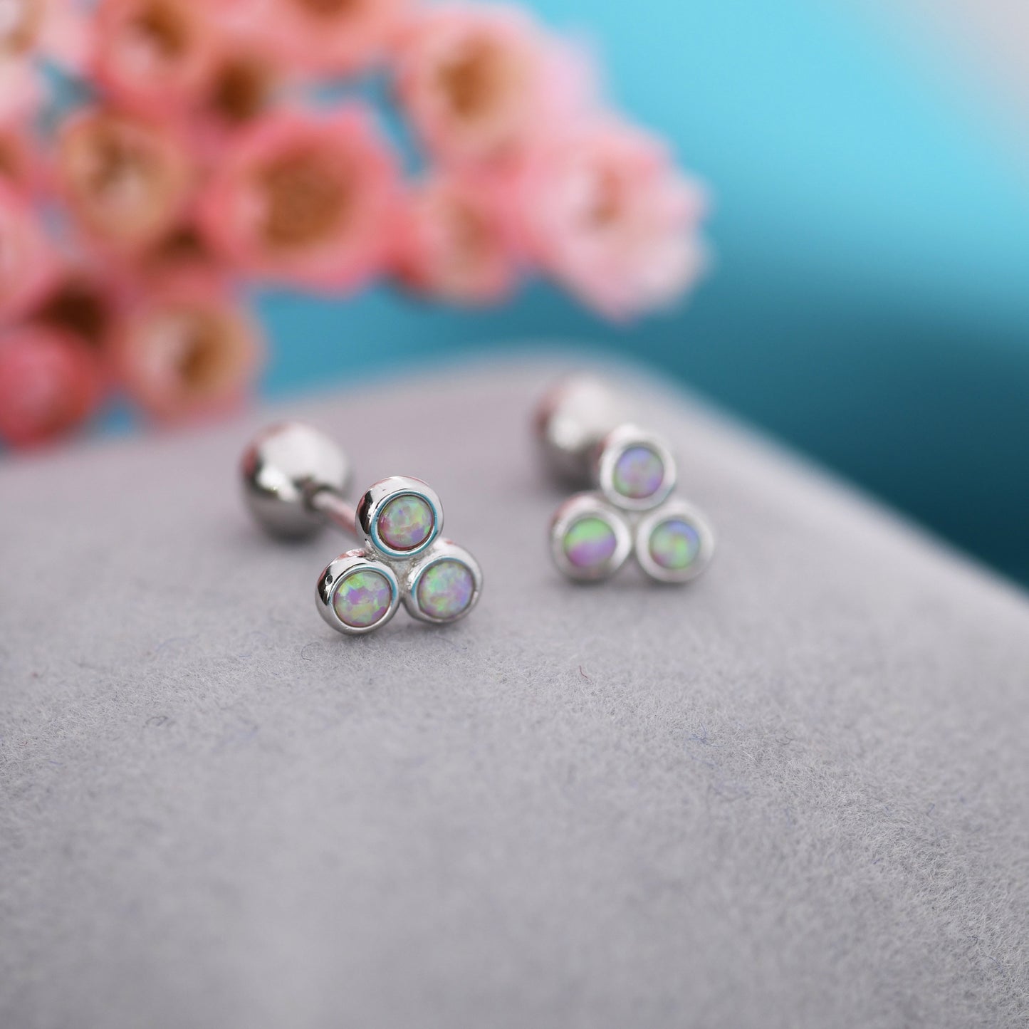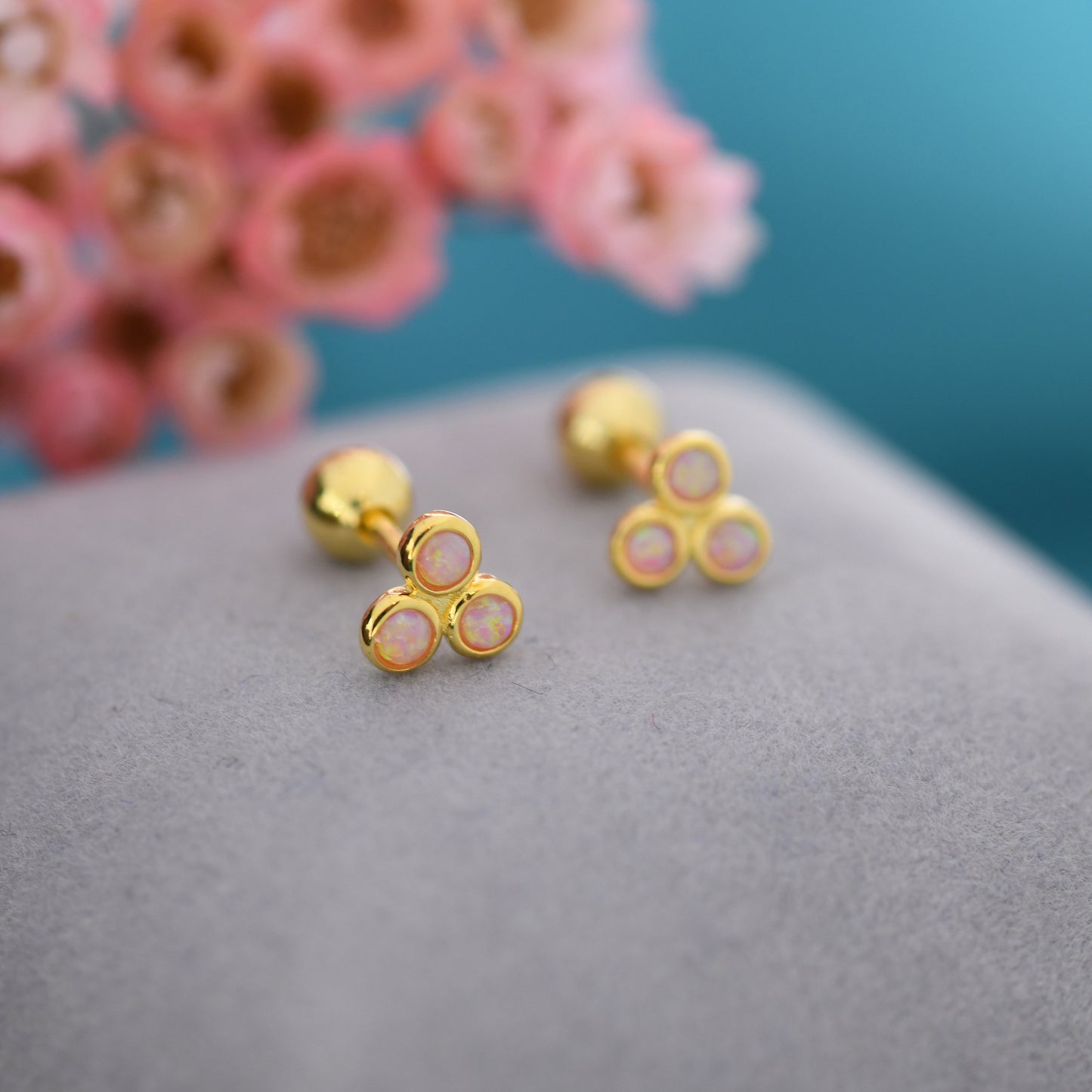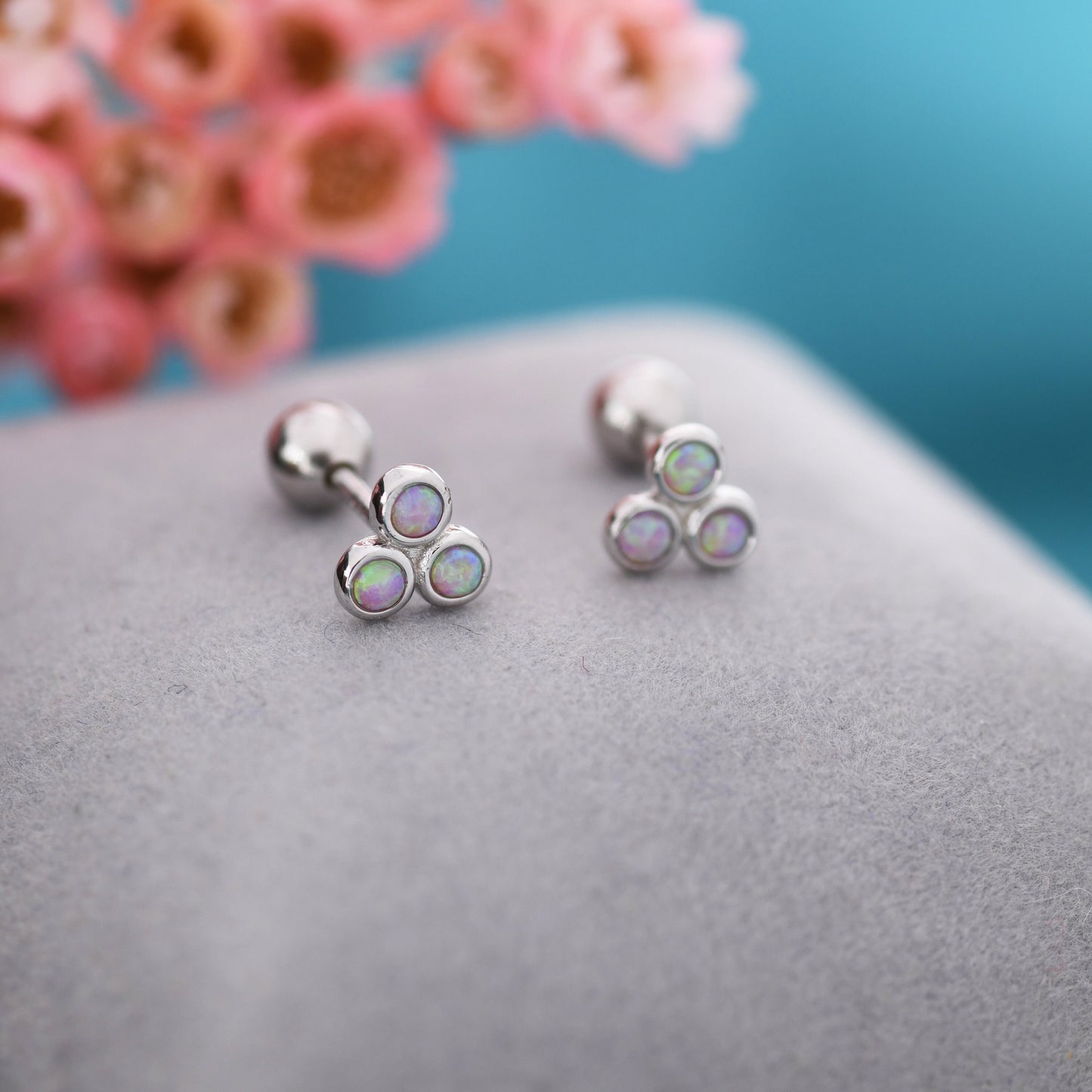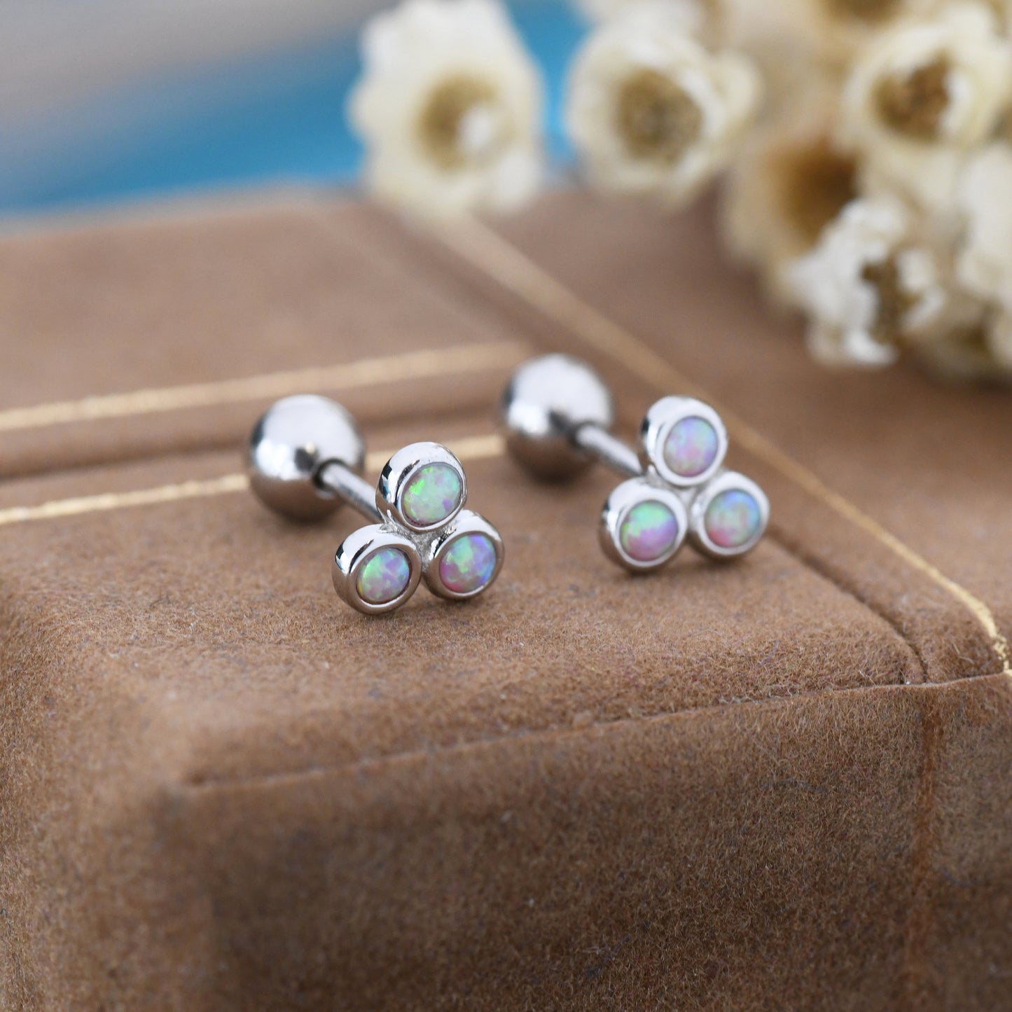 Cosmic Dust Pink Opal Trio Screw back Earrings in Sterling Silver, Silver or Gold, Opal Trinity Earrings, Screwback Barbell