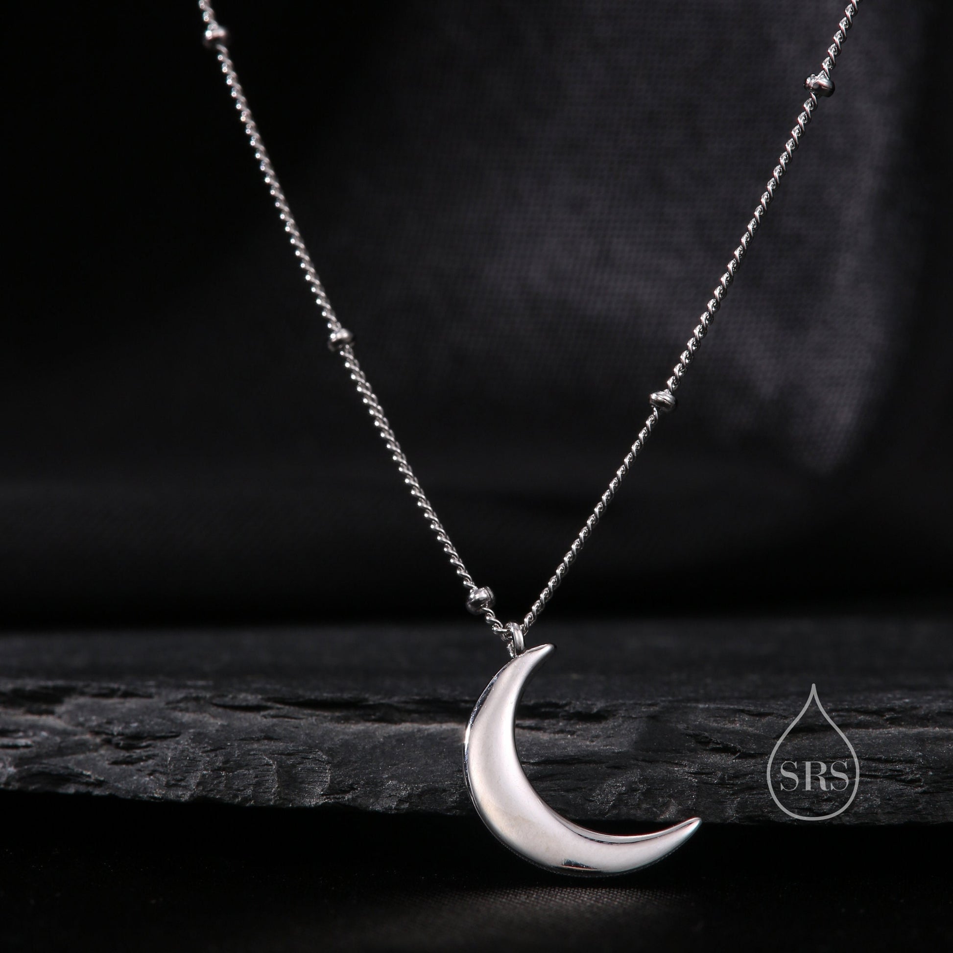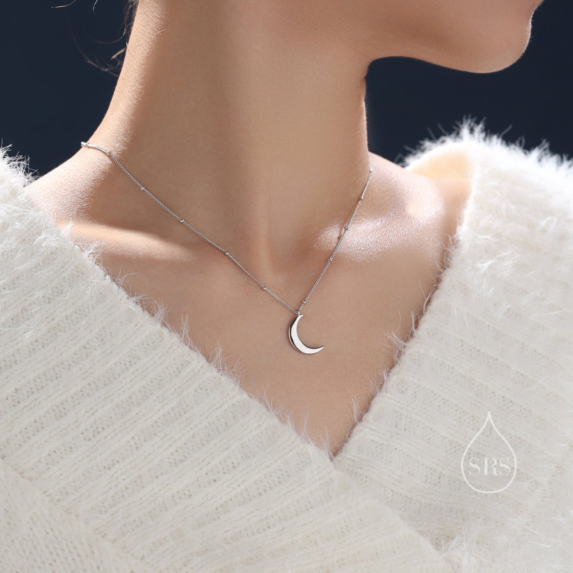 Crescent Moon Pendant Necklace in Sterling Silver with a Satellite Chain - Moon Necklace - Gold or Silver - Whimsical and Pretty Jewellery
