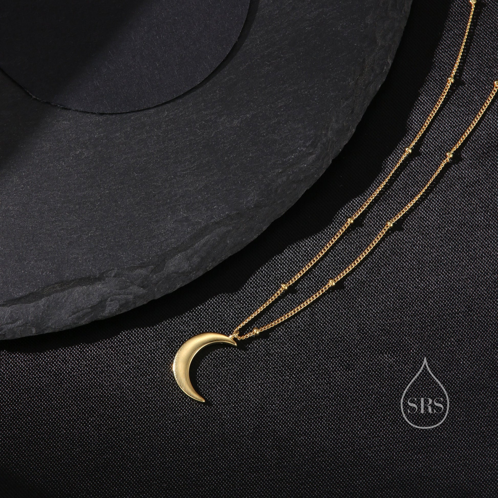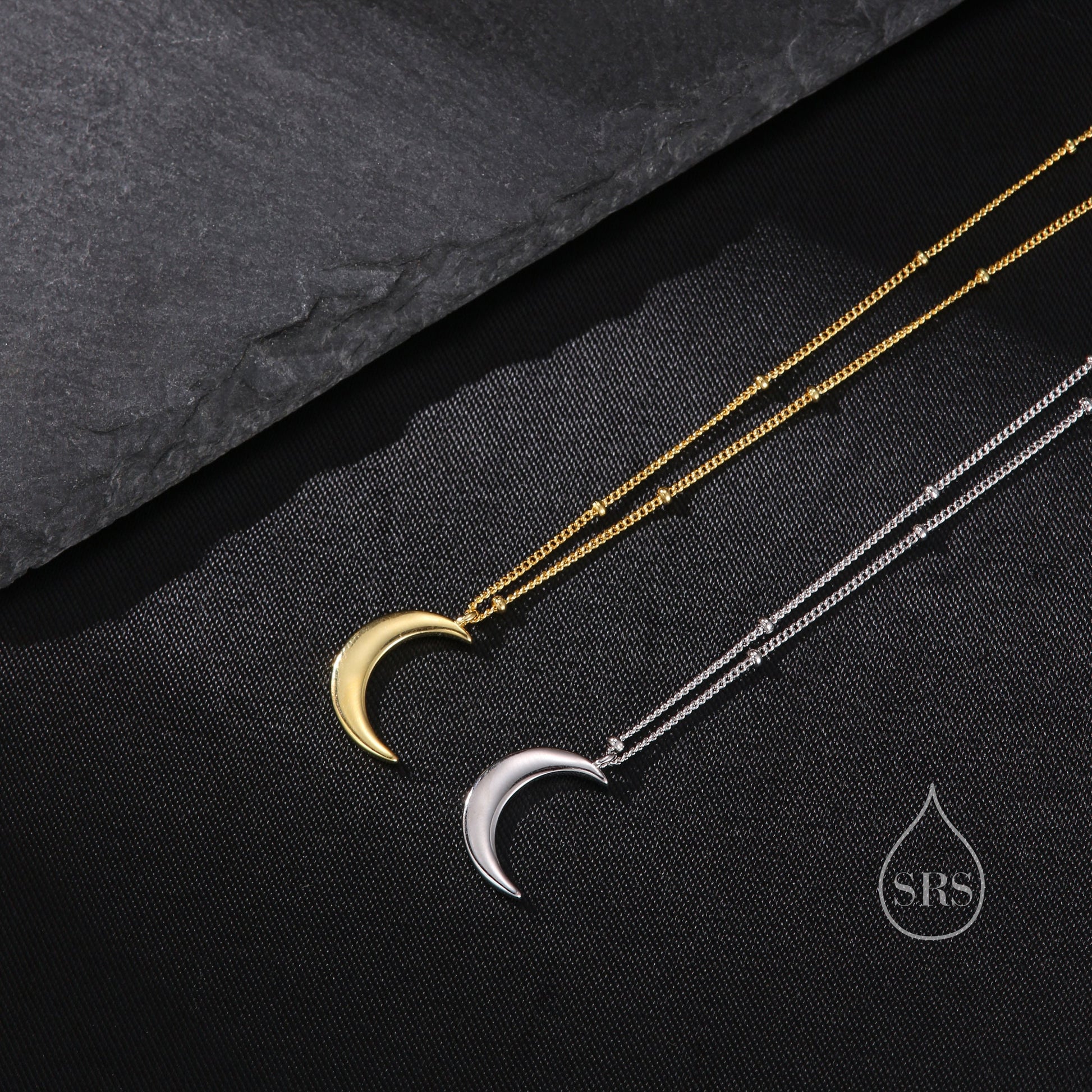 Crescent Moon Pendant Necklace in Sterling Silver - Moon Necklace - Gold or Silver - Cute, Fun, Whimsical and Pretty Jewellery