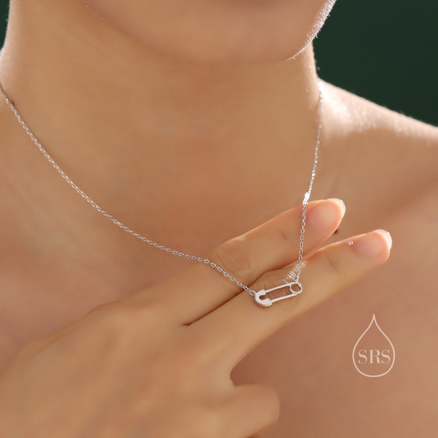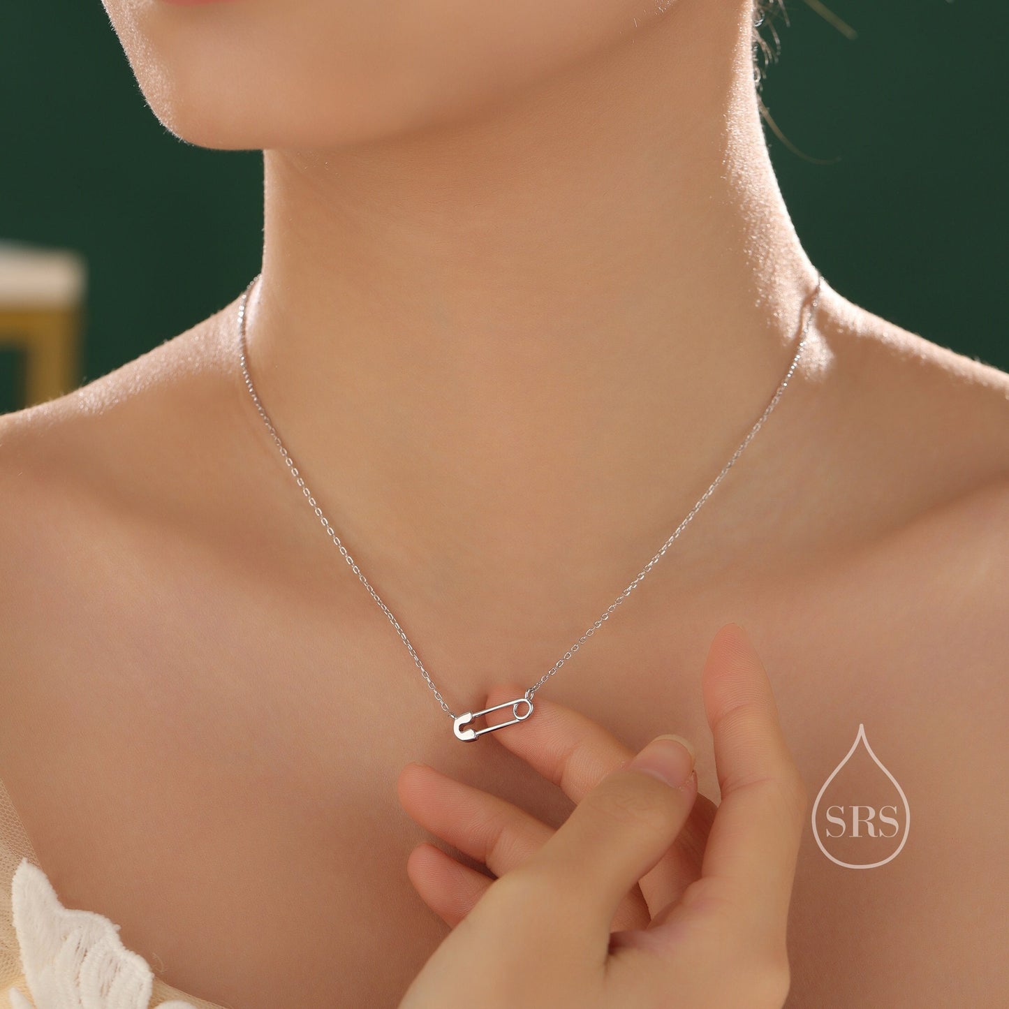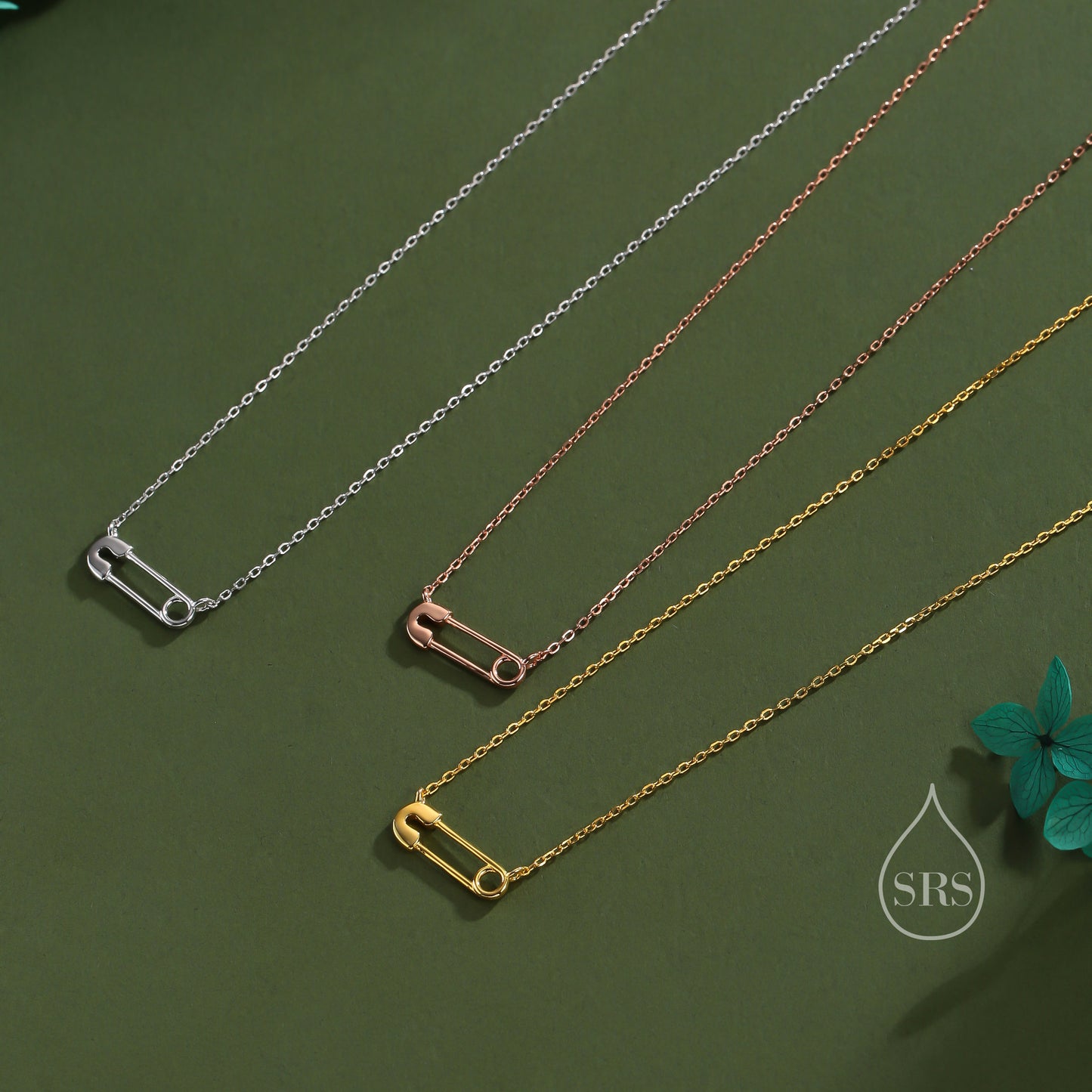 Cute Little Safety Pin Pendant Necklace in Sterling Silver, Silver or Gold or Rose Gold, Silver Safety Pin Necklace, Gift for DIY Lover