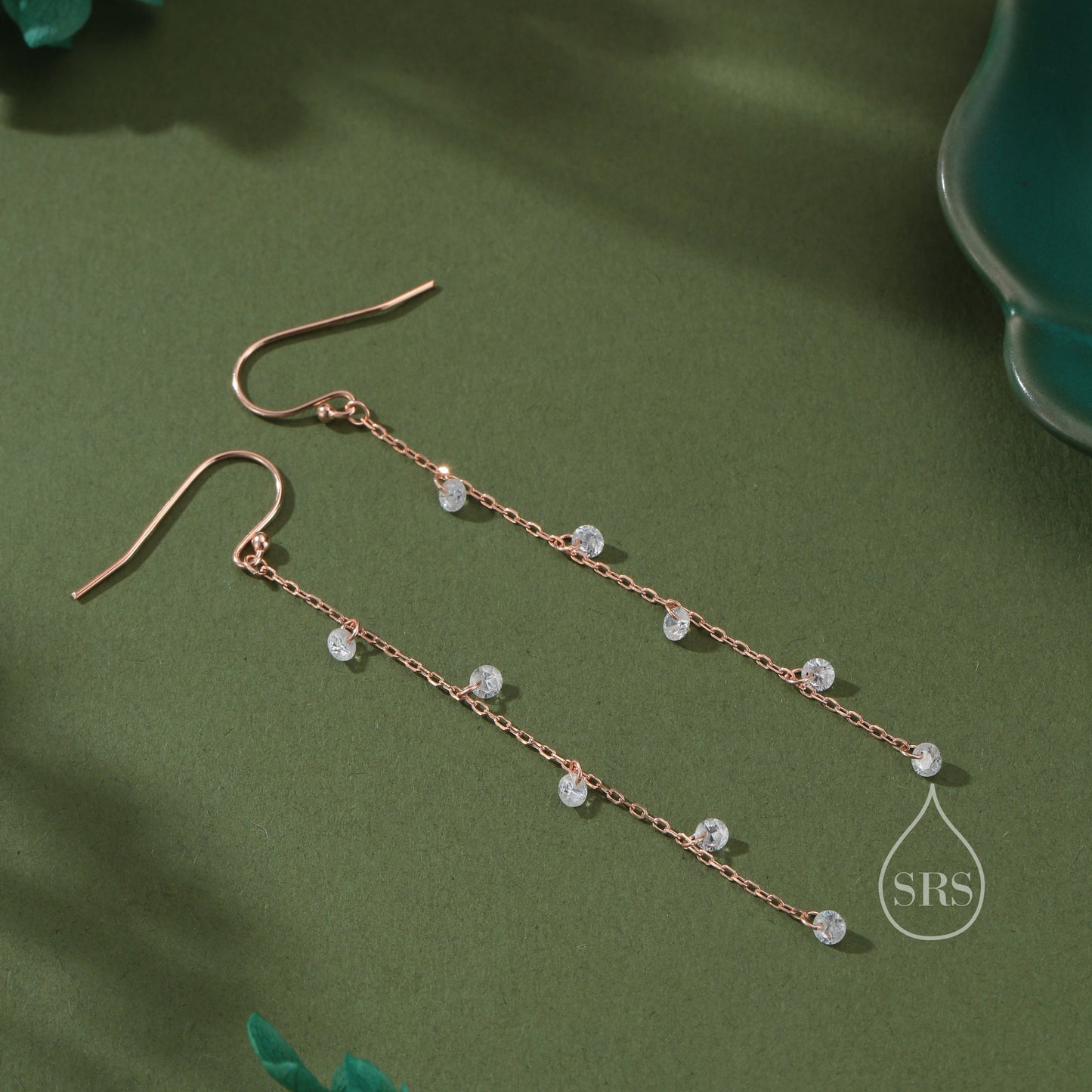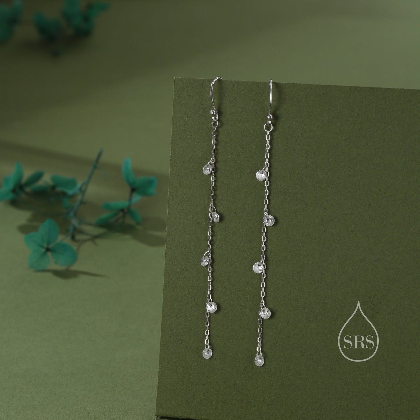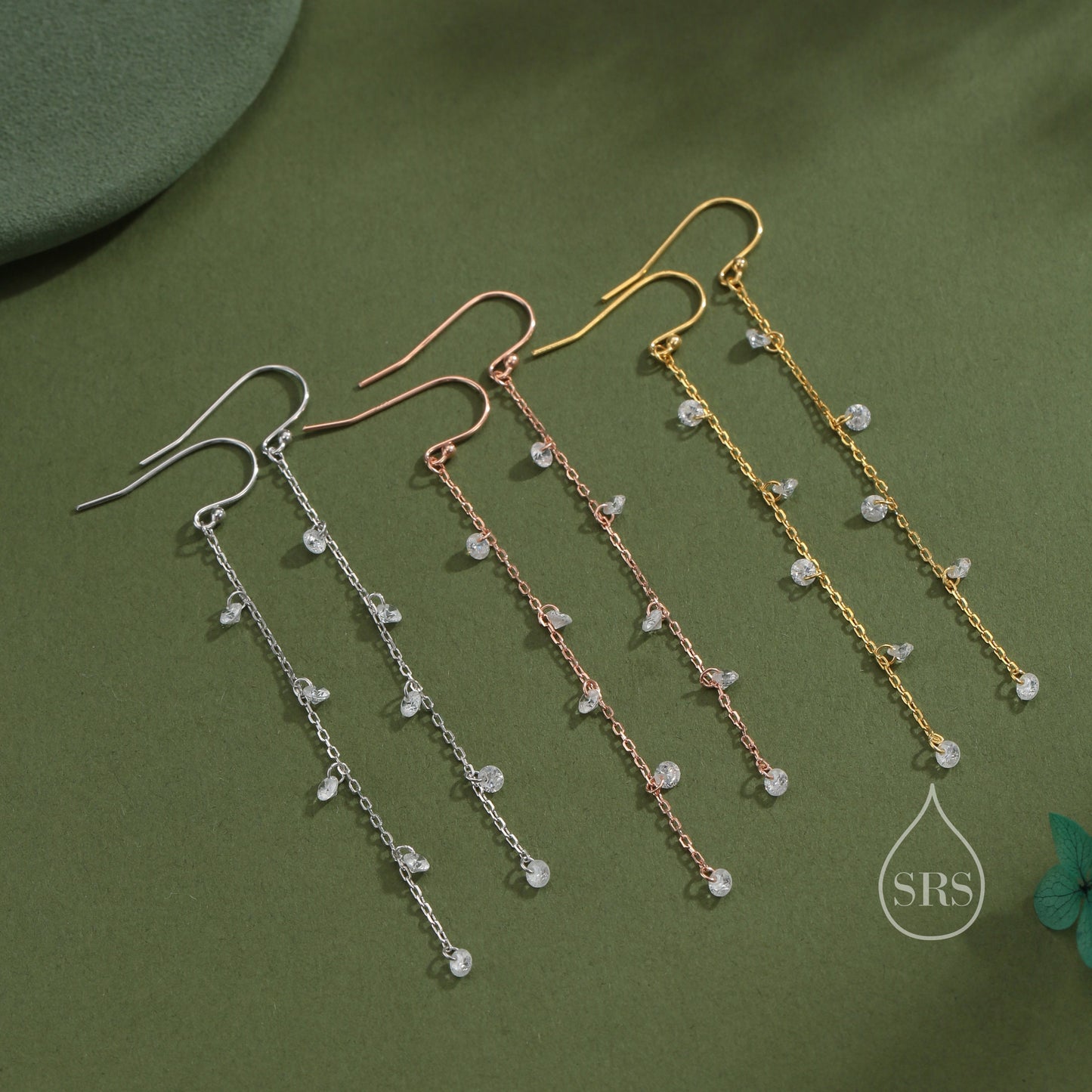CZ Cascade Drop Hook Earrings in Sterling Silver, Silver or Gold or Rose Gold, Geometric CZ Dangle Drop Earrings, CZ Long Drop Earrings