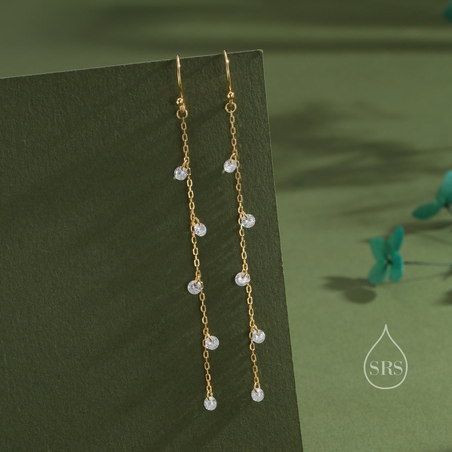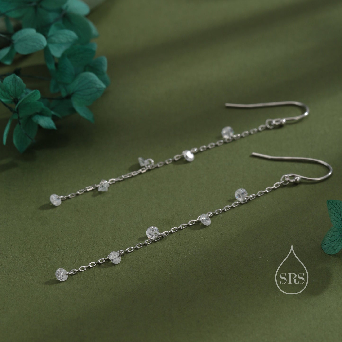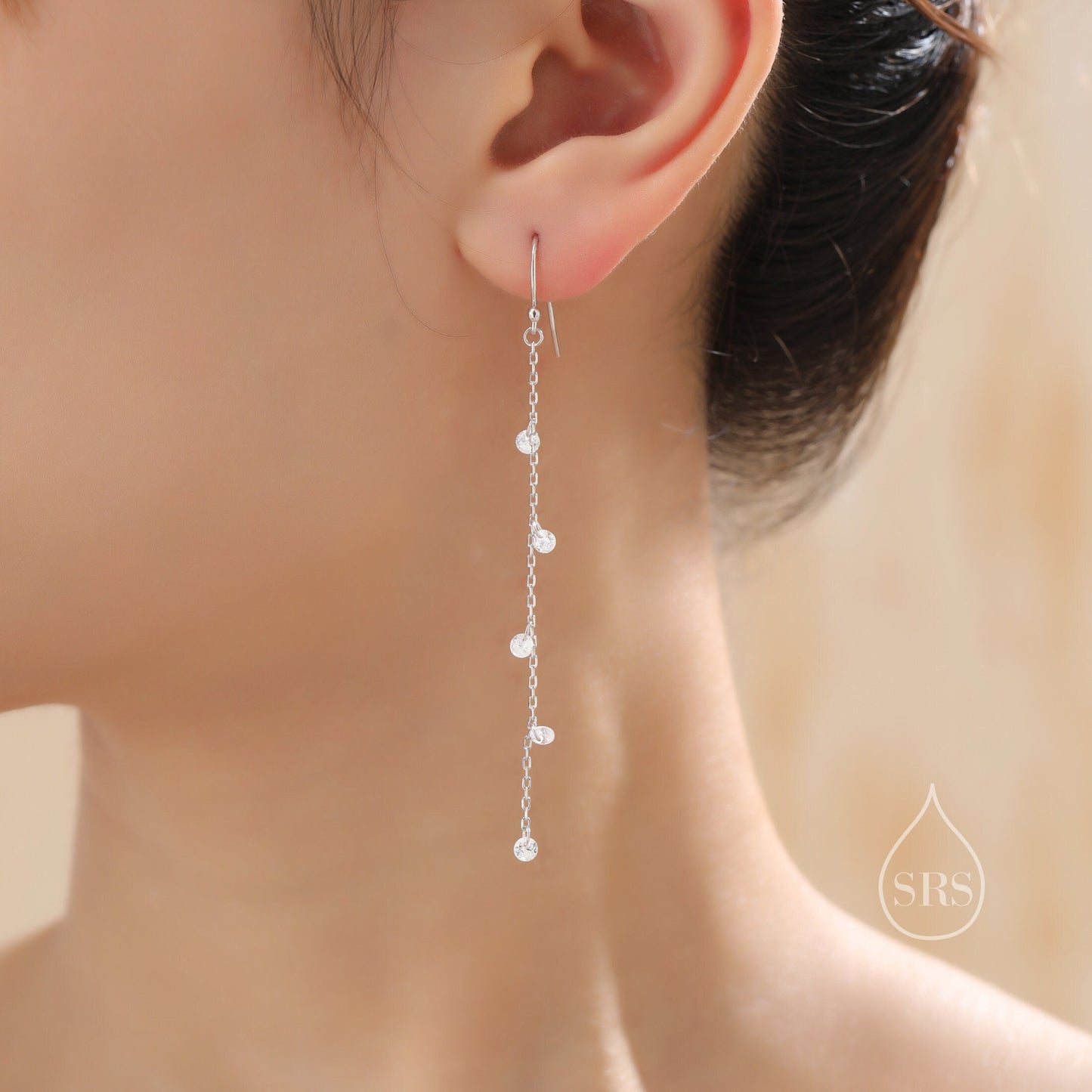 CZ Cascade Drop Hook Earrings in Sterling Silver, Silver or Gold or Rose Gold, Geometric CZ Dangle Drop Earrings, CZ Long Drop Earrings