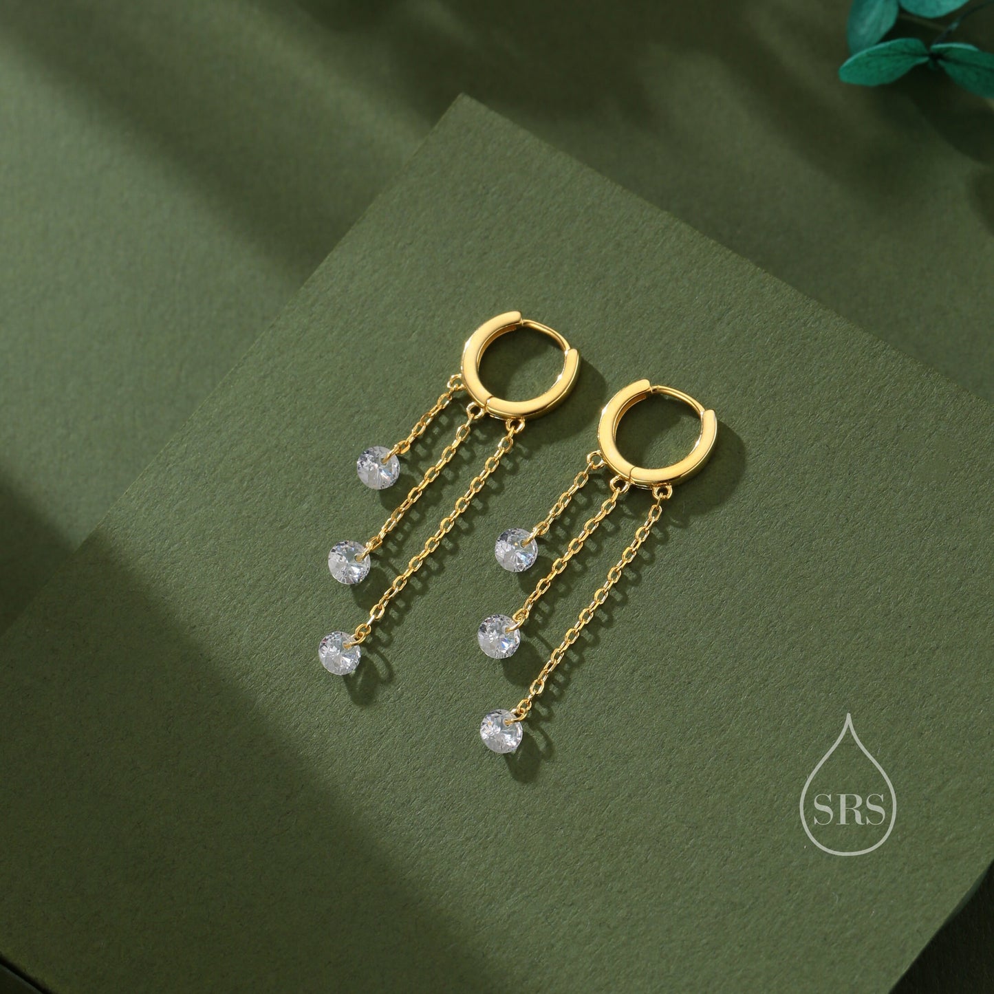 CZ Cascade Huggie Hoop Earrings in Sterling Silver, Silver or Gold, Geometric CZ Dangle Hoop Earrings, CZ Hoop Earrings
