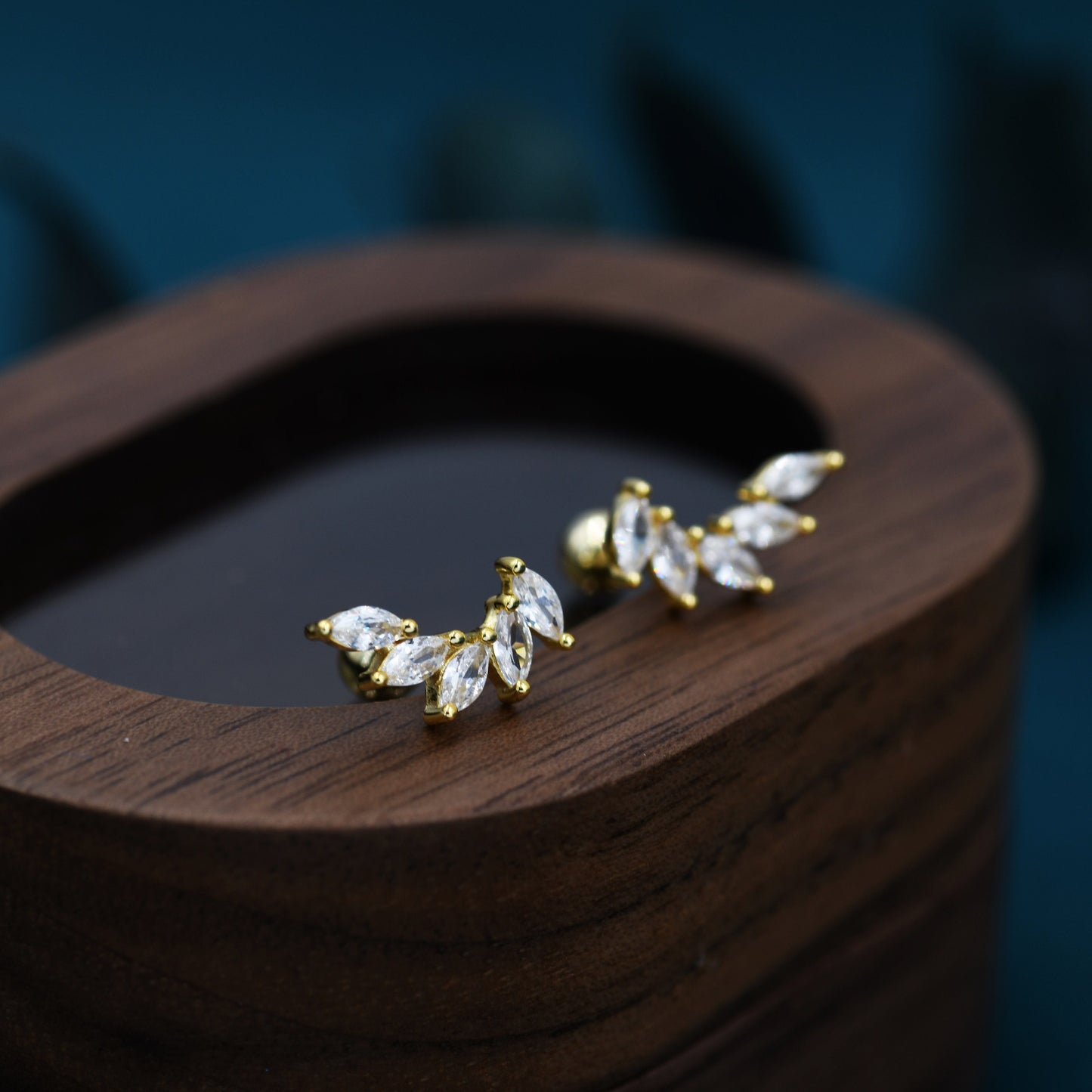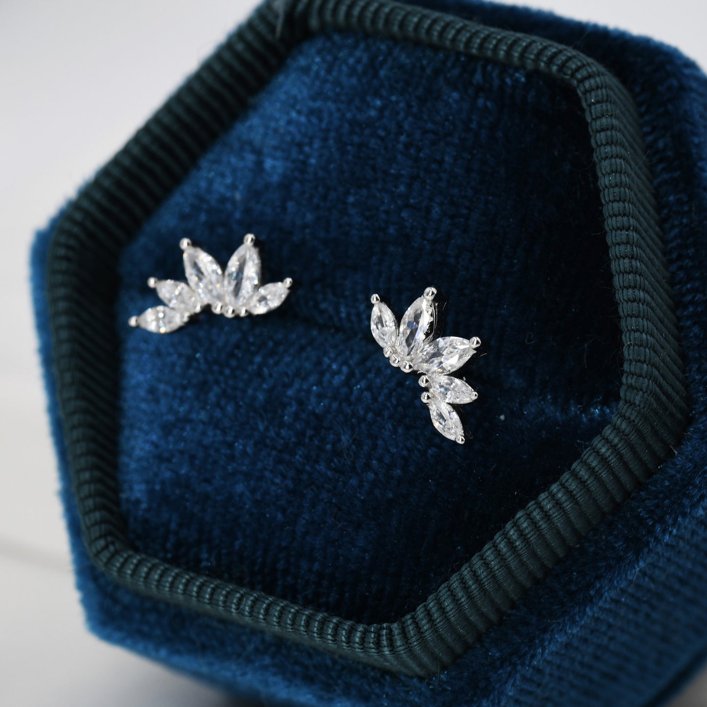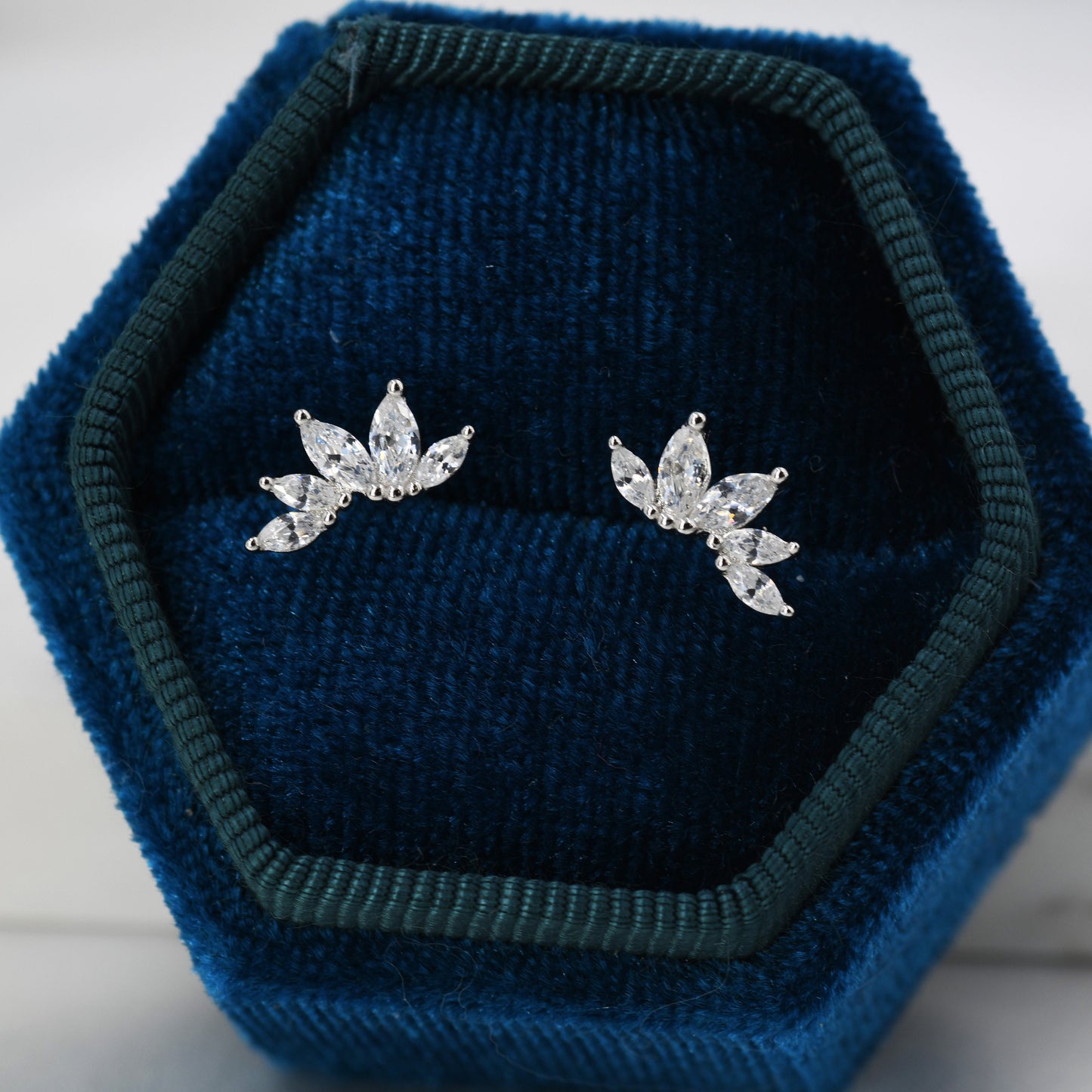 CZ Cluster Stud Earrings in Sterling Silver, Silver or Gold, Dainty Marquise Crystal Mini Crawler Earrings, Bridesmaid's Jewellery