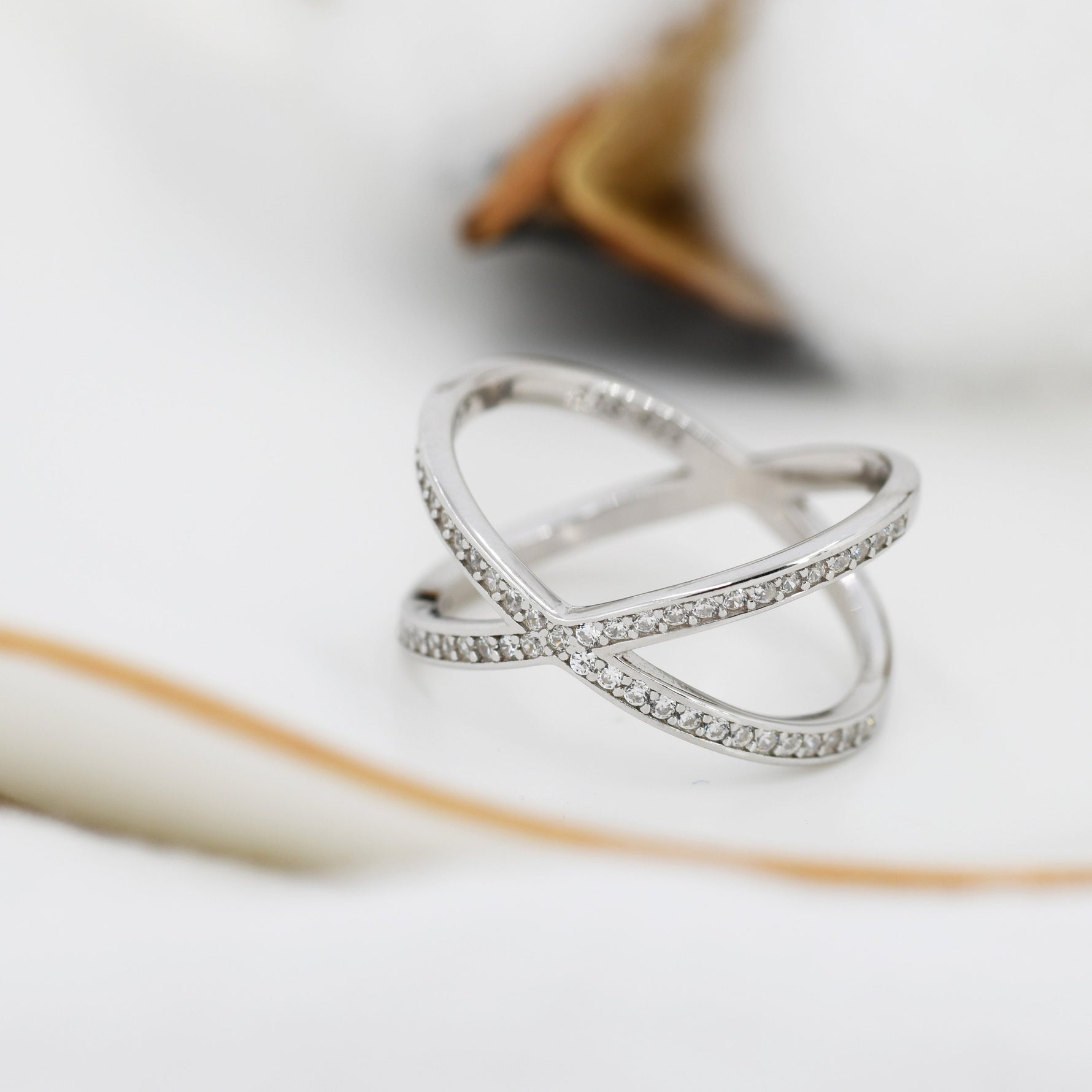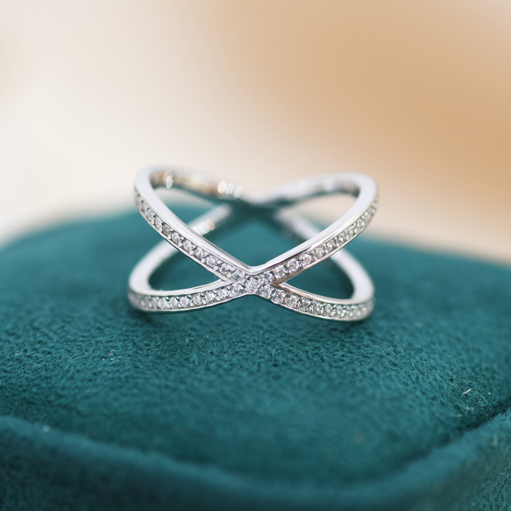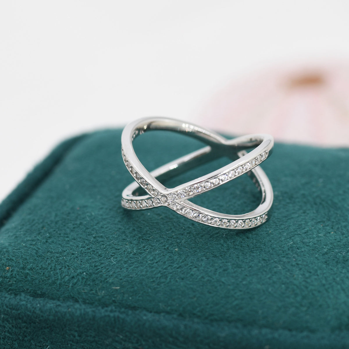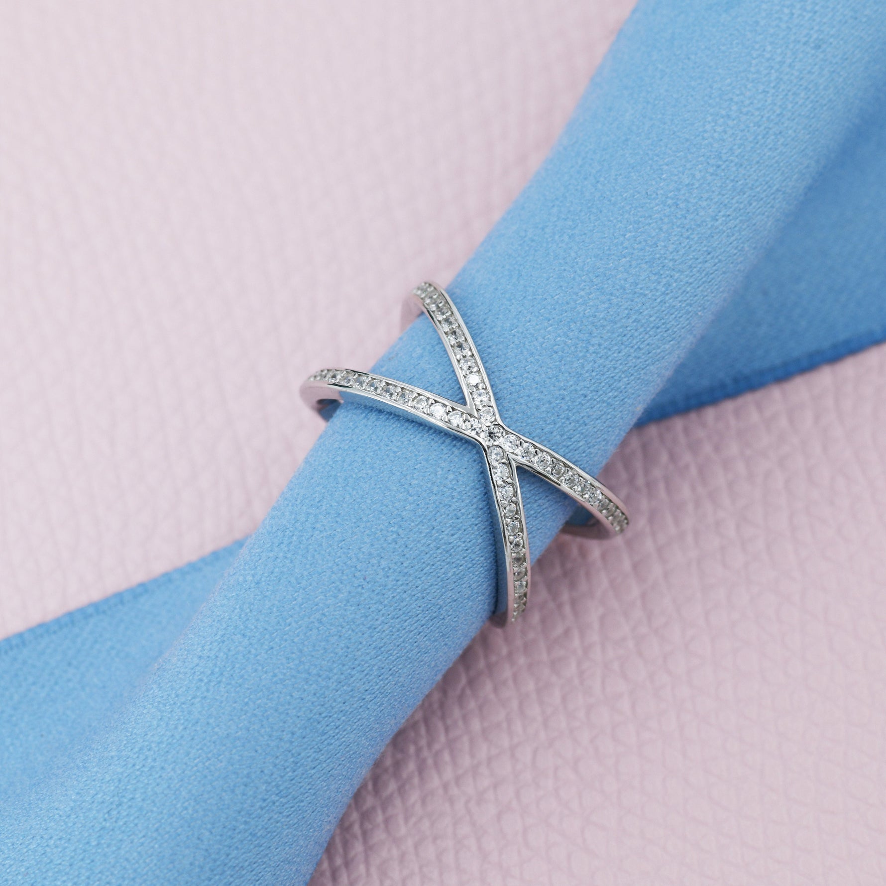 CZ Cross Ring in Sterling Silver Cross Ring, X Ring, Crossover Ring, Geometric and Minimalist Ring, Size US 5 - 8