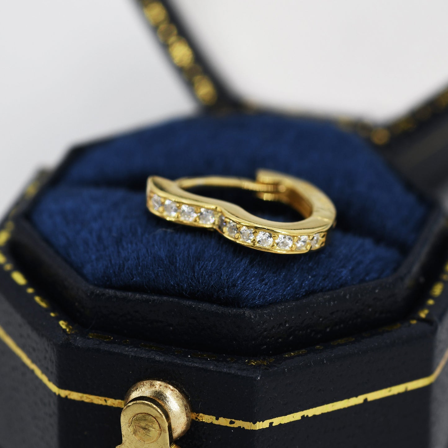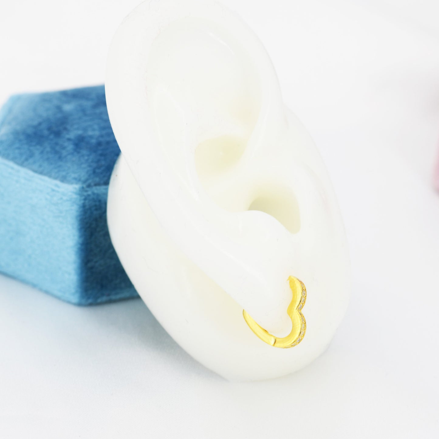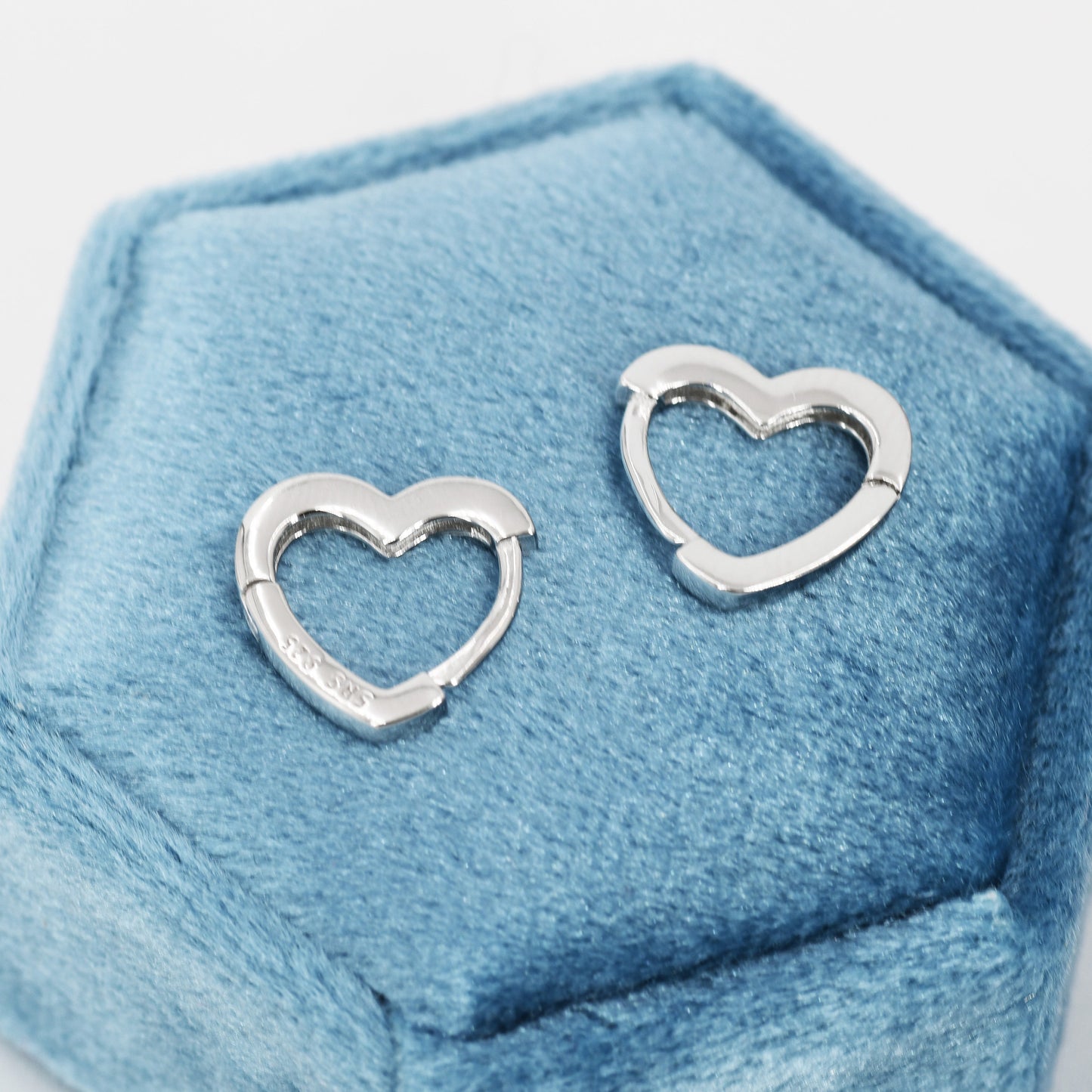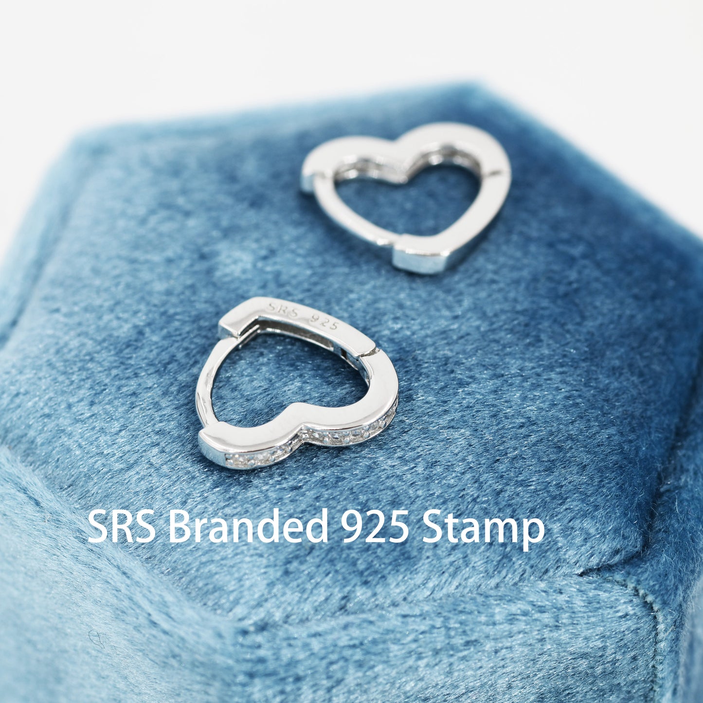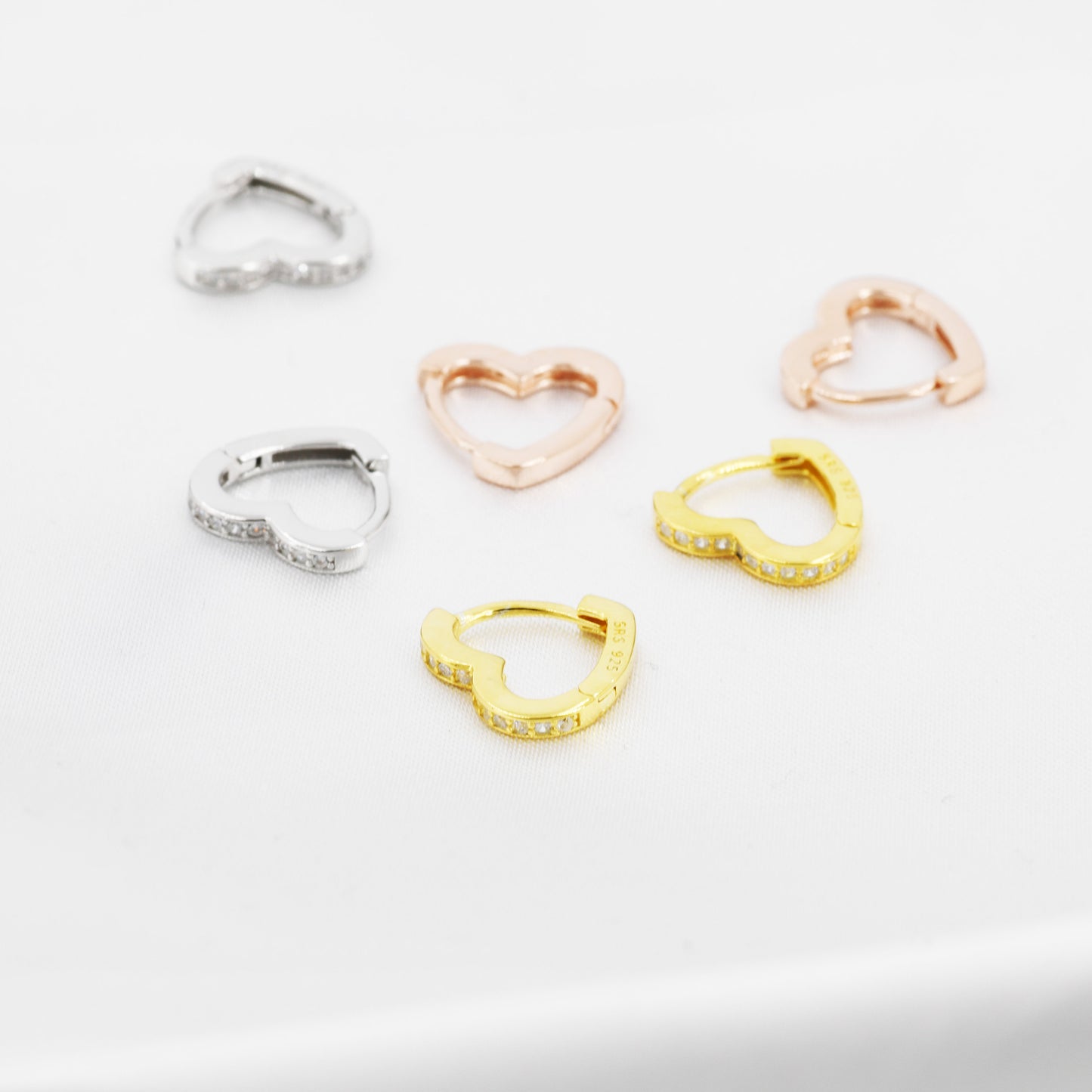 CZ Heart Huggie Hoop Earrings in Sterling Silver, Silver, Gold or Rose Gold with CZ Crystals, Minimalist Geometric Design