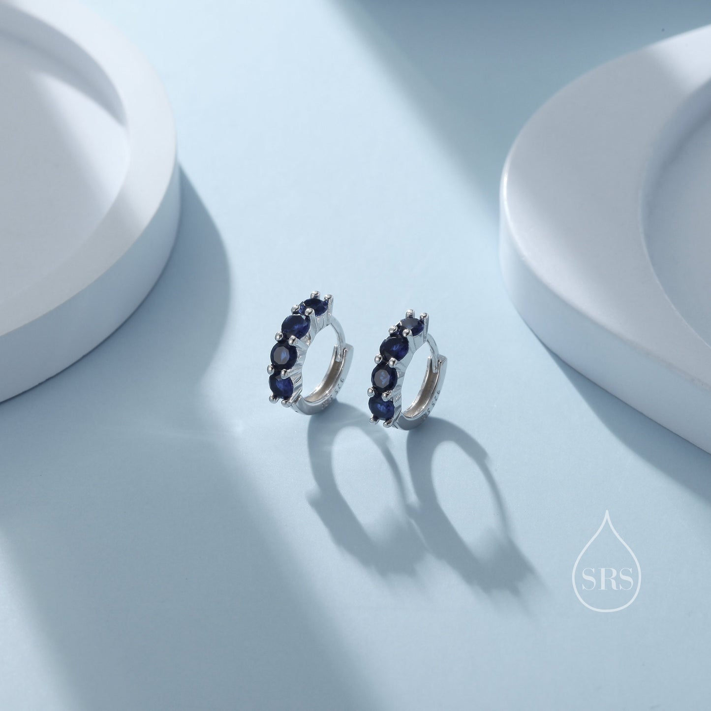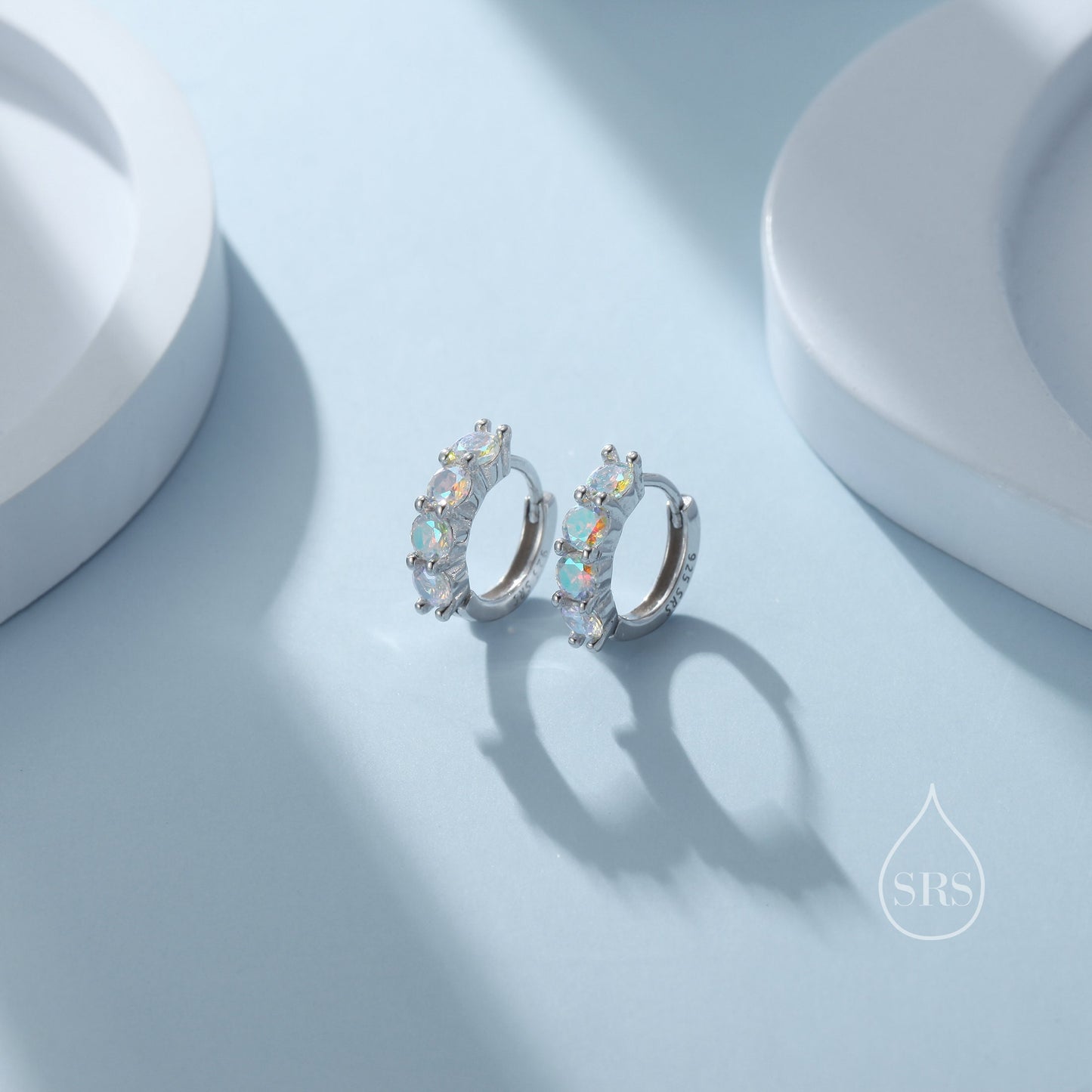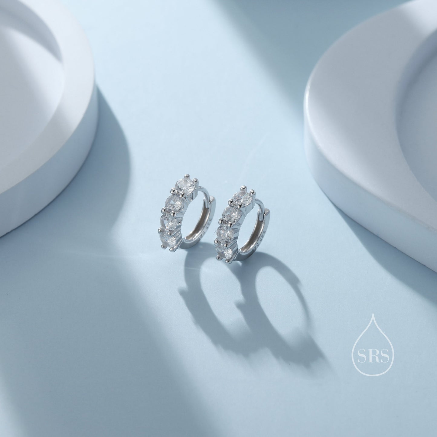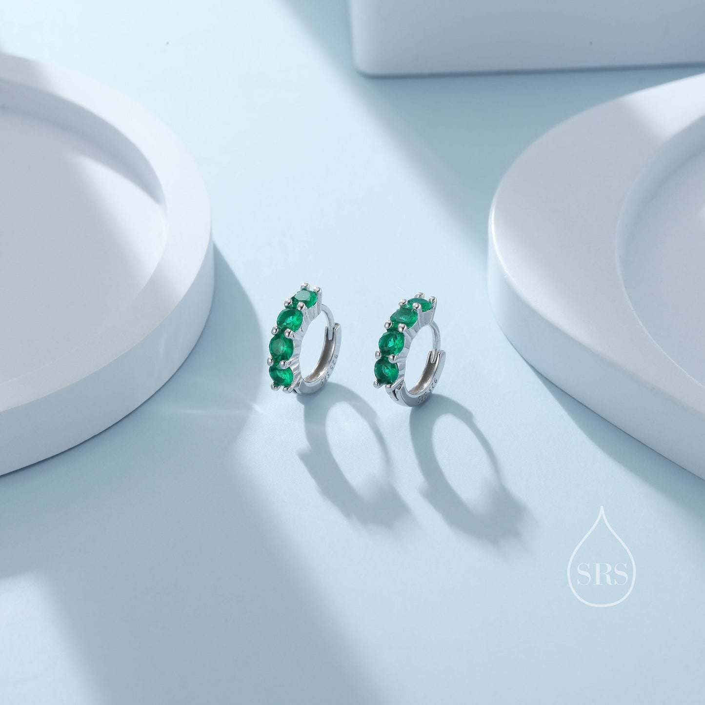 CZ Huggie Hoop Earrings in Sterling Silver, 8mm Hoops, Silver or Gold, 4mm Geometric Hoop Earrings, Green, Blue, Purple, Rainbow or Clear CZ