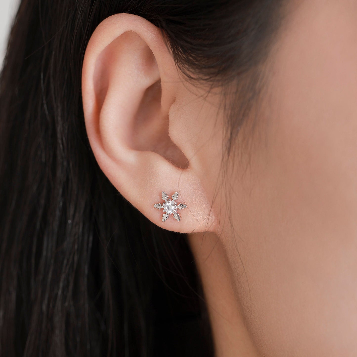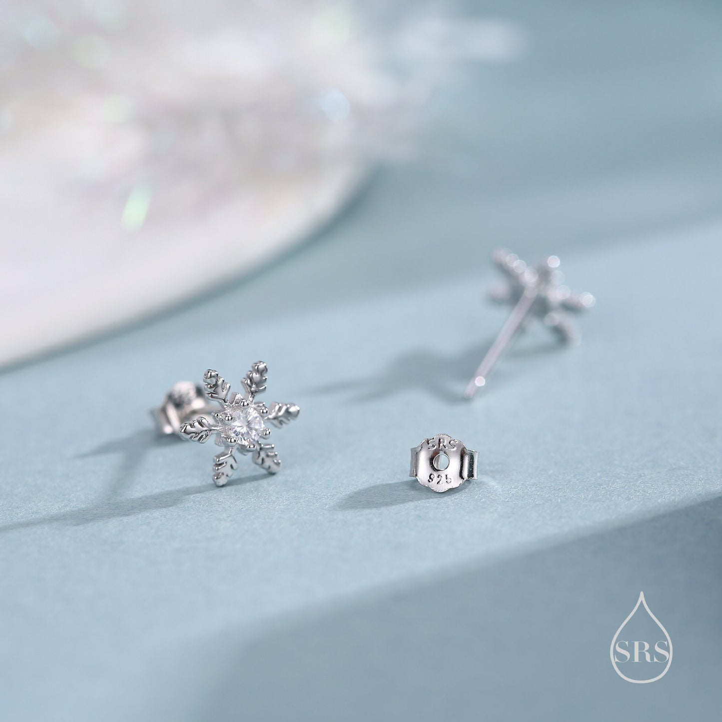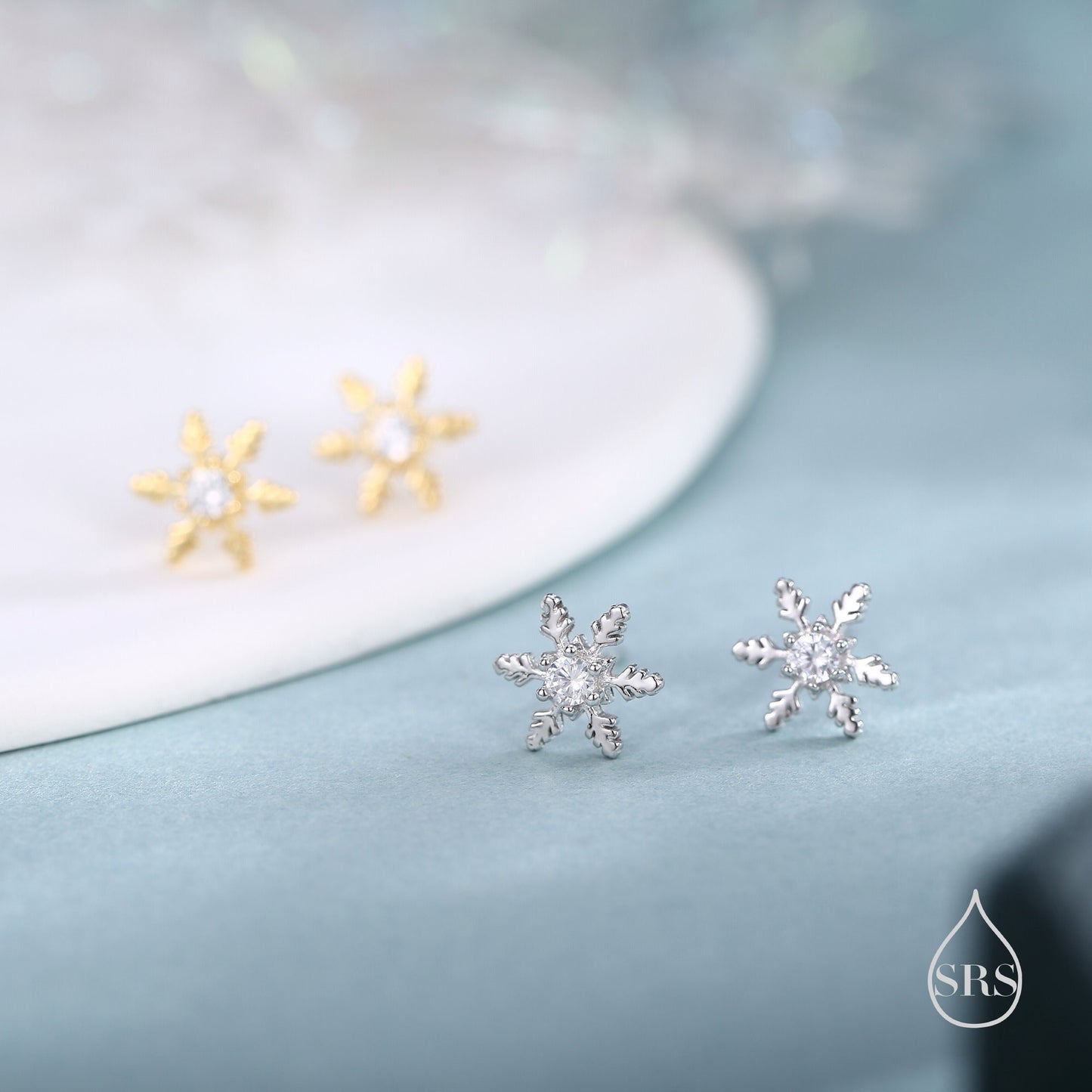CZ Snowflake Stud Earrings in Sterling Silver, Small Snow Earrings, Available in Three Finishes - Silver, Gold and Rose Gold