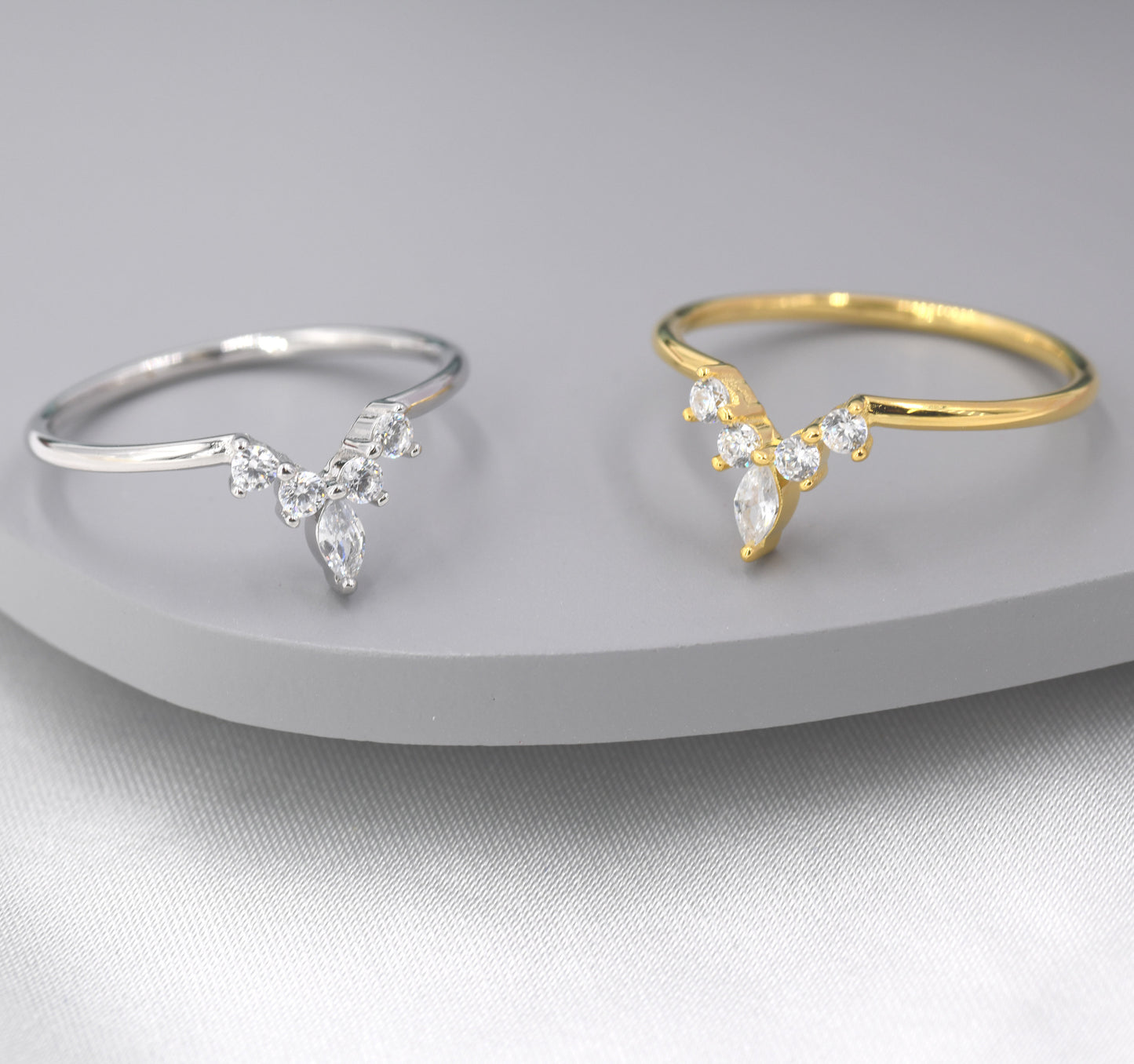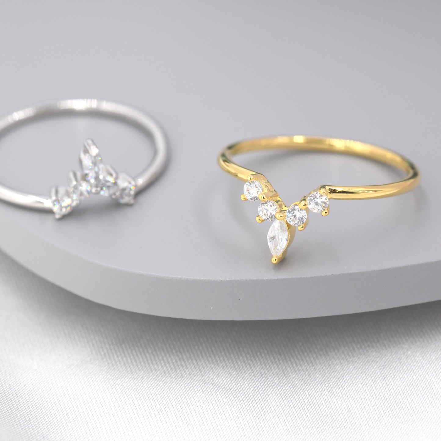 CZ Tiara Ring in Sterling Silver, Marquise Ring, Delicate Stacking Ring, Nesting Band, Curved Wedding Ring, Wishbone Ring, Size US 5 - 8