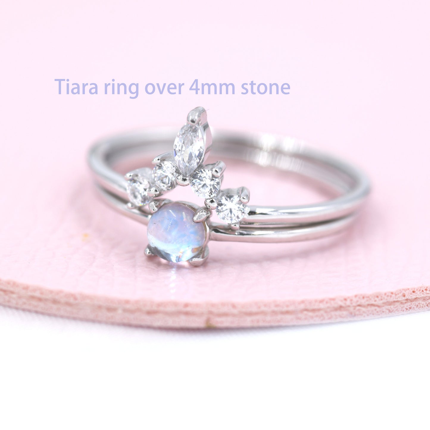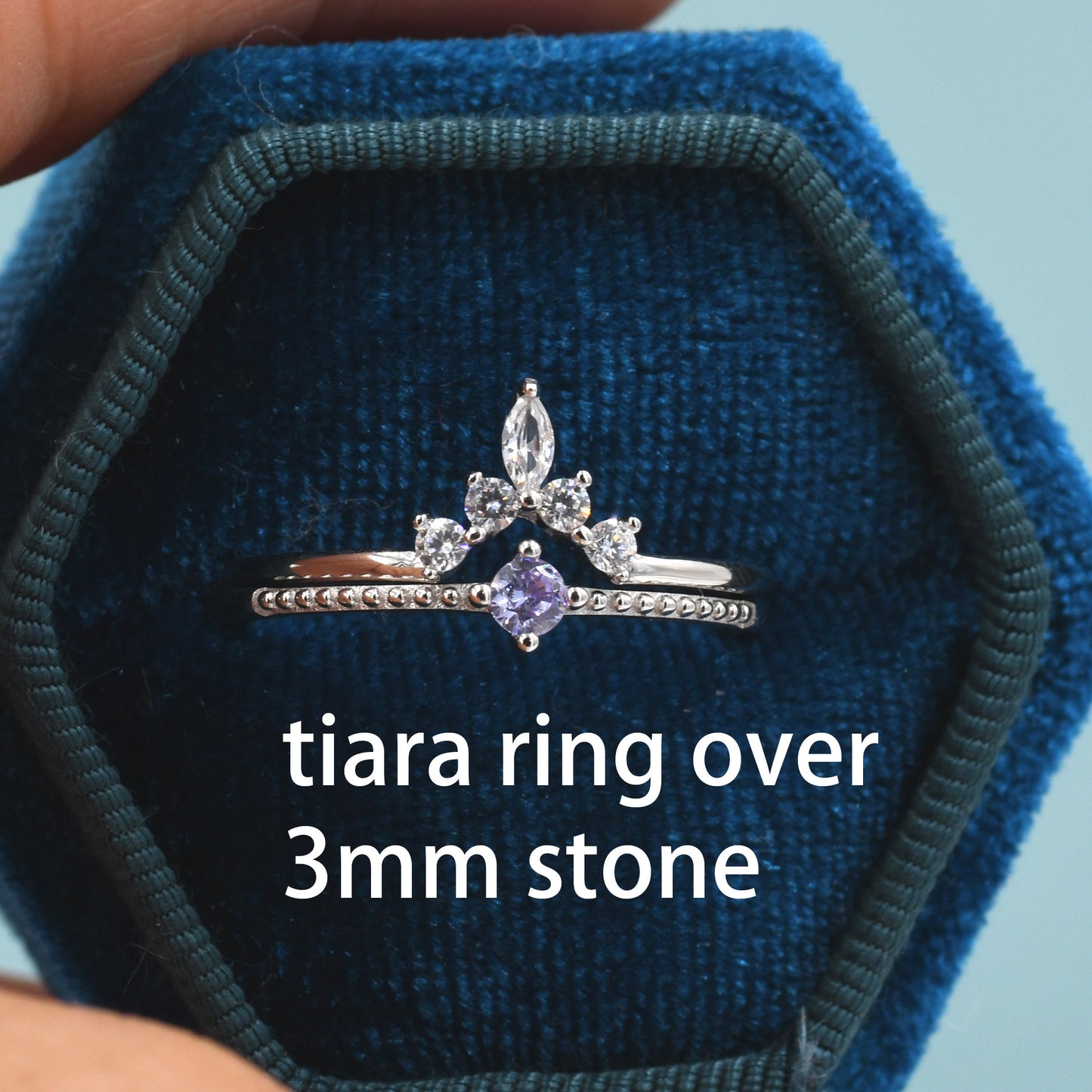 Can be worn on its own or you can stack it up! The listing is for the tiara ring only - single stone rings are not included! They are to illustrate that the tiara ring can be worn together with 3mm or 4mm single stone band, or 4mm trilliant cut stone ring.