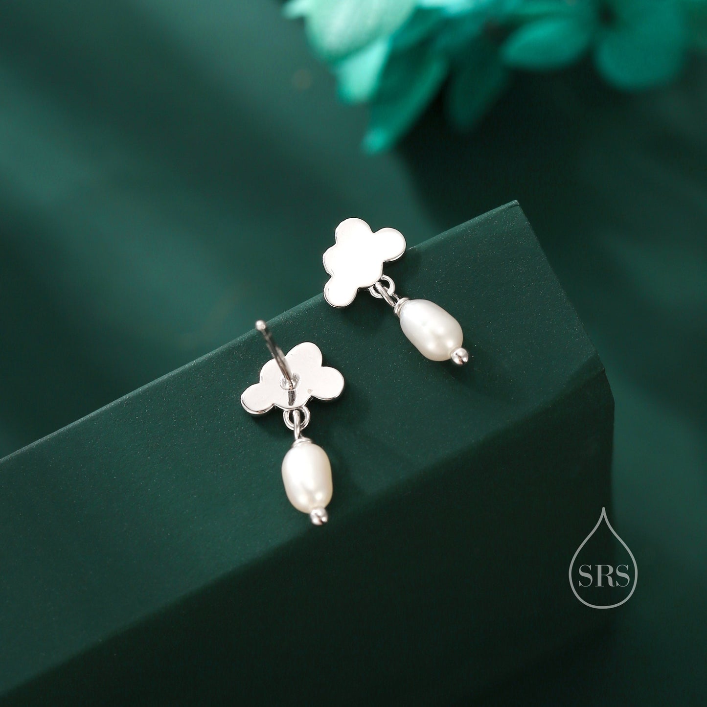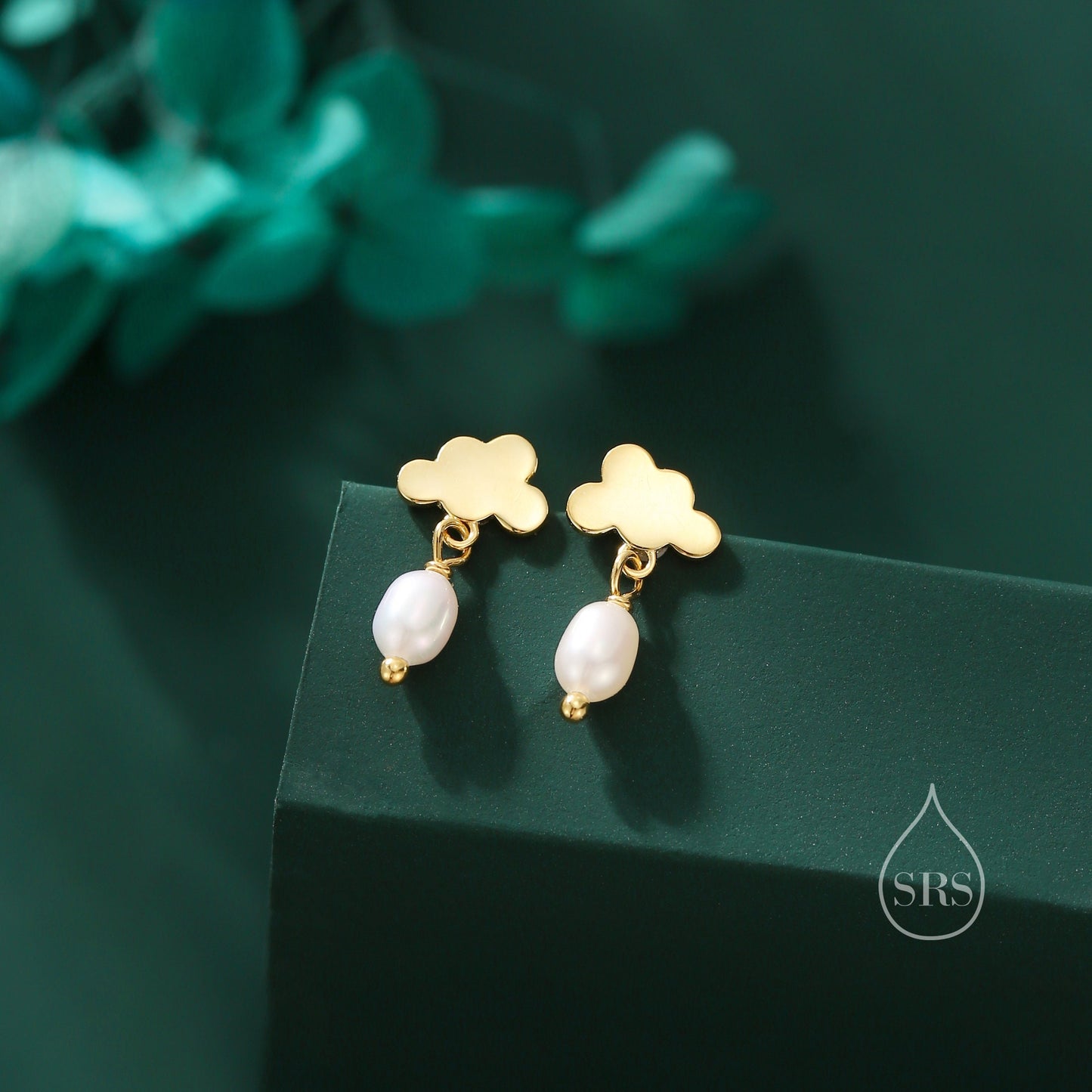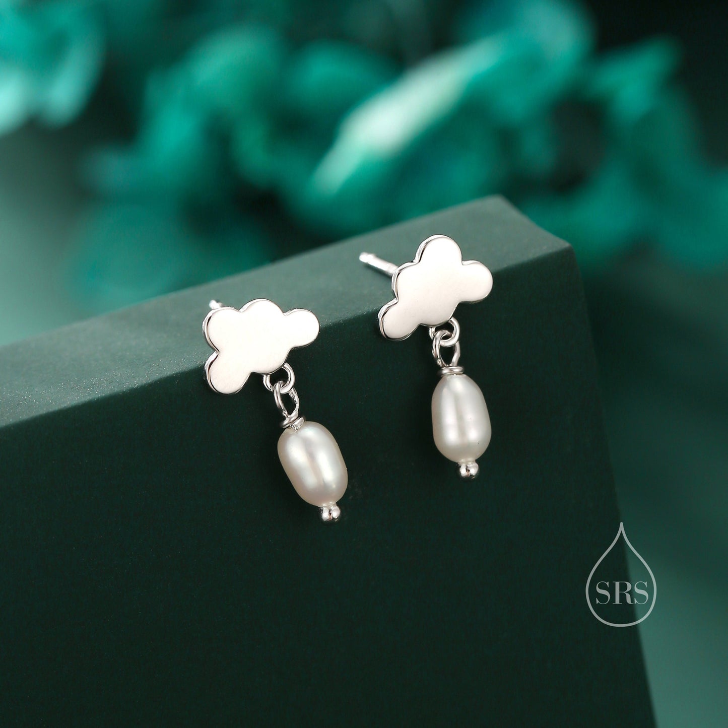 Dainty Cloud and Natural Pearl Raindrop Stud Earrings in Sterling Silver, Silver or Gold, Cloud Earrings, Freshwater Pearl Droplet Earrings