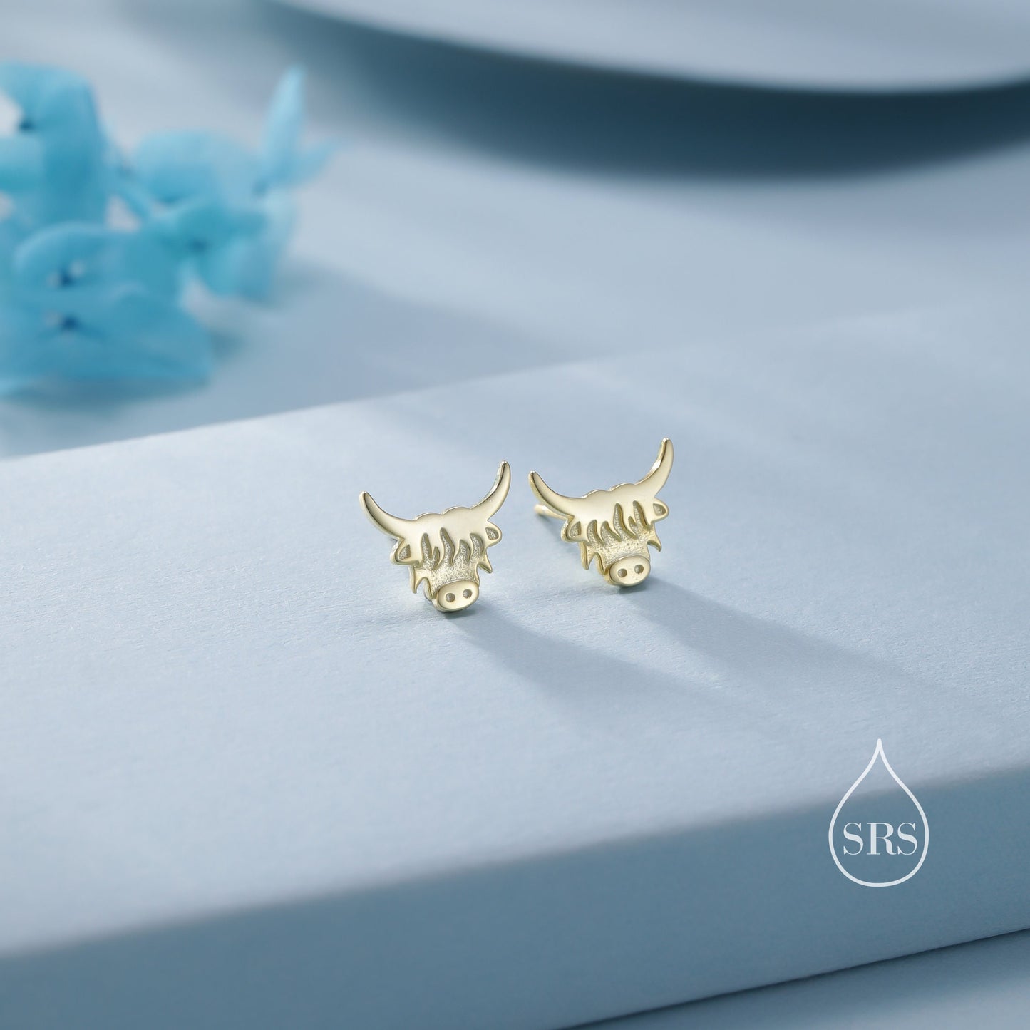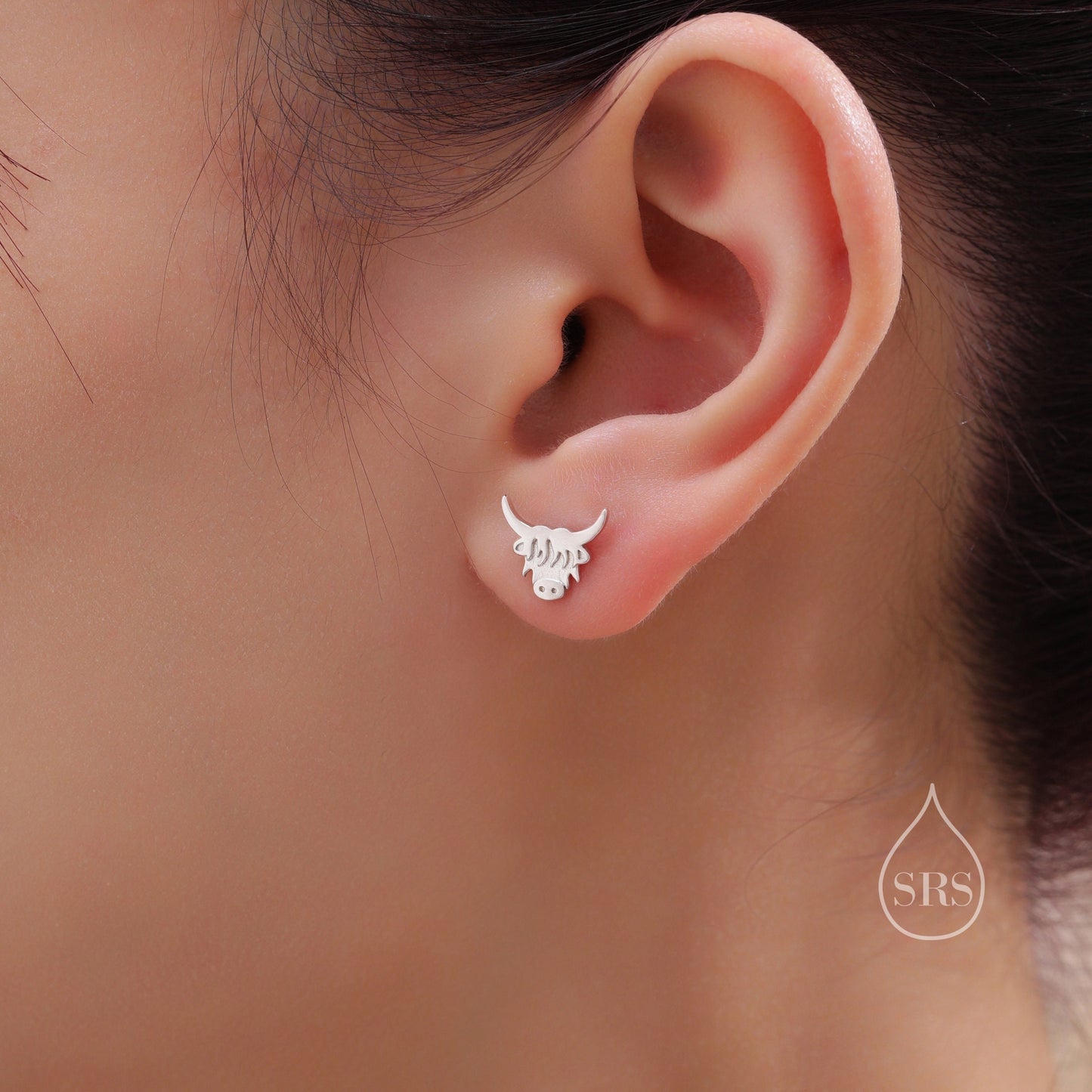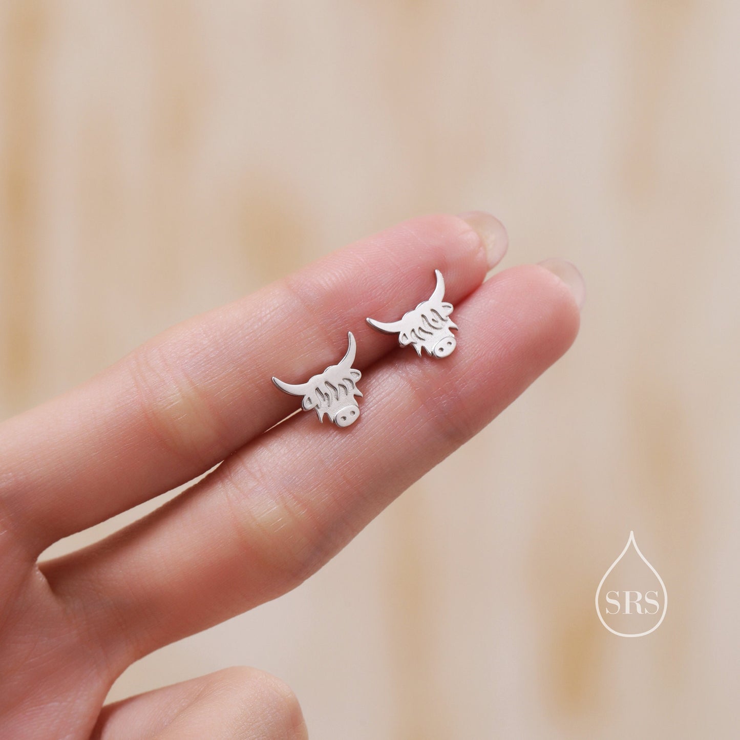 Dainty Highland Cow Stud Earrings in Sterling Silver, Silver or Gold , 2D Bull Earrings, Cow Earrings, Scottish Design