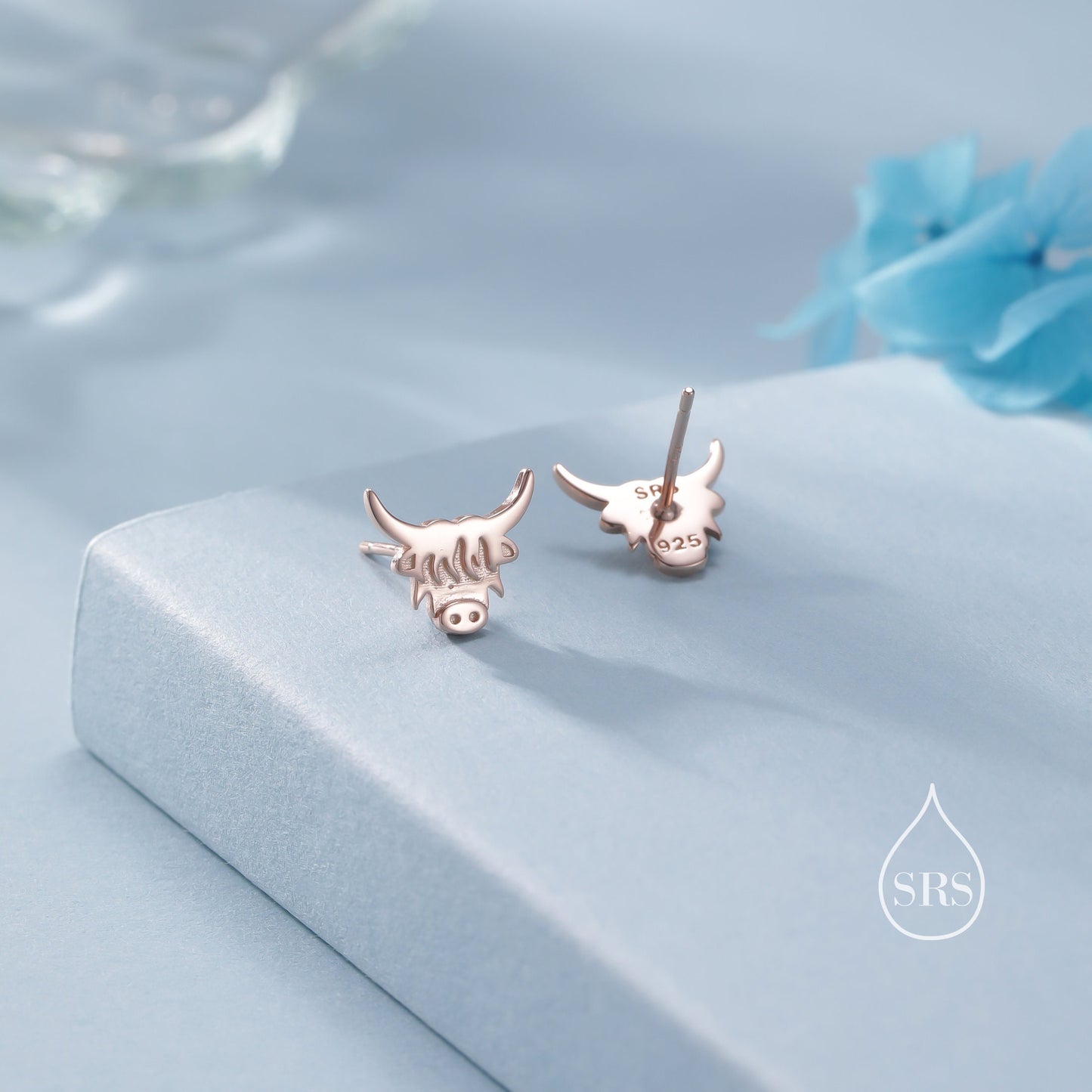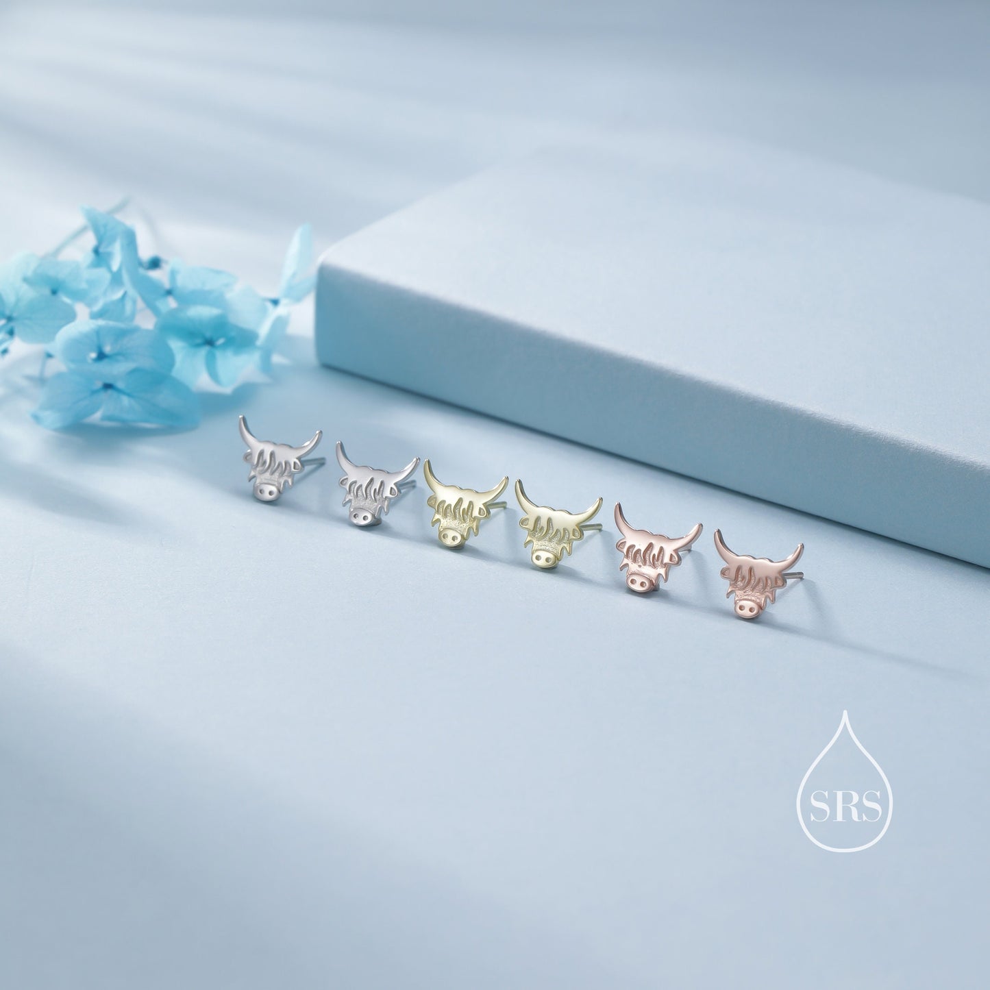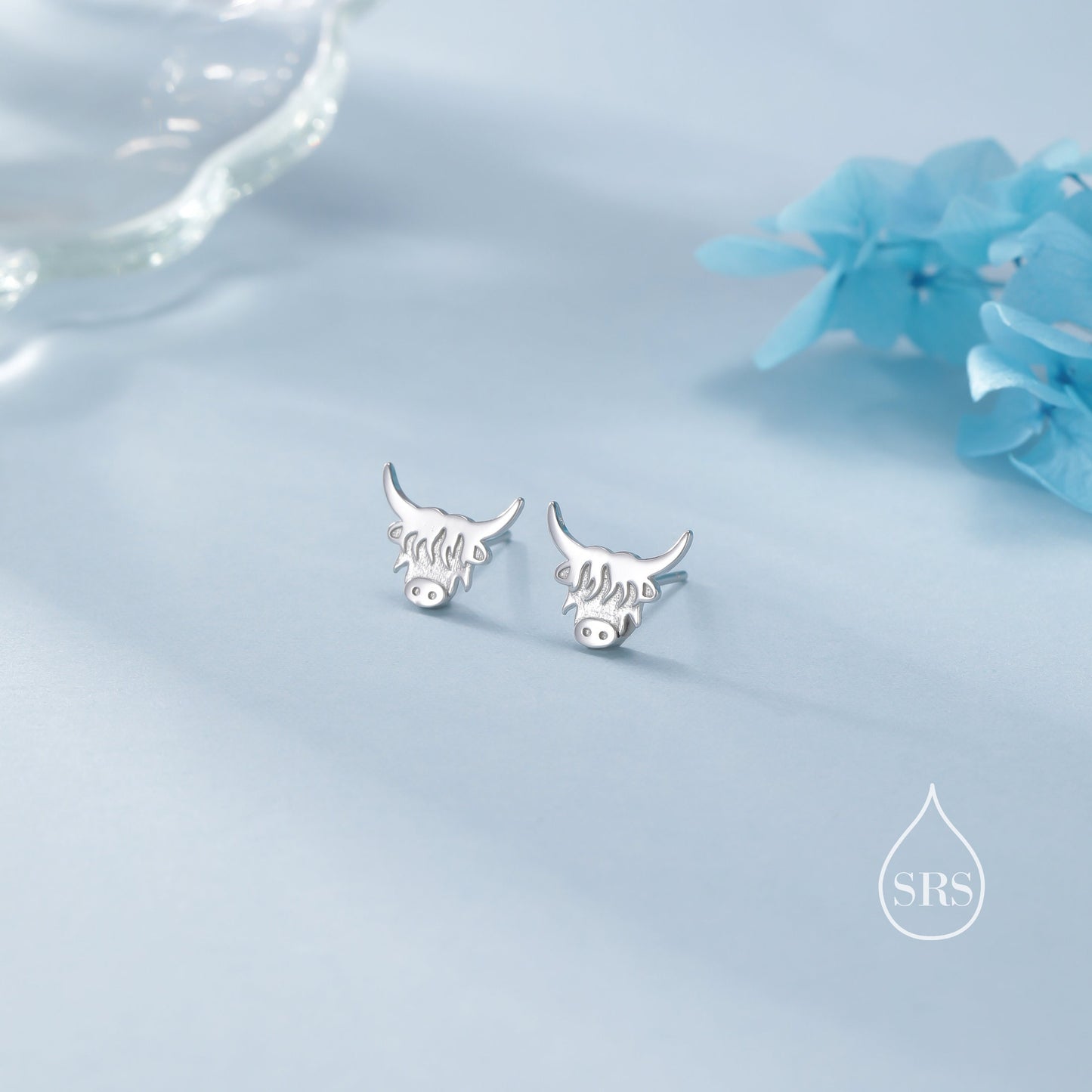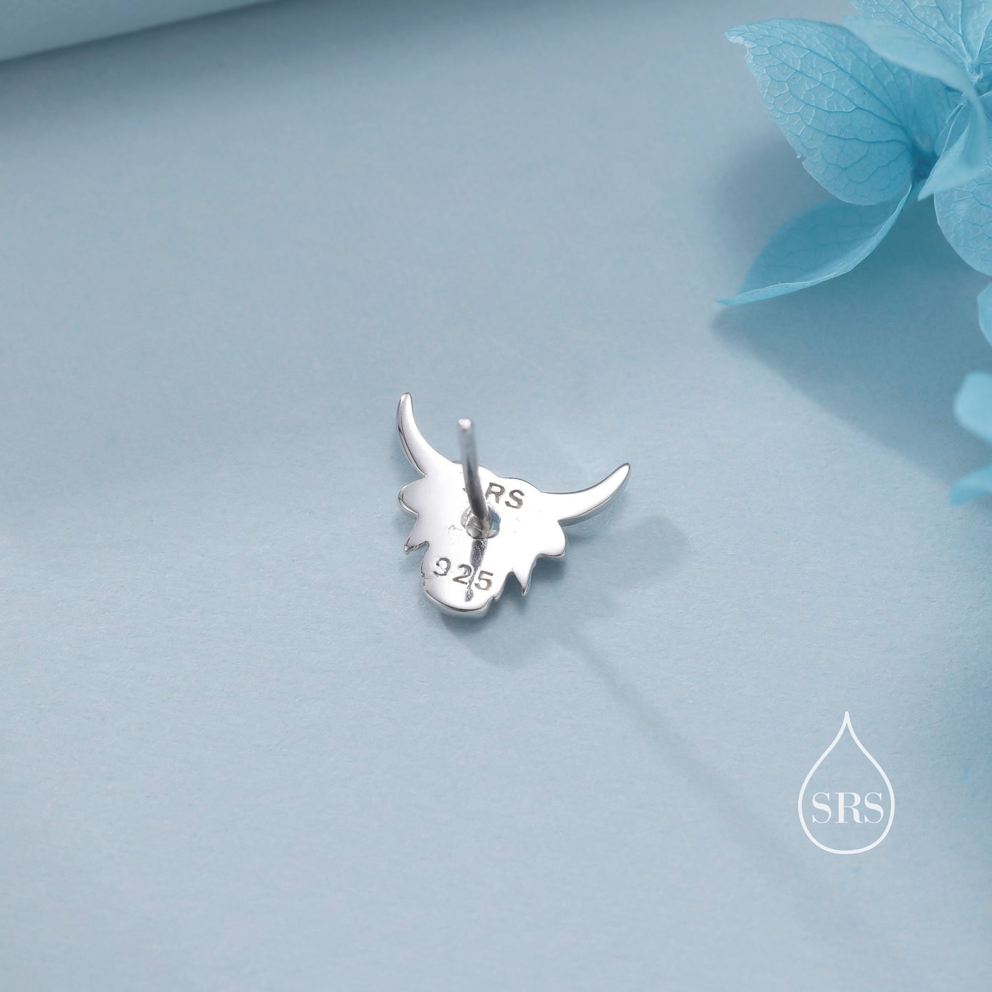 Dainty Highland Cow Stud Earrings in Sterling Silver, Silver or Gold , 2D Bull Earrings, Cow Earrings, Scottish Design