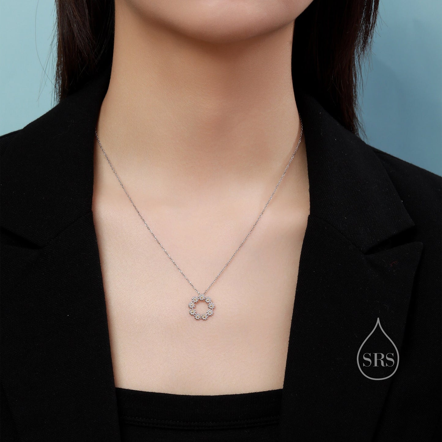 Daisy Chain Pendant Necklace in Sterling Silver, Chain of Daisy Flower Necklace, Flower Cluster Necklace, Nature Inspired Jewellery