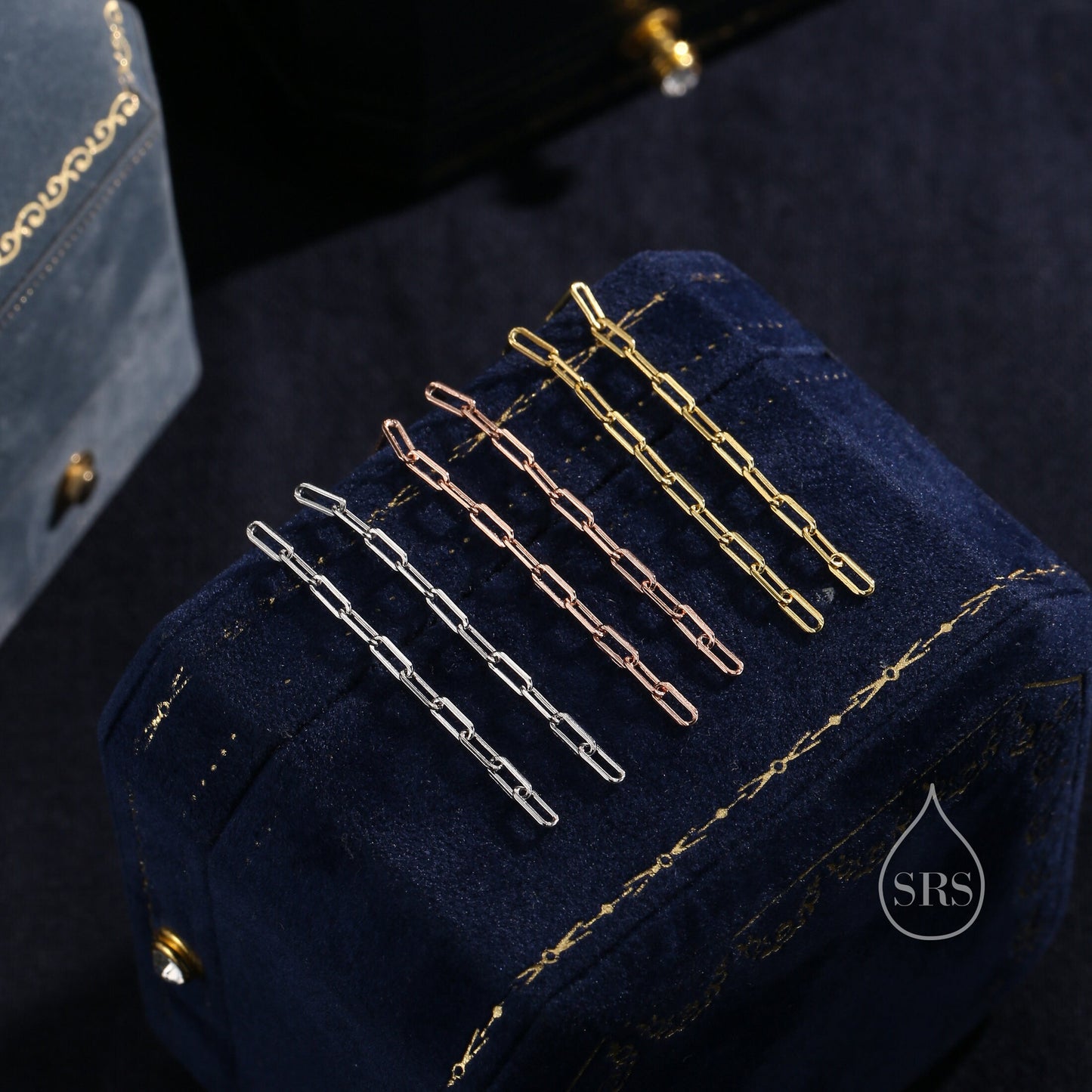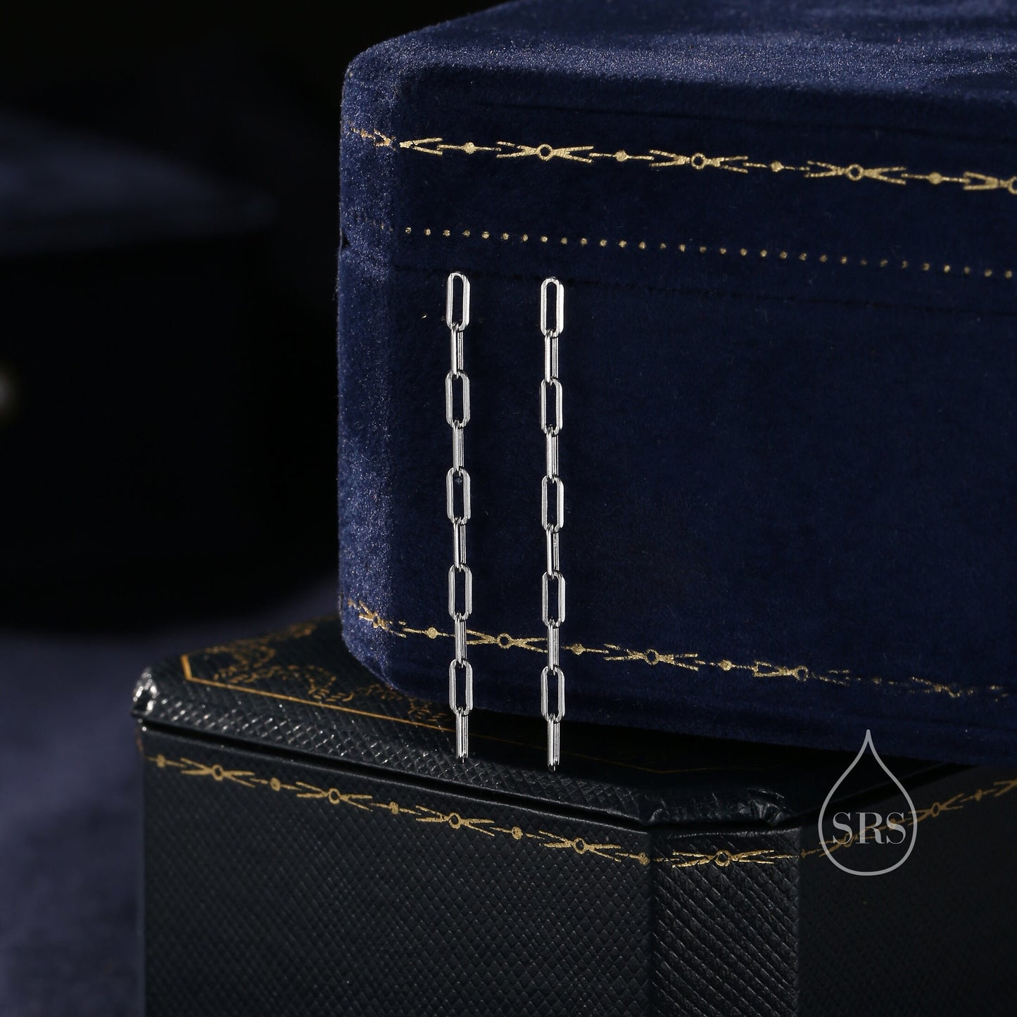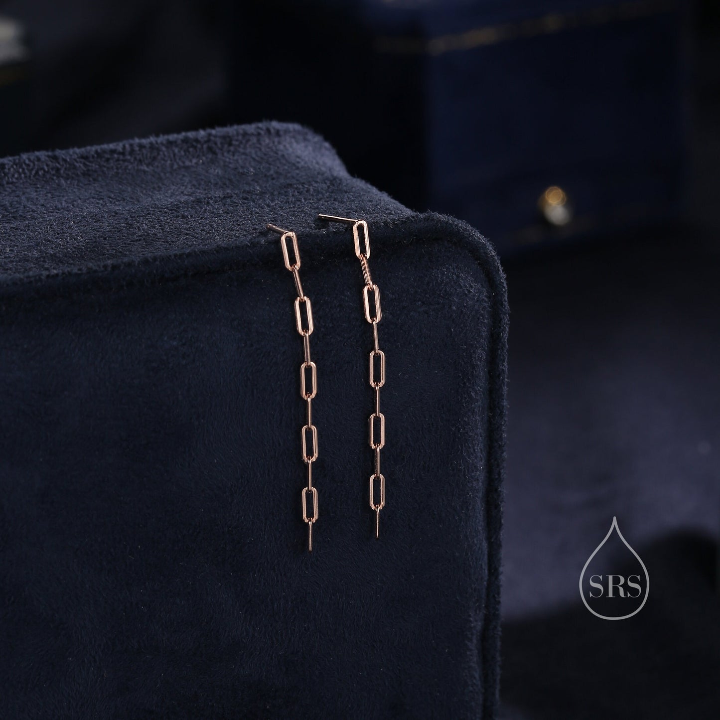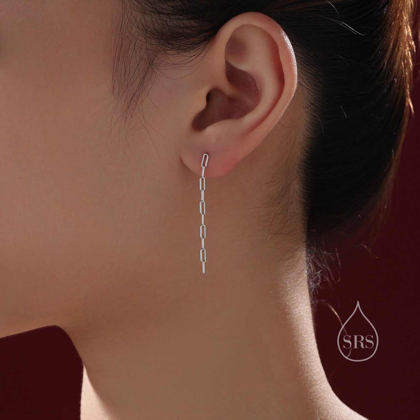 Dangle Chain Stud Earrings in Sterling Silver, Silver or Gold or Rose Gold, Long Paperclip Chain Earrings, Delicate Minimalist Chain Earring