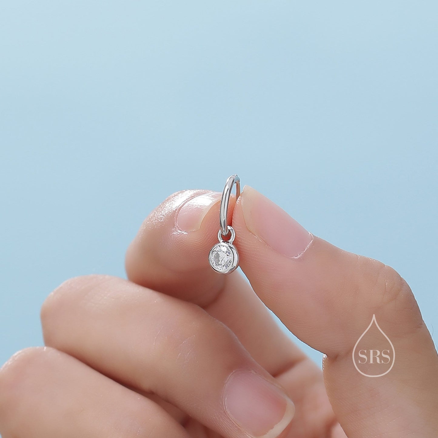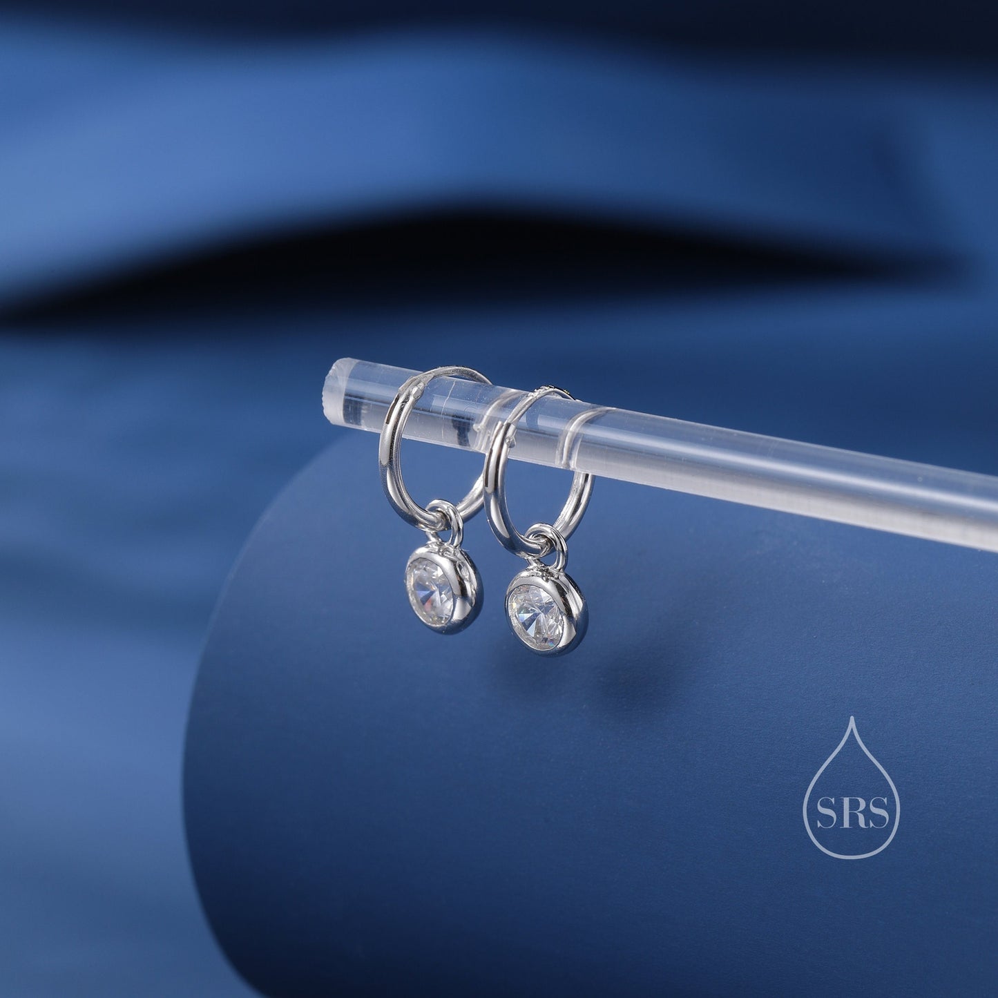 Dangle CZ Huggie Hoop Earrings in Sterling Silver with Sleeper Hoops, Detachable, Silver or Gold or Rose Gold, CZ Skinny Hoops