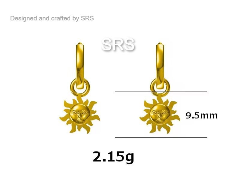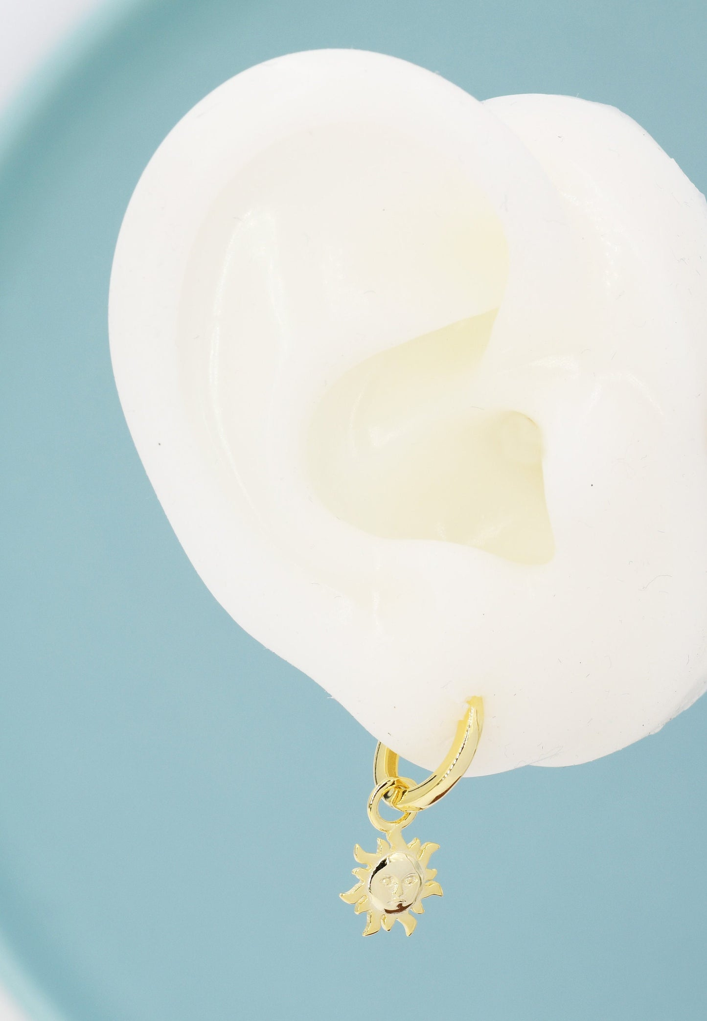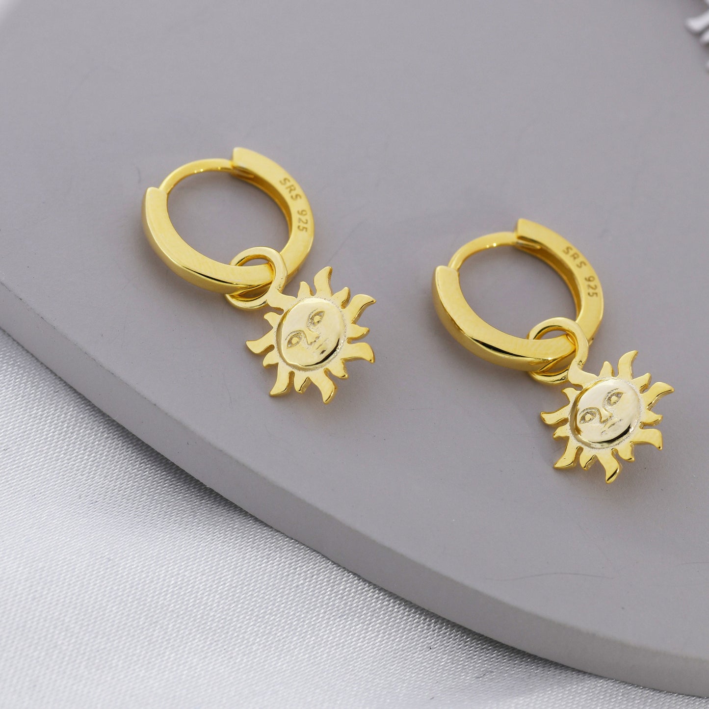 Dangling Sun with Face Hoop in Sterling Silver, Silver or Gold, Sun Face Earrings, Detachable and Interchangeable