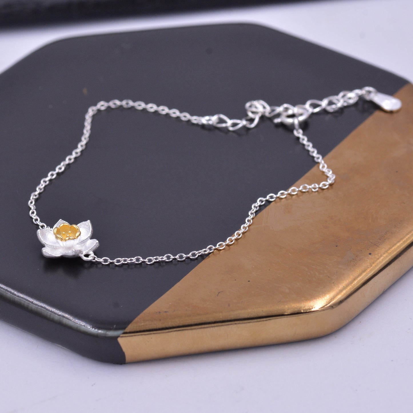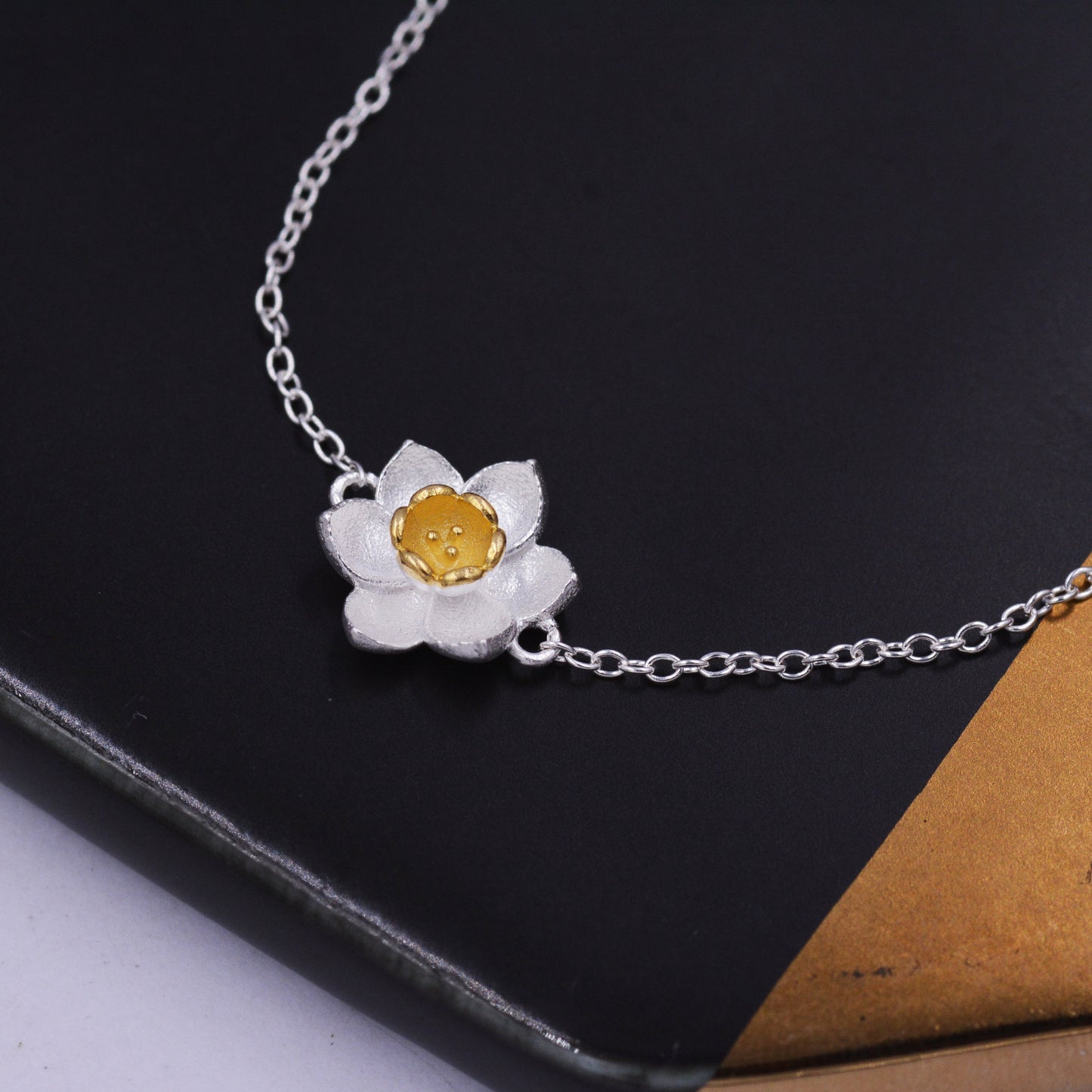 Delicate Daffodil Bracelet in Sterling Silver, Nature Inspired Flower Jewellery, Minimalist, Simple and Tiny
