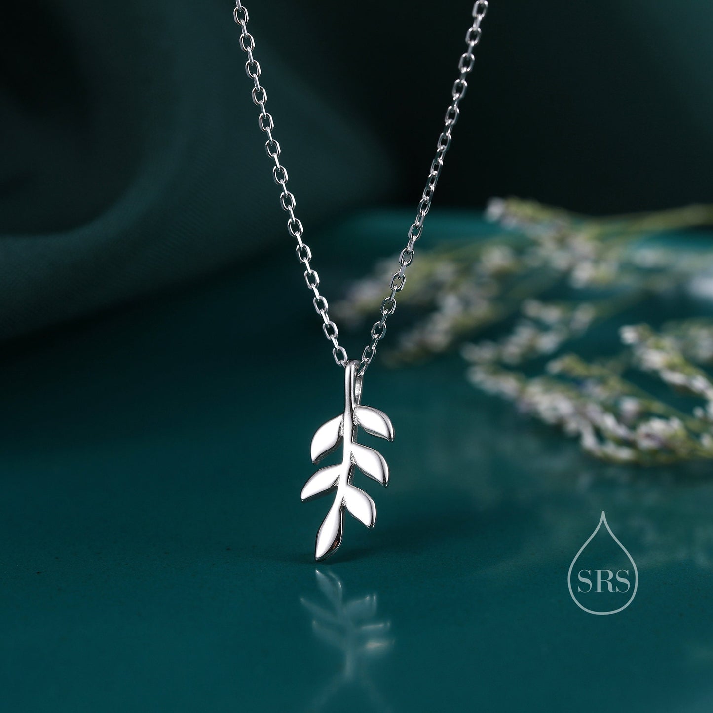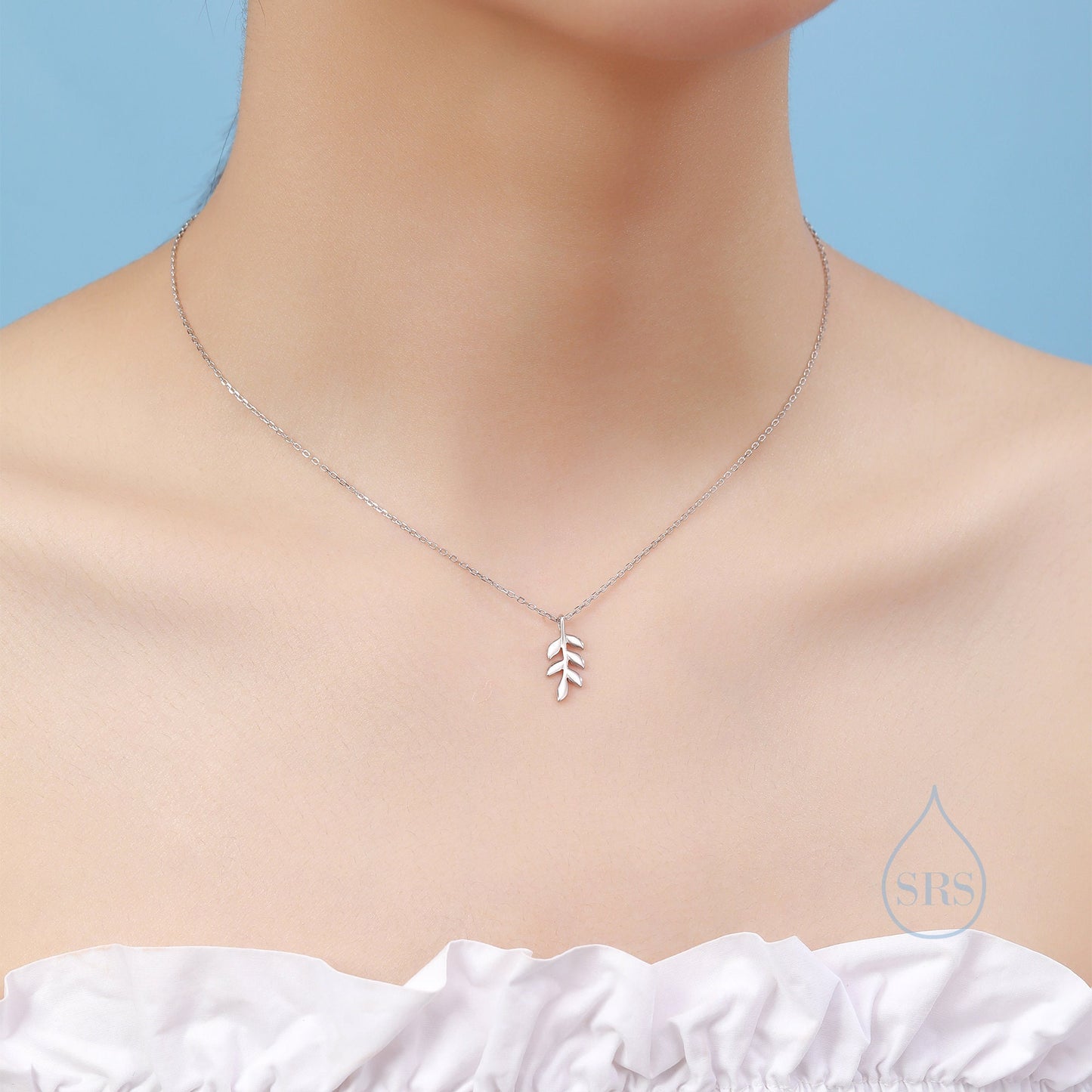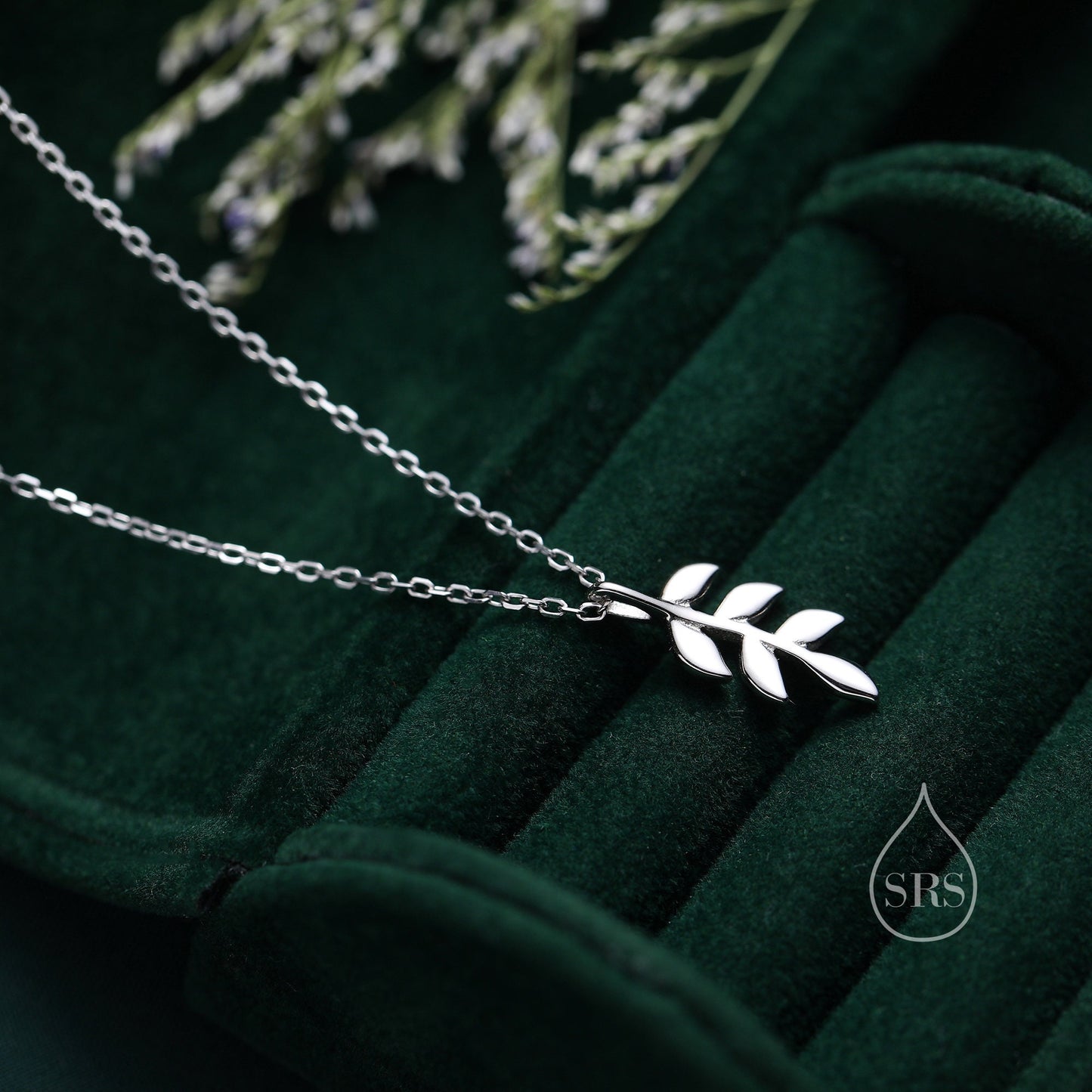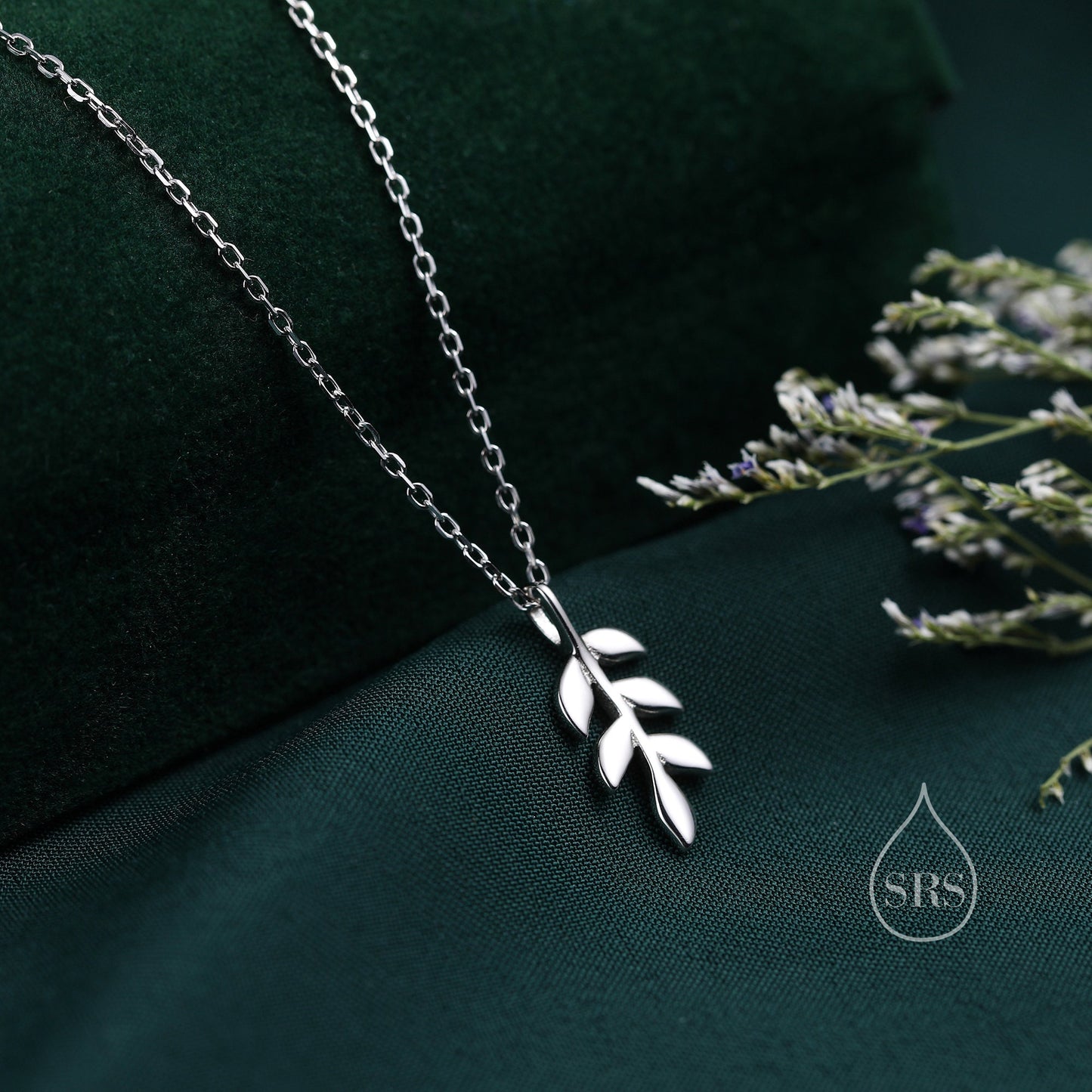 Delicate Leaf Pendant Necklace in Sterling Silver, Olive Brach Necklace, Nature Inspired Tree Leaf Necklace