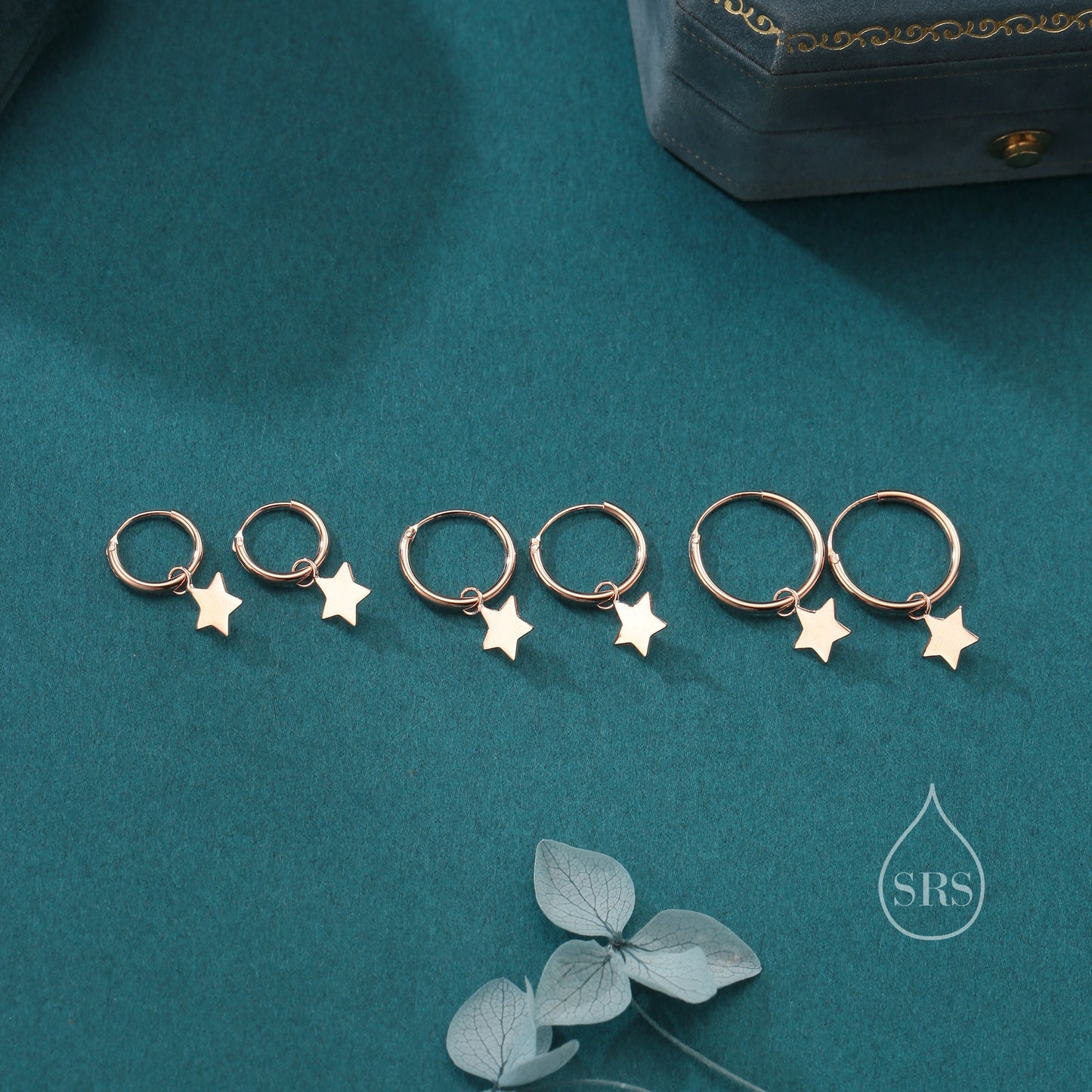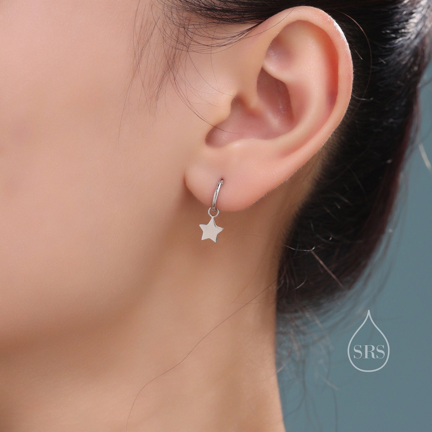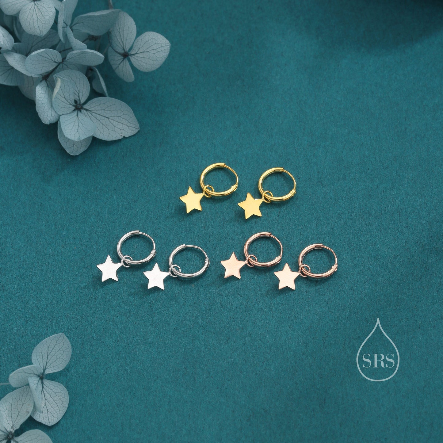 Delicate Star Huggie Hoop Earrings in Sterling Silver, Silver or Gold or Rose Gold, Star Sleeper Earrings, Sunburst Earrings, Celestial