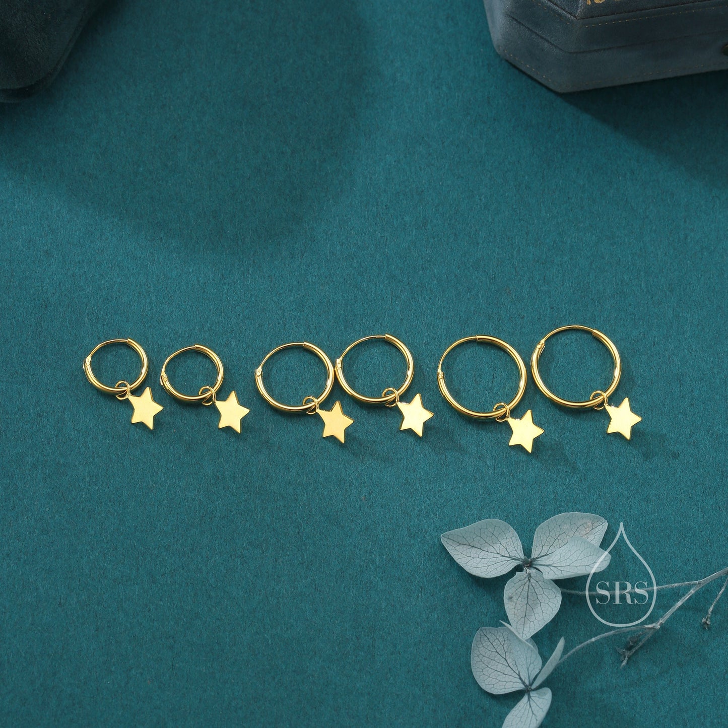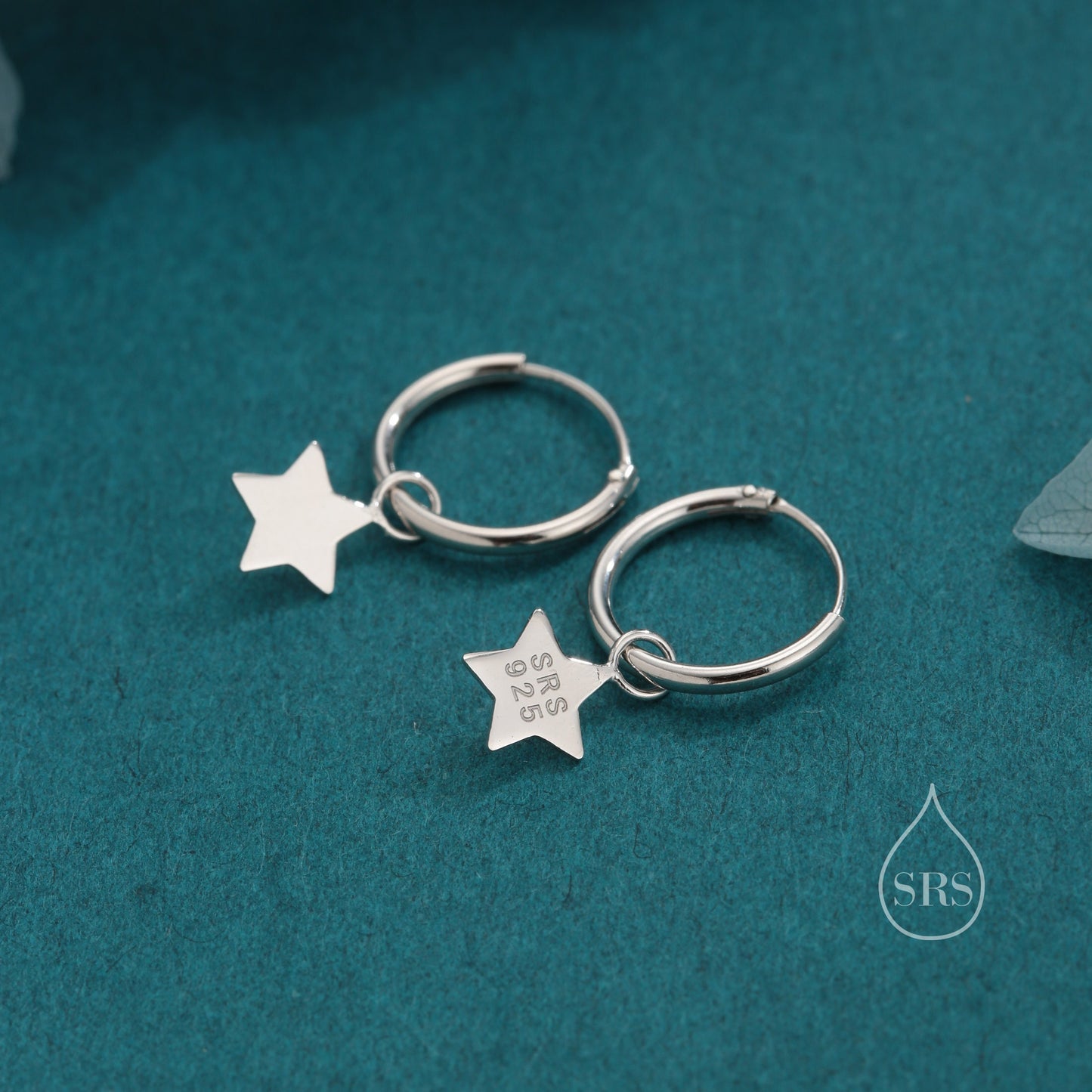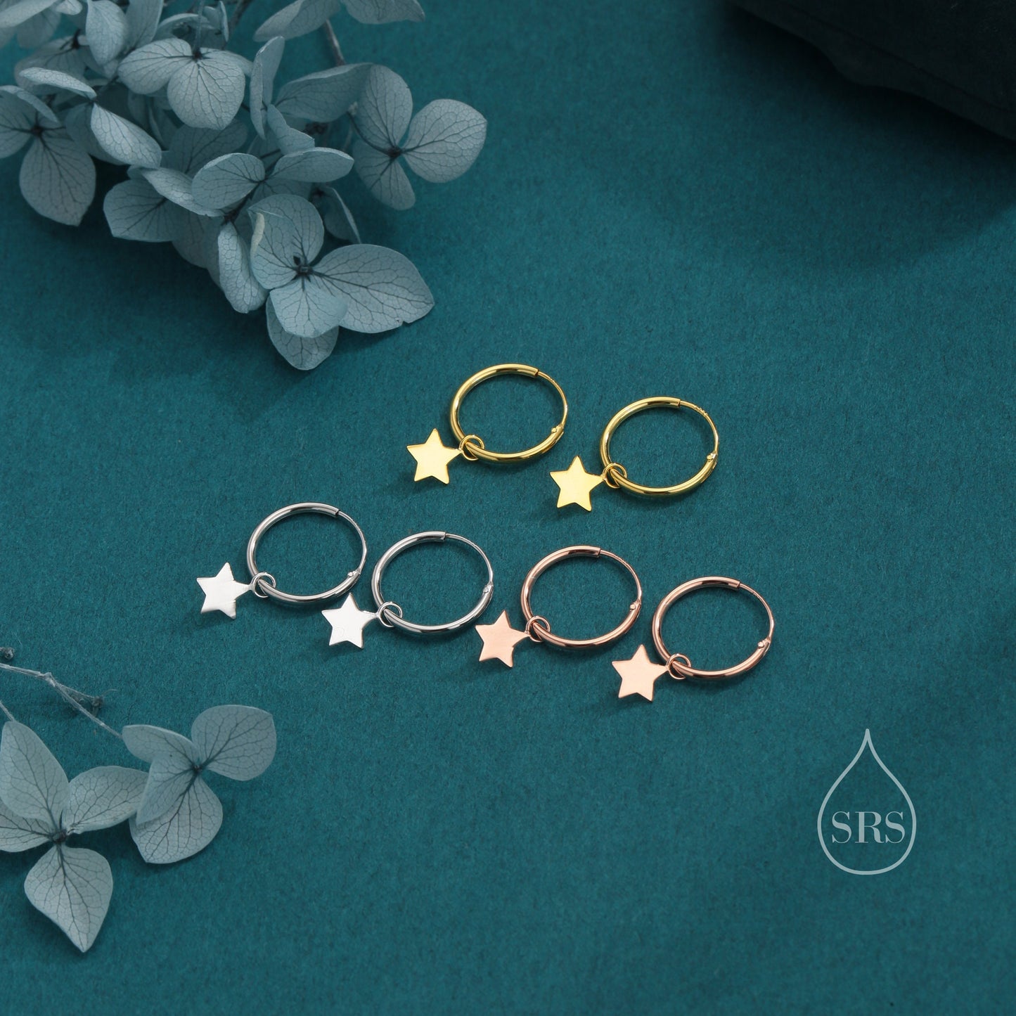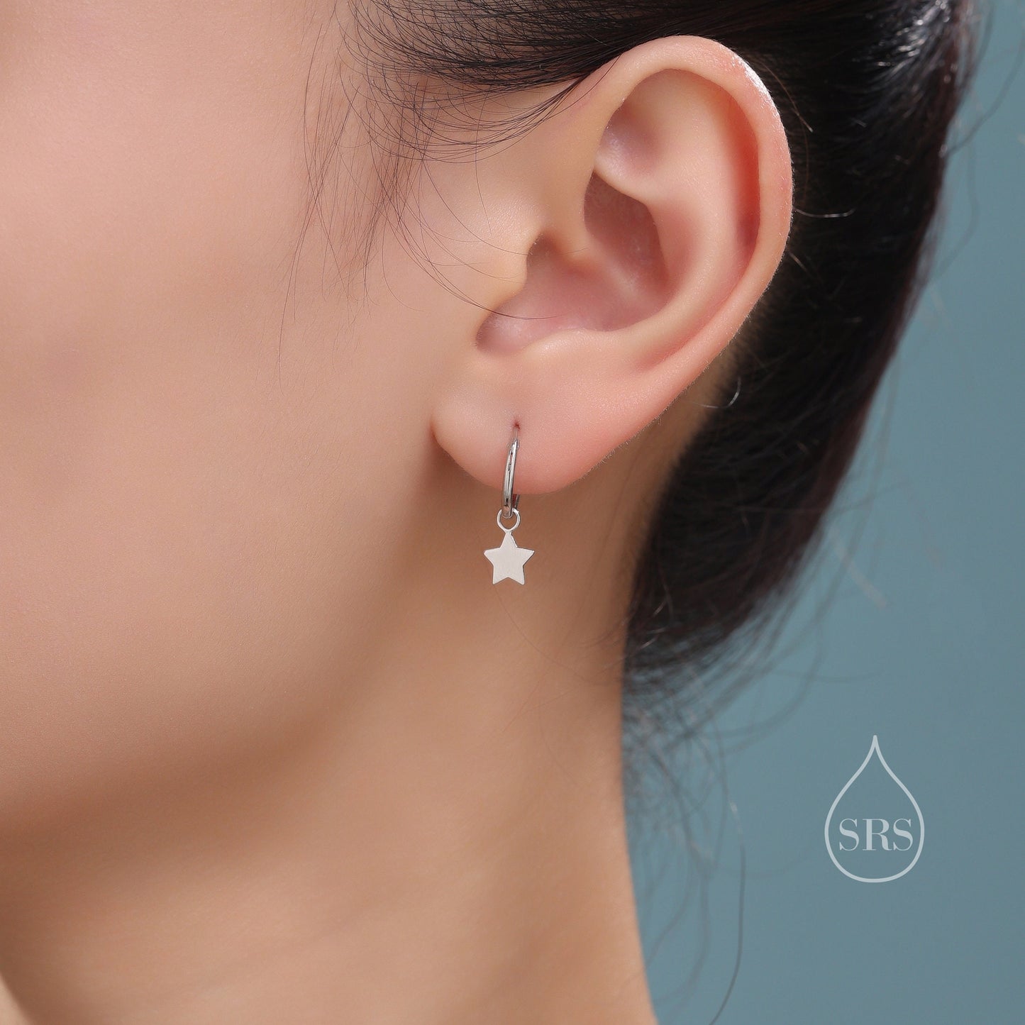 Delicate Star Huggie Hoop Earrings in Sterling Silver, Silver or Gold or Rose Gold, Star Sleeper Earrings, Sunburst Earrings, Celestial