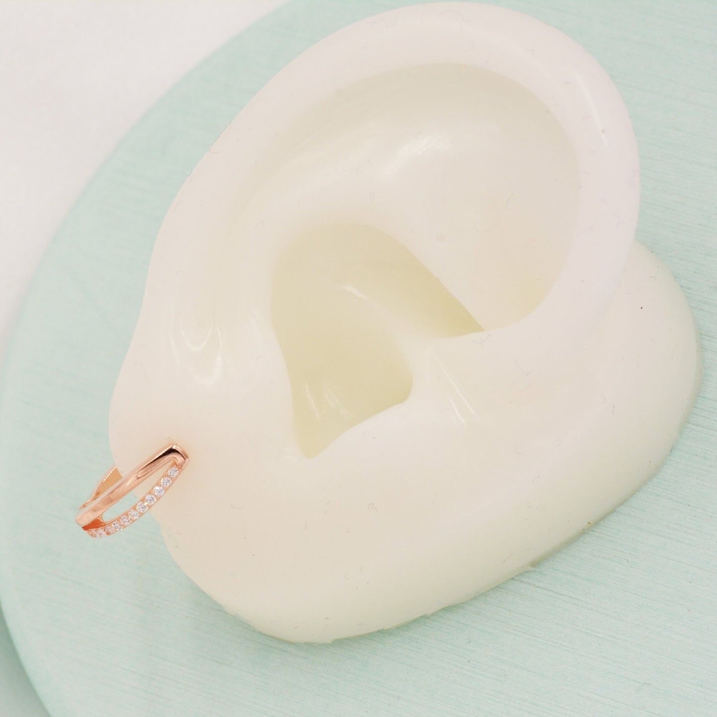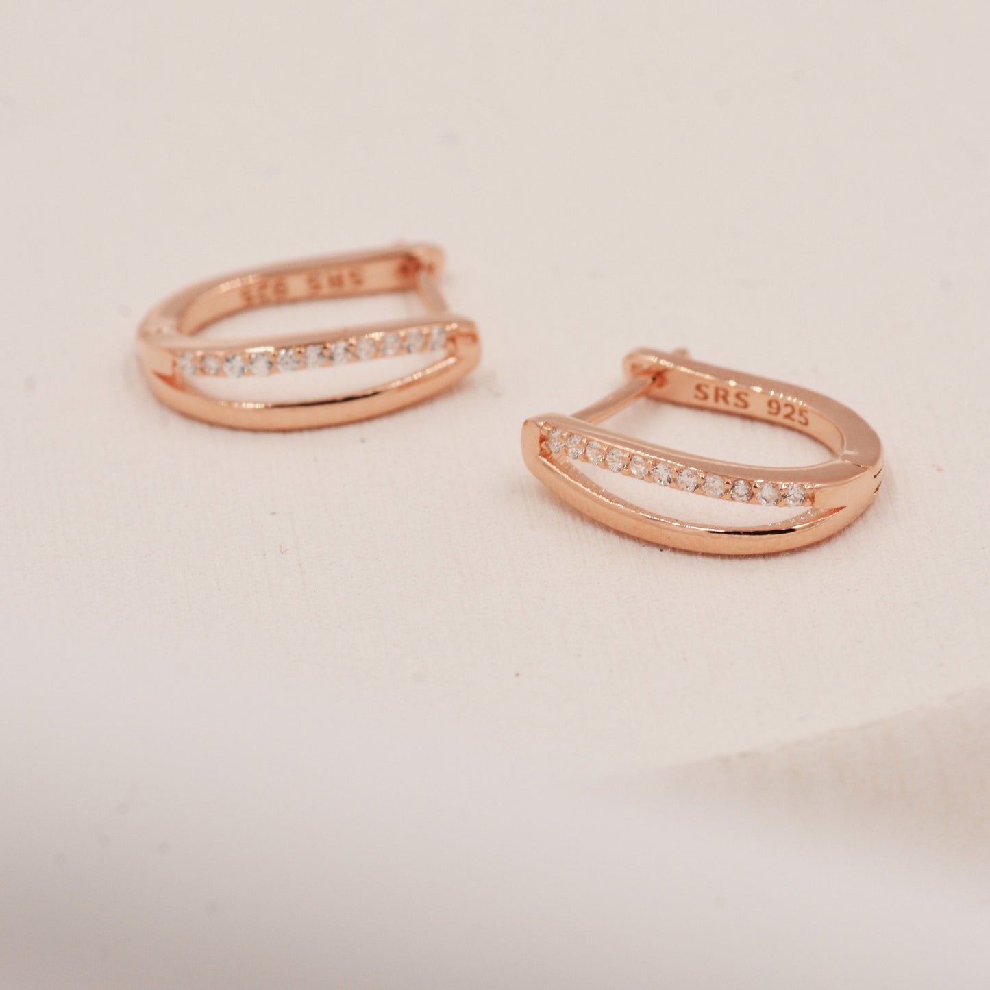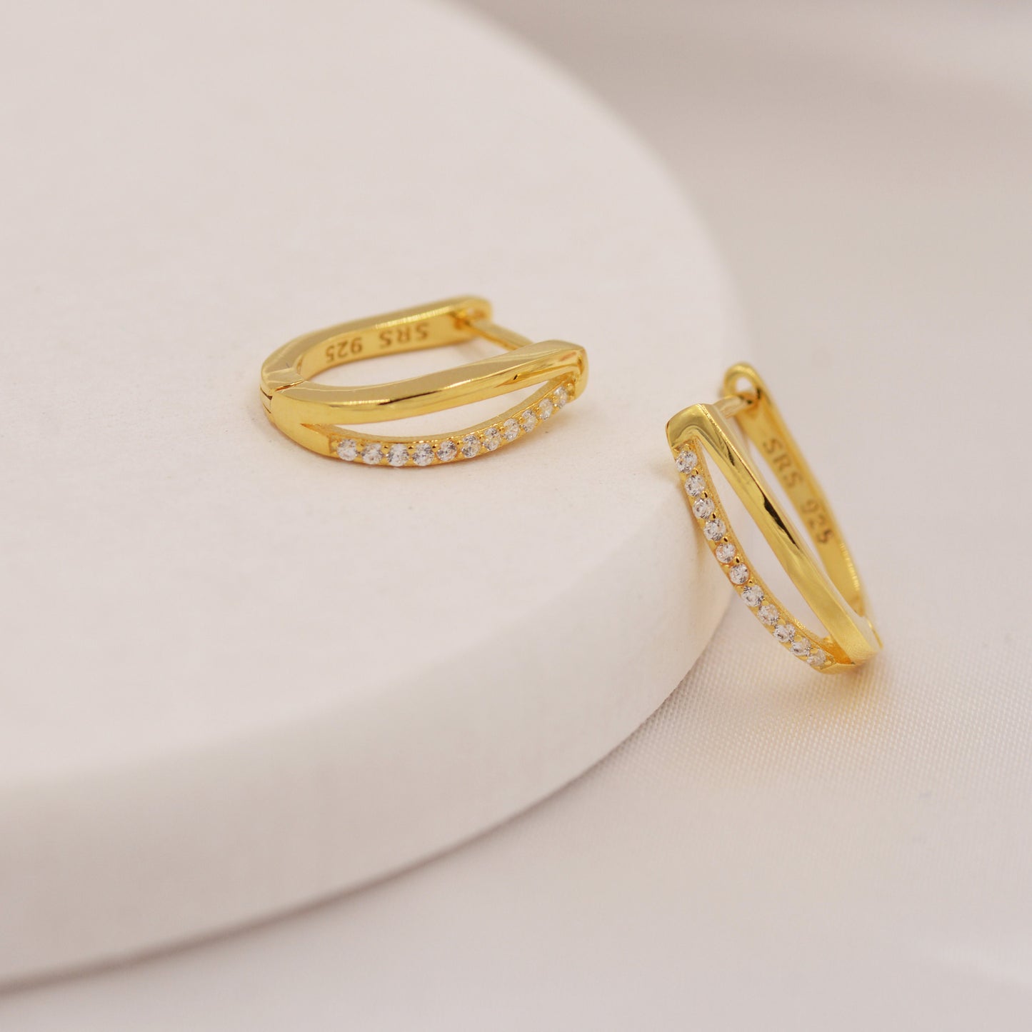 Double Huggie Hoop CZ Earrings in Sterling Silver, Geometric CZ Hoop Earrings, Silver, Gold or Rose Gold, 10mm, Minimalist Hoops