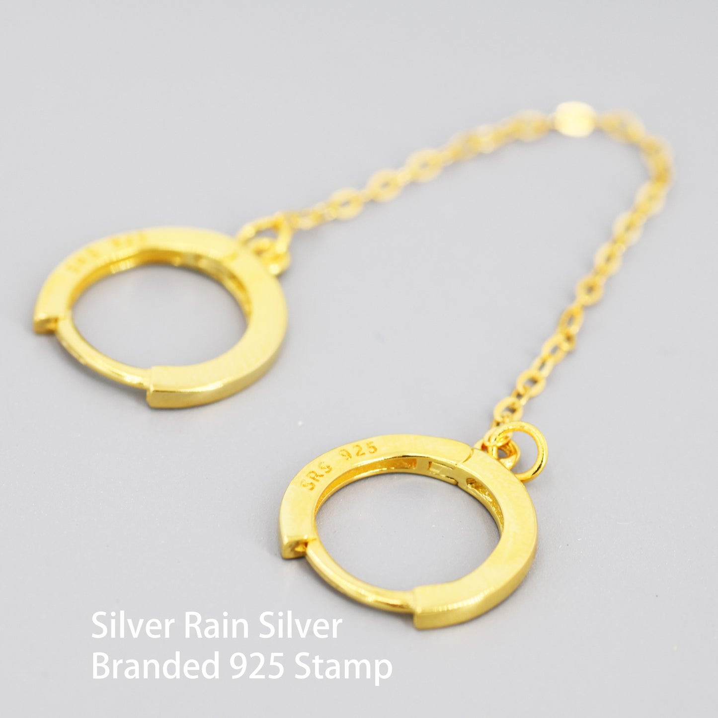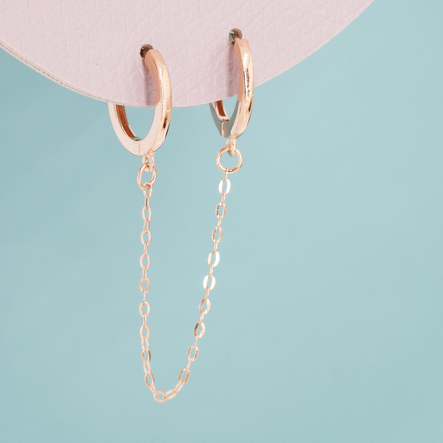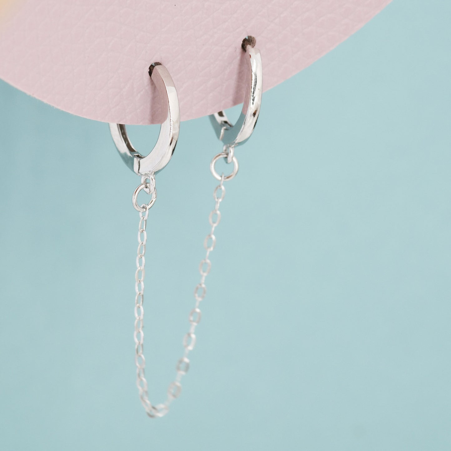 Double Piercing Huggie Hoop Earrings with Chain, Chained Hoop Earrings, Linked Hoops, Linked Hoops