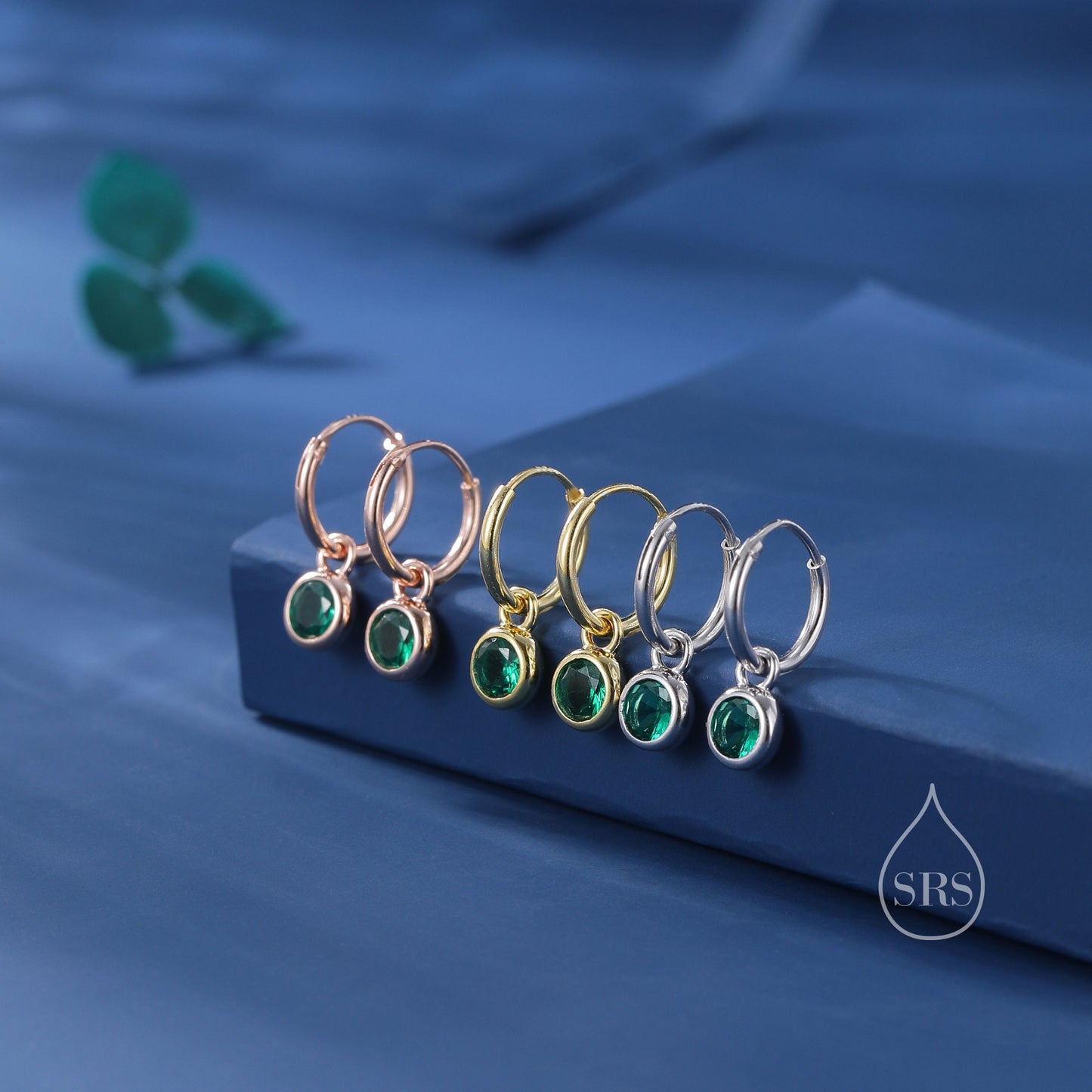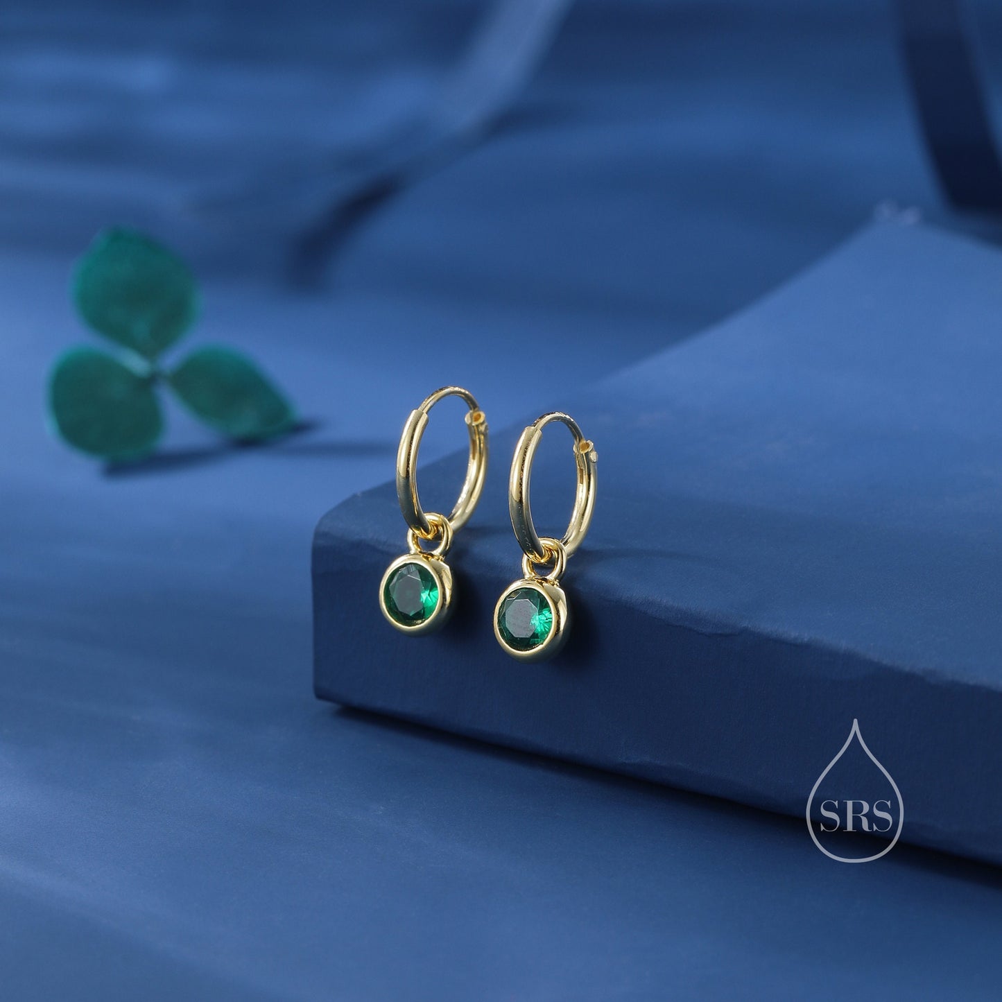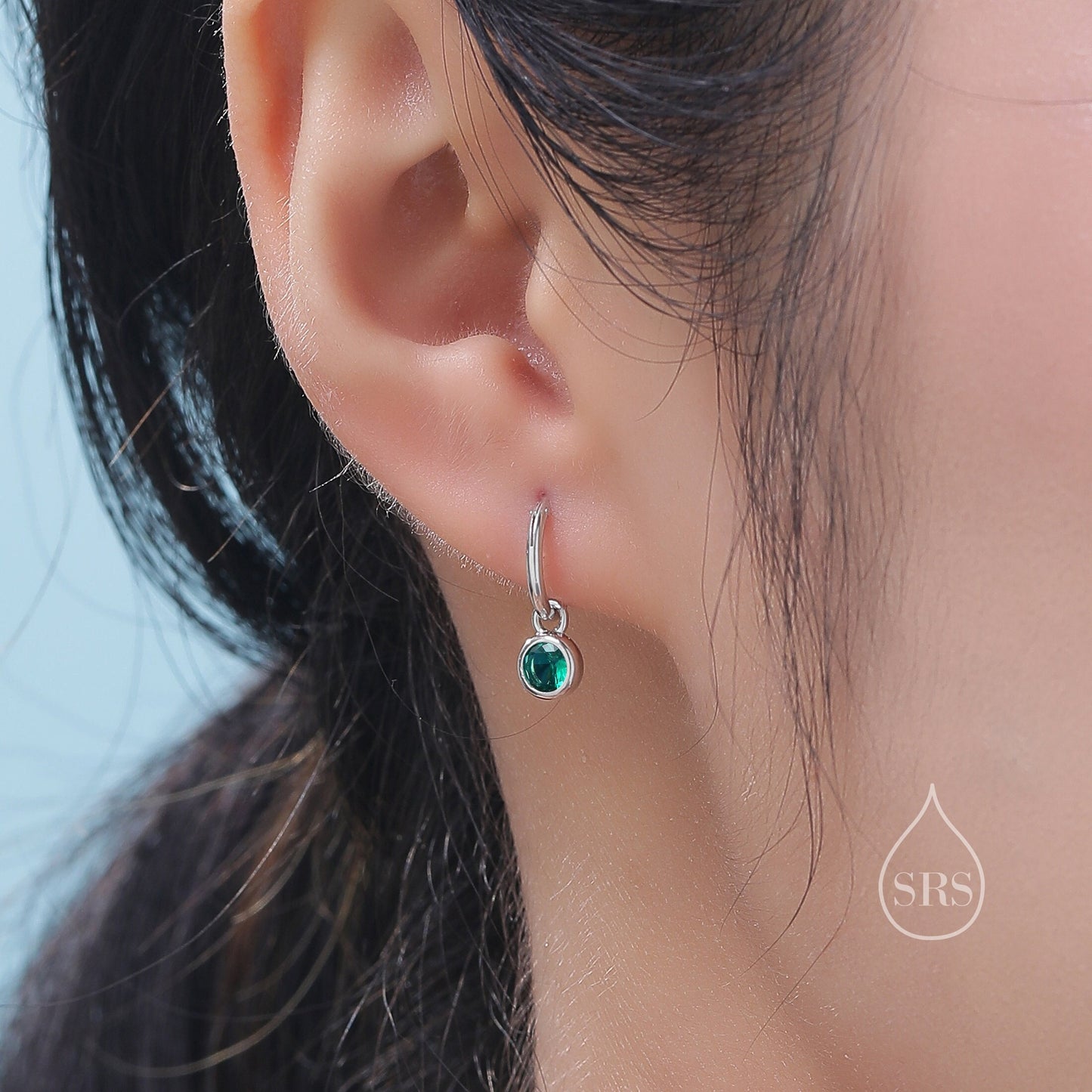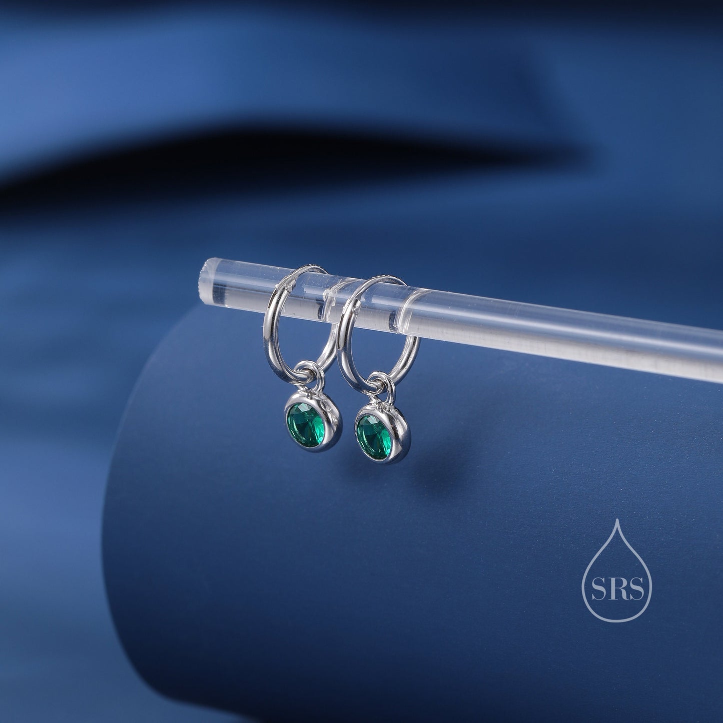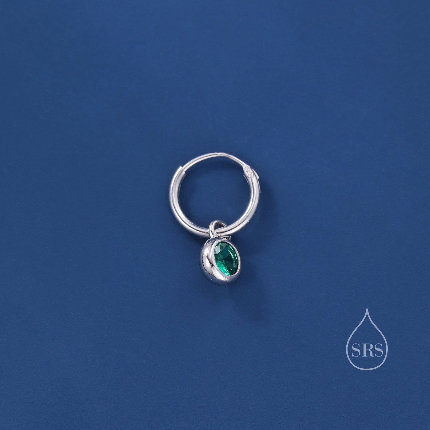 Emerald Green CZ Huggie Hoop Earrings in Sterling Silver with Sleeper Hoops, Detachable, Silver or Gold or Rose Gold, CZ Skinny Hoops