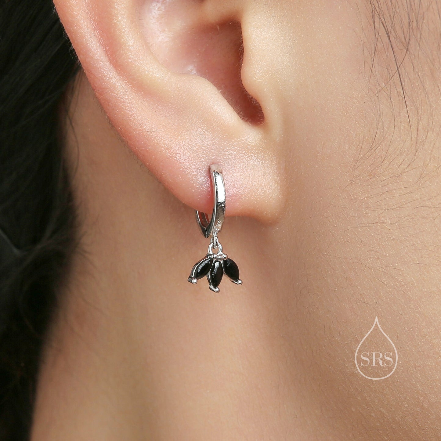 Emerald Green CZ Marquise Crown Huggie Hoop Earrings in Sterling Silver, Silver or Gold, Geometric Hoop Earrings, May Birthstone