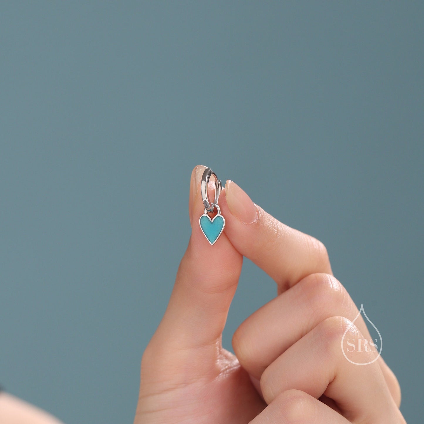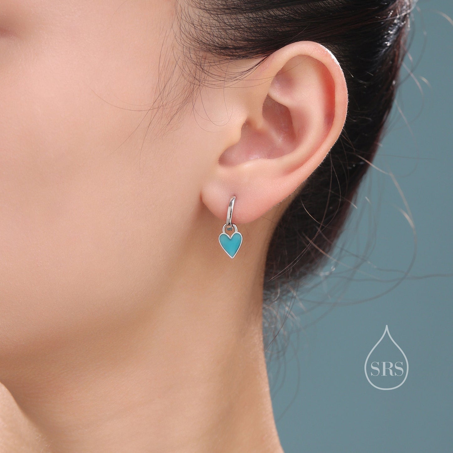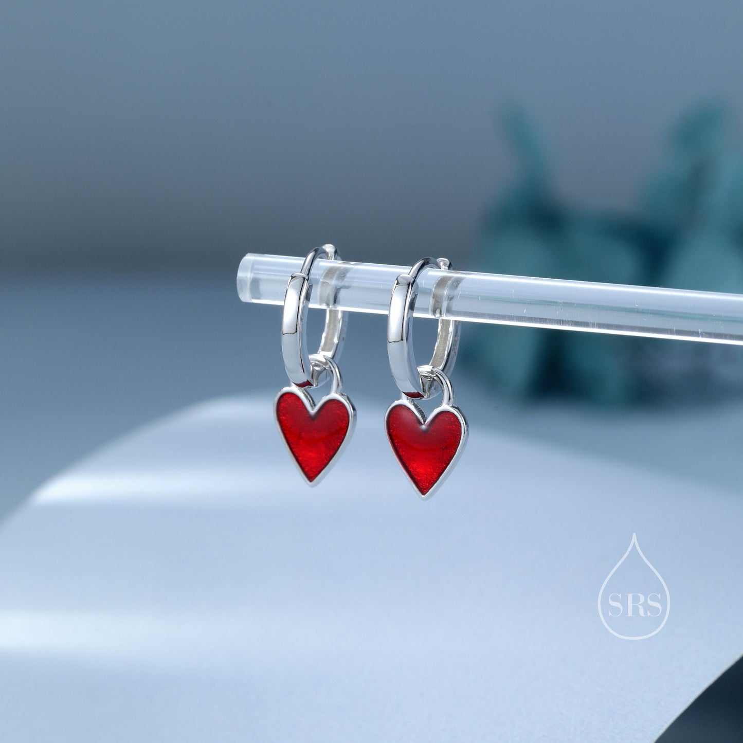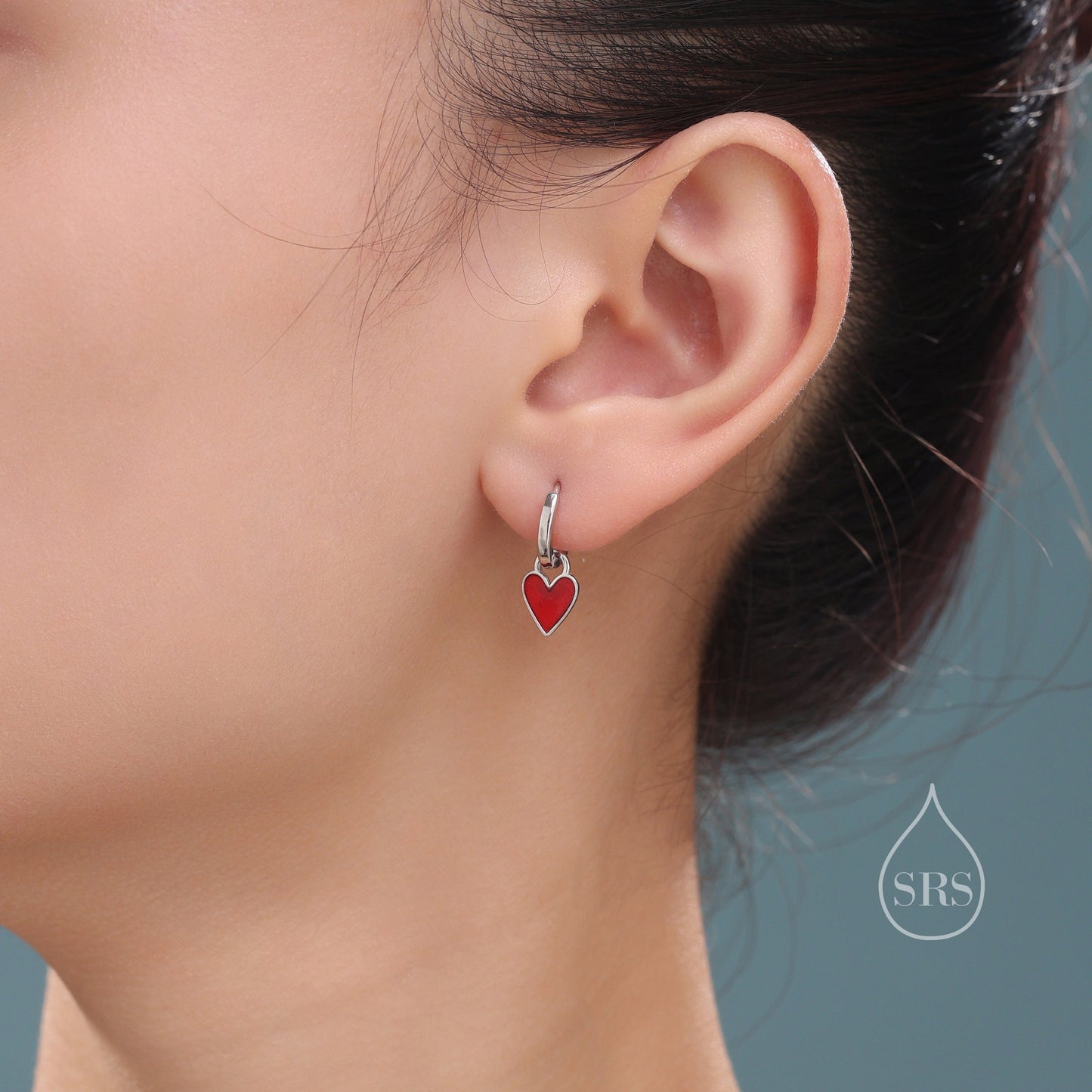 Enamel Glaze Heart Earrings in Sterling Silver, Red or Blue, Detachable Heart Charm Dangle Hoop Earrings, Interchangeable