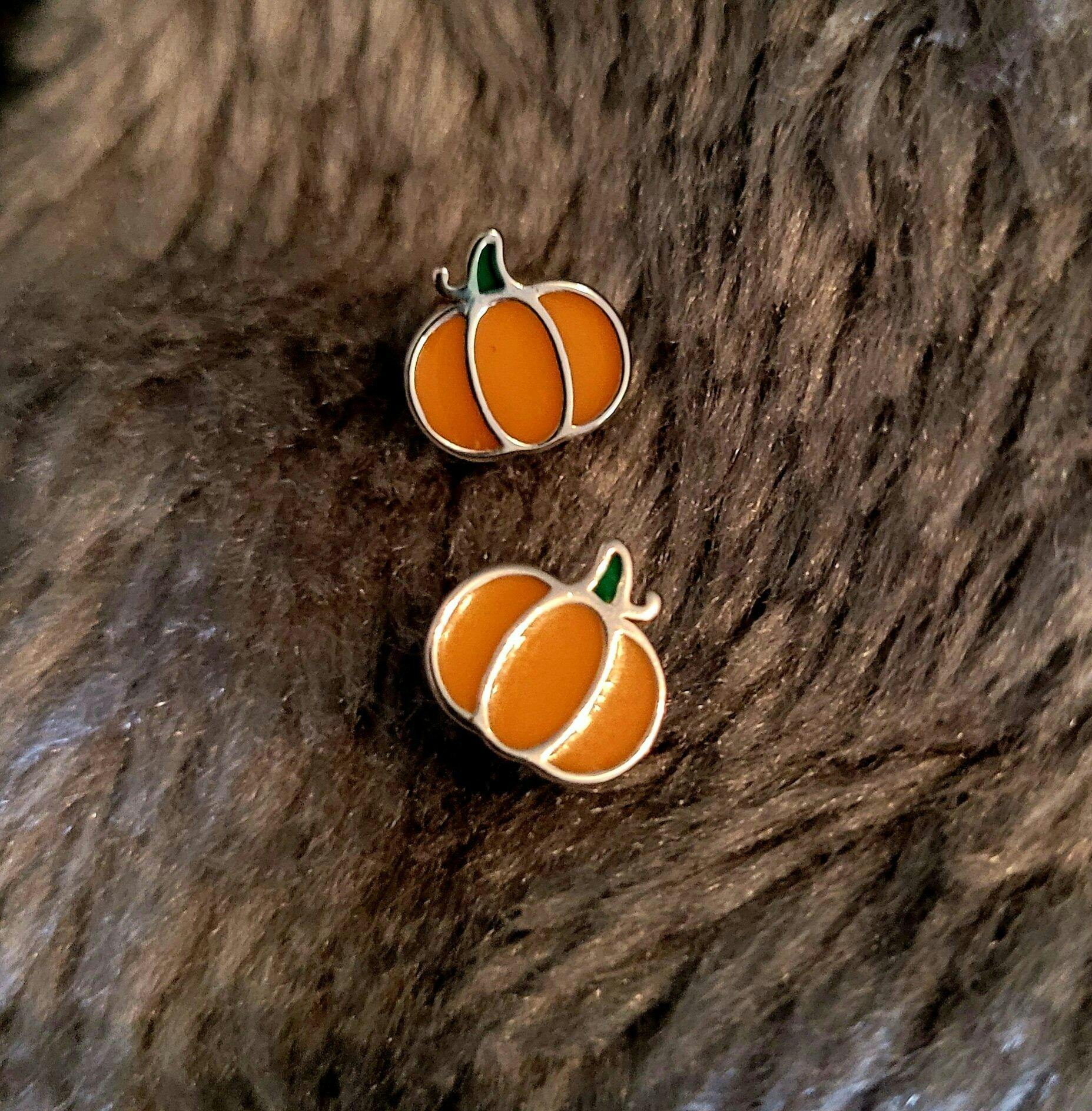 Enamel Pumpkin Stud Earrings in Sterling Silver, Silver, Gold or Rose Gold, Tiny Pumpkin Earrings, Halloween Earrings