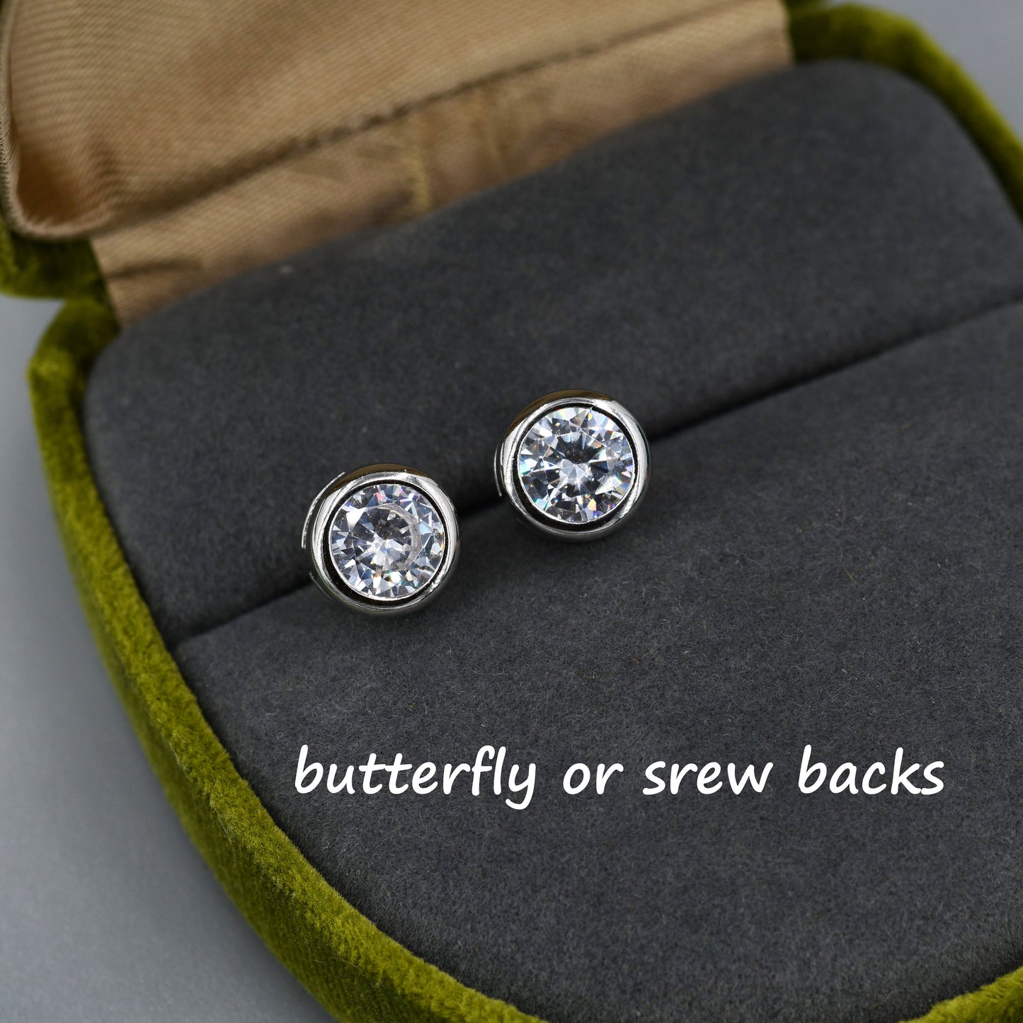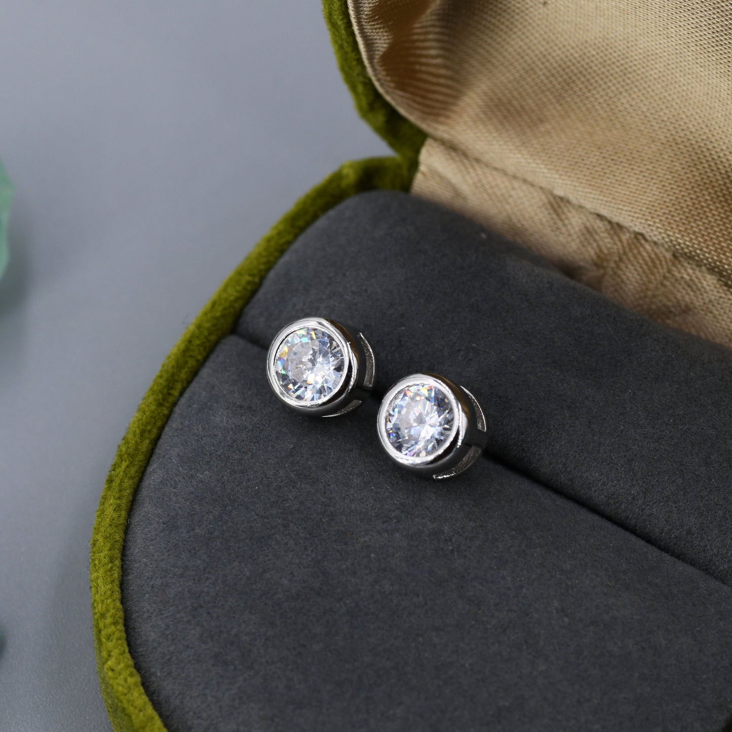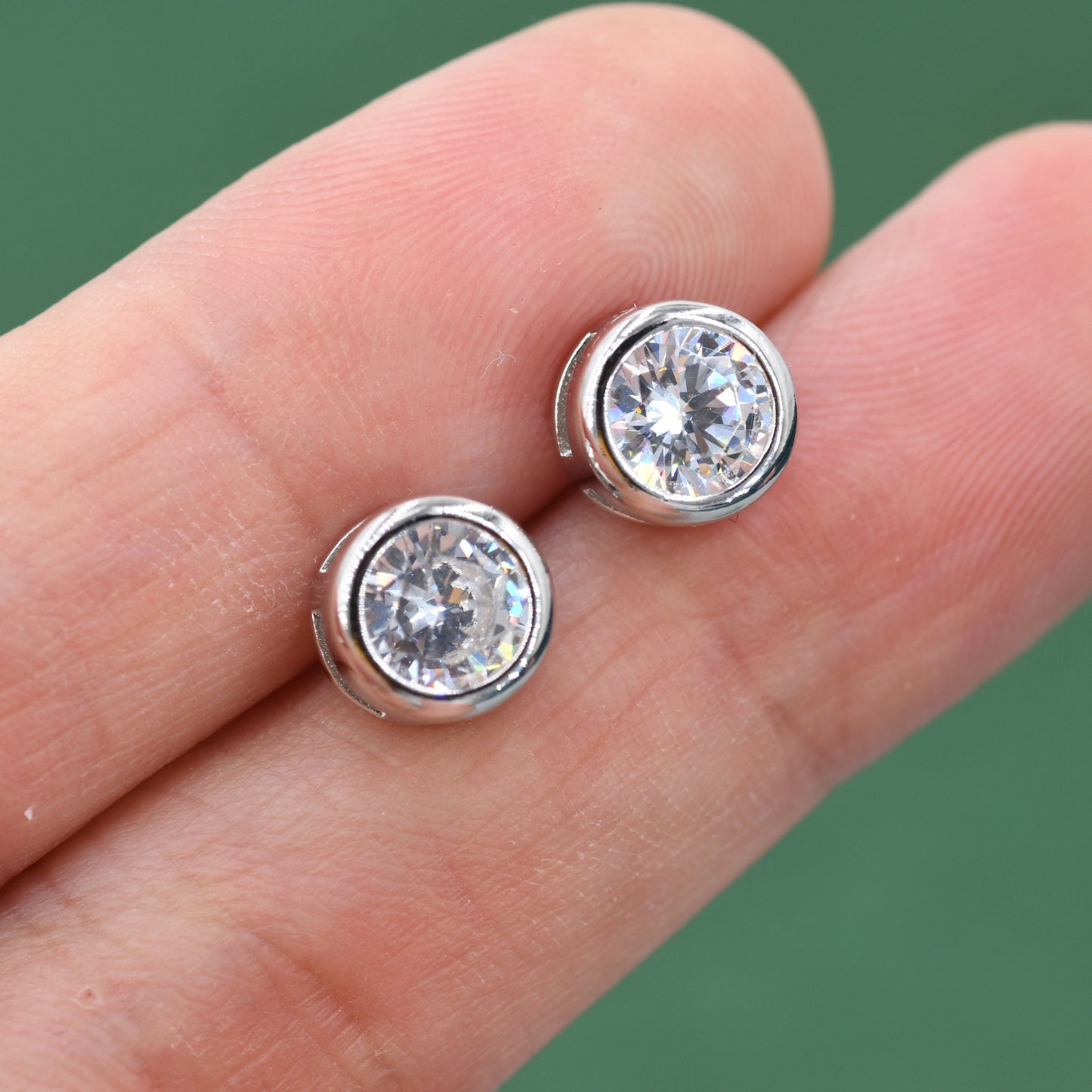 Extra Large 6mm CZ Stud Earrings in Sterling Silver, 6mm Bezel Stud Earrings, 6mm Crystal Earrings, Chunky CZ Stud
