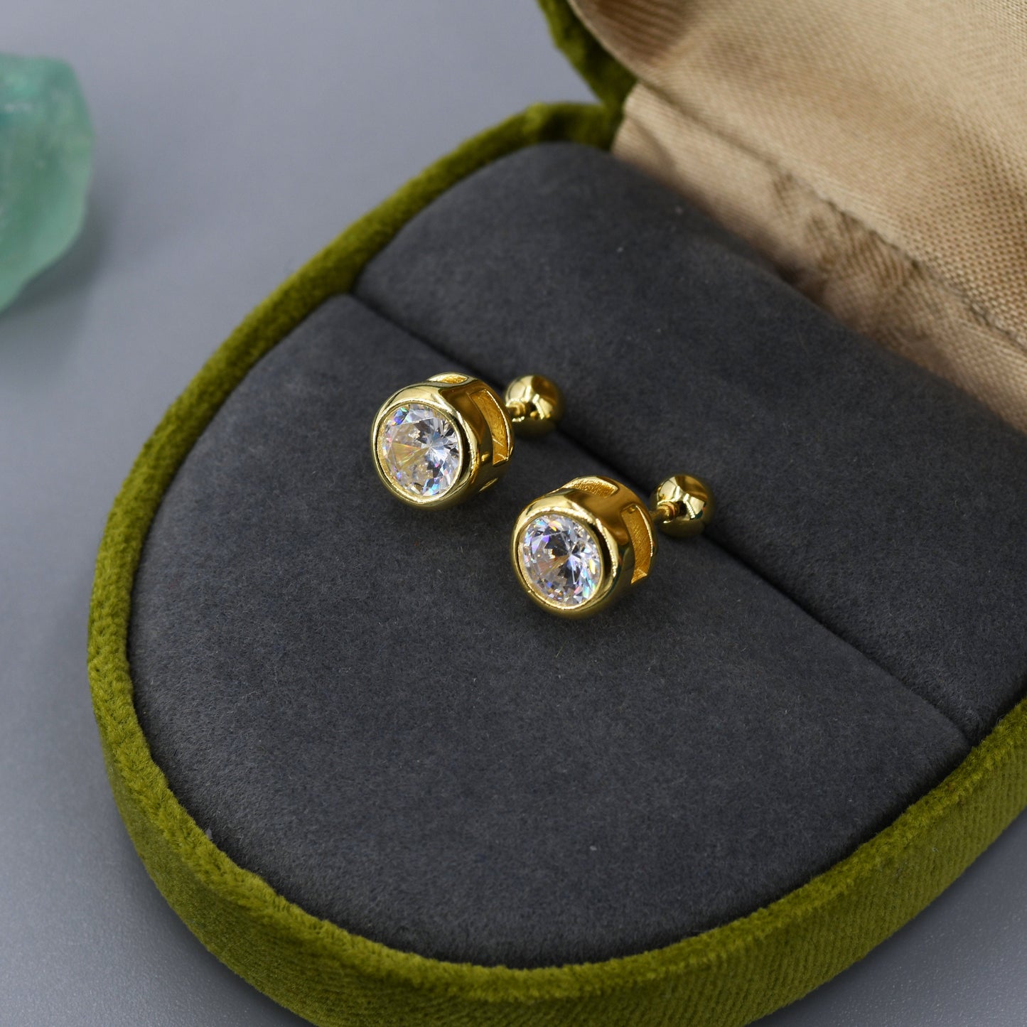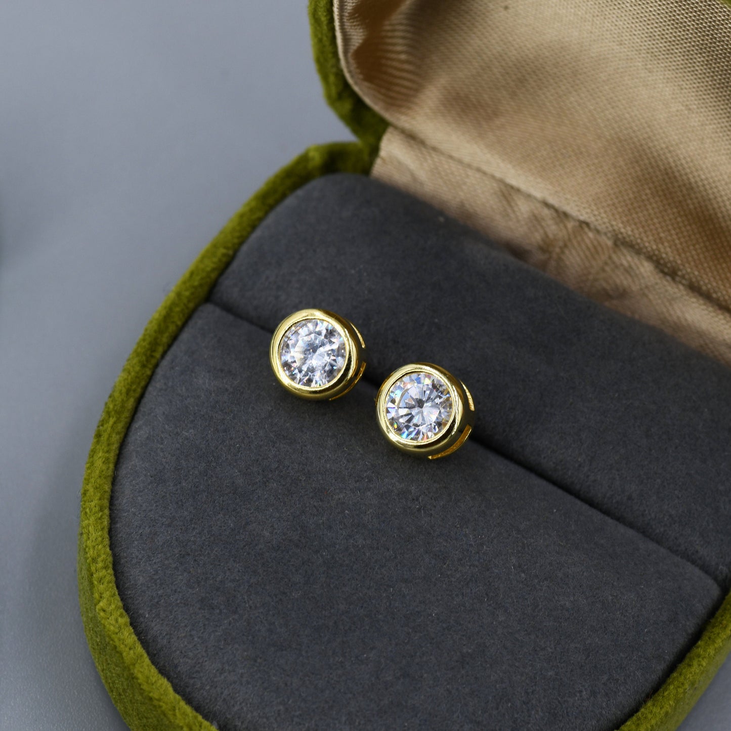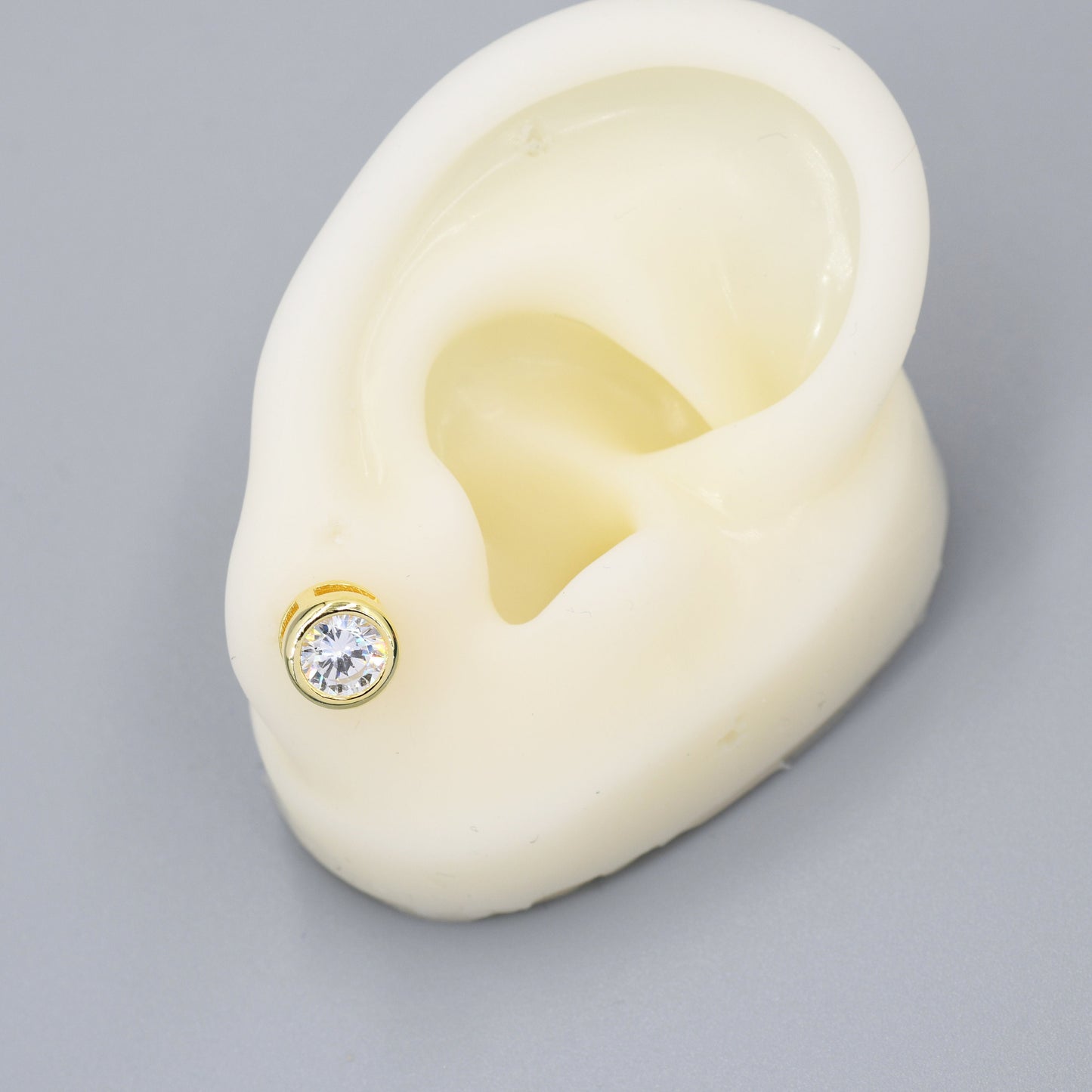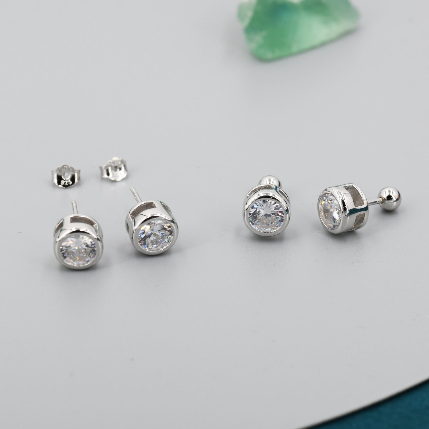 Extra Large 6mm CZ Stud Earrings in Sterling Silver, 6mm Bezel Stud Earrings, 6mm Crystal Earrings, Chunky CZ Stud