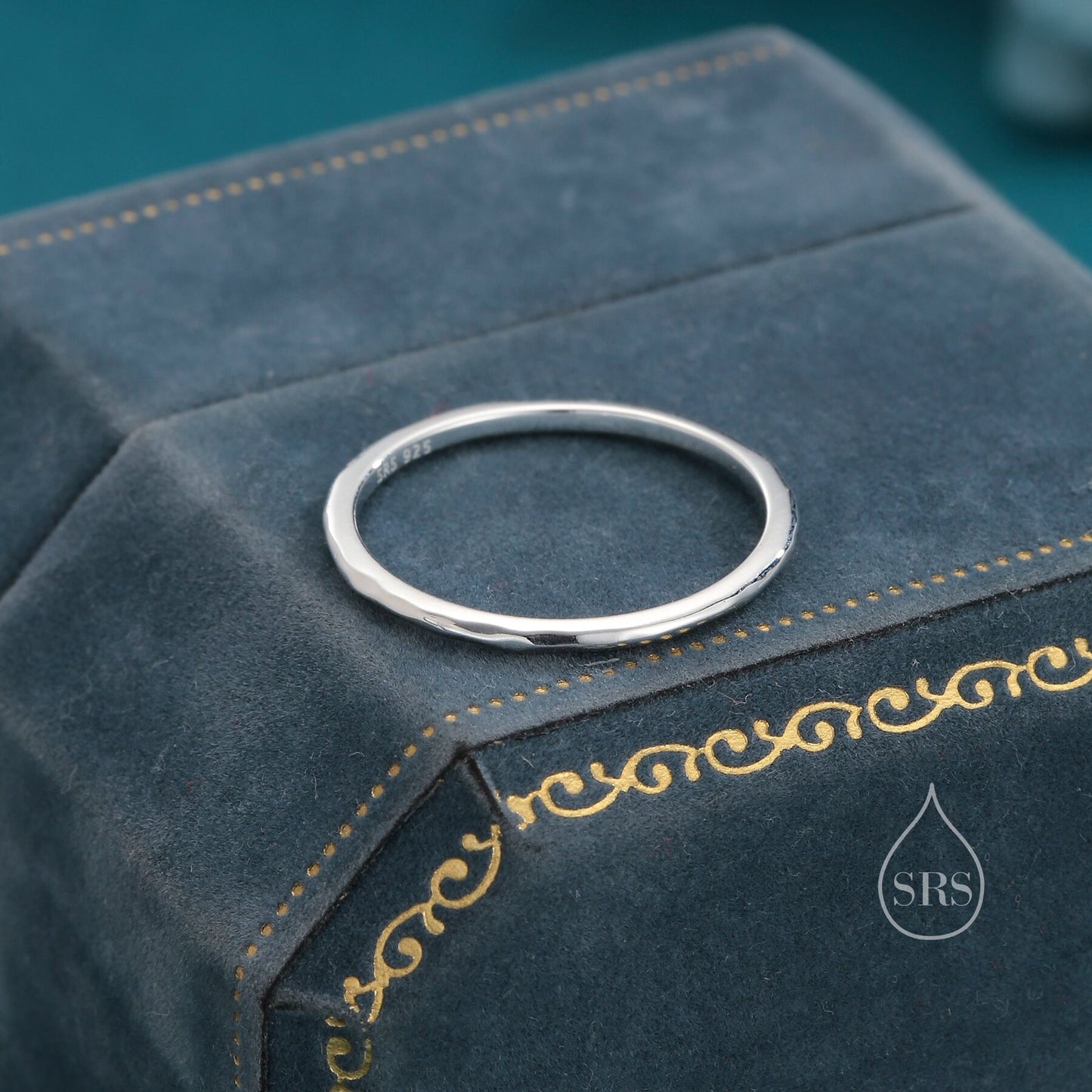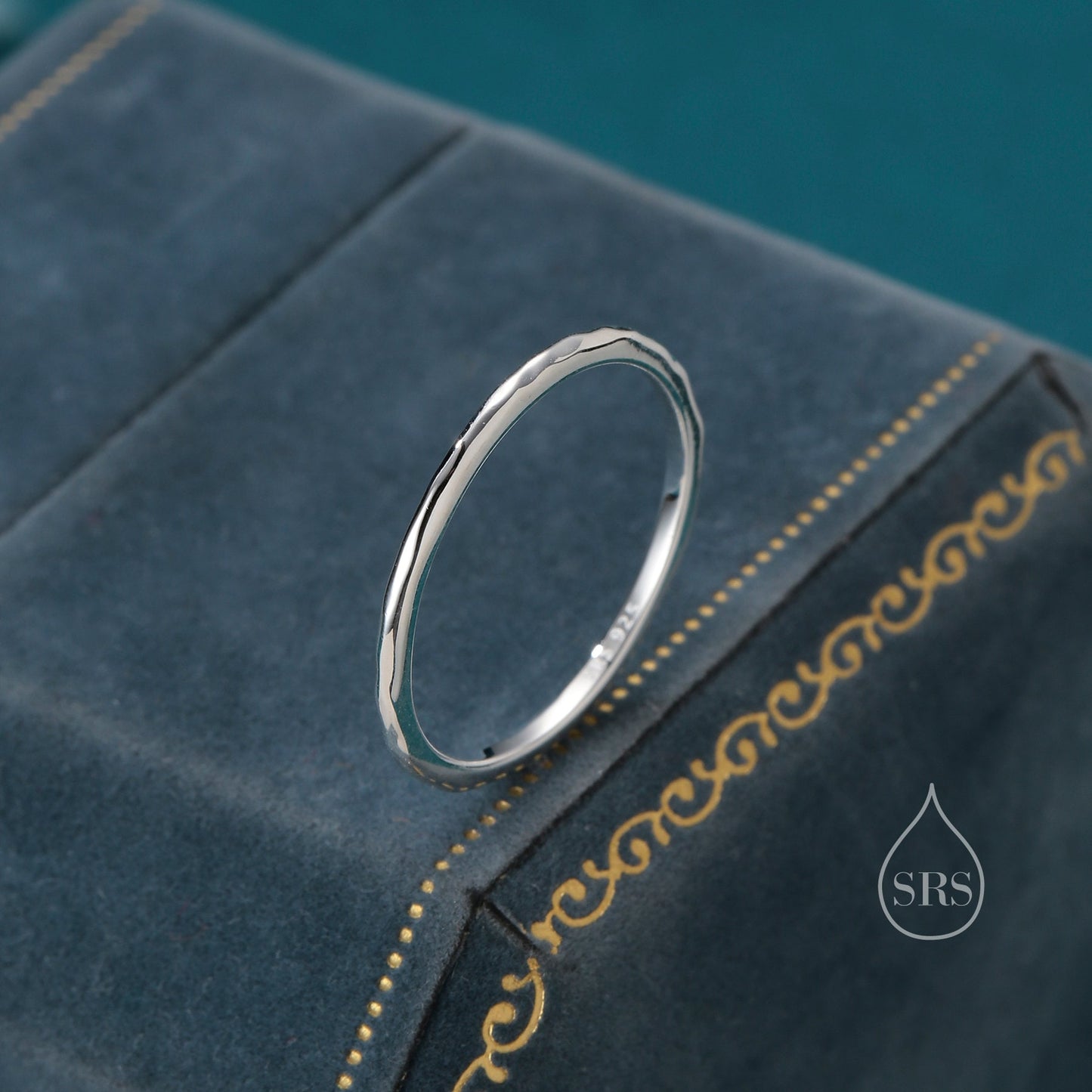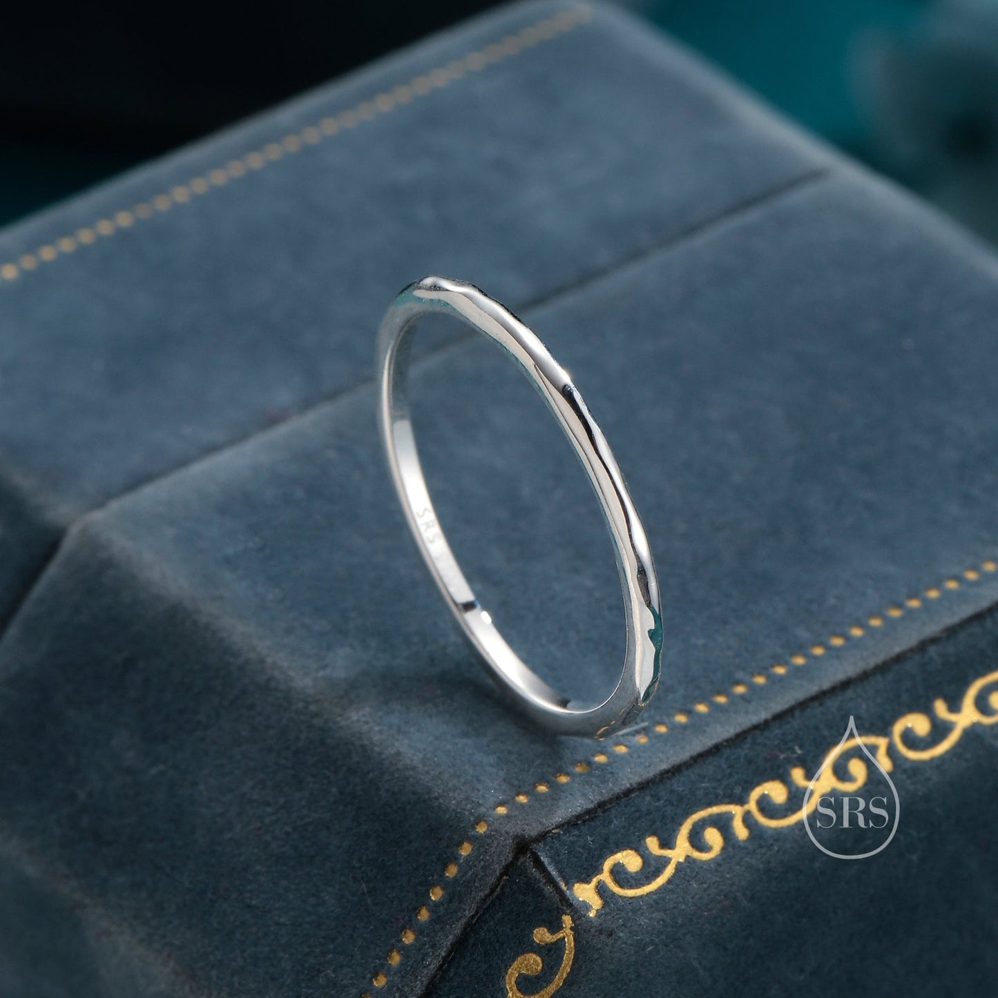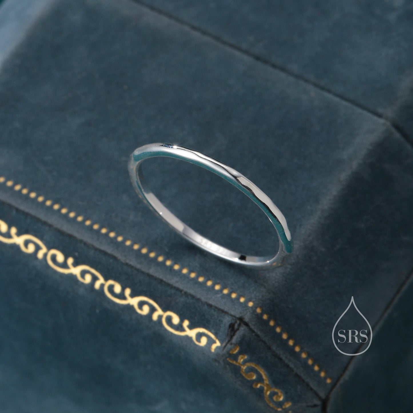 Extra Skinny Sterling Silver Hammered Ring, Very Skinny Irregular Textured Delicate Ring Band, Stacking Ring US 5-8, Wave Ring