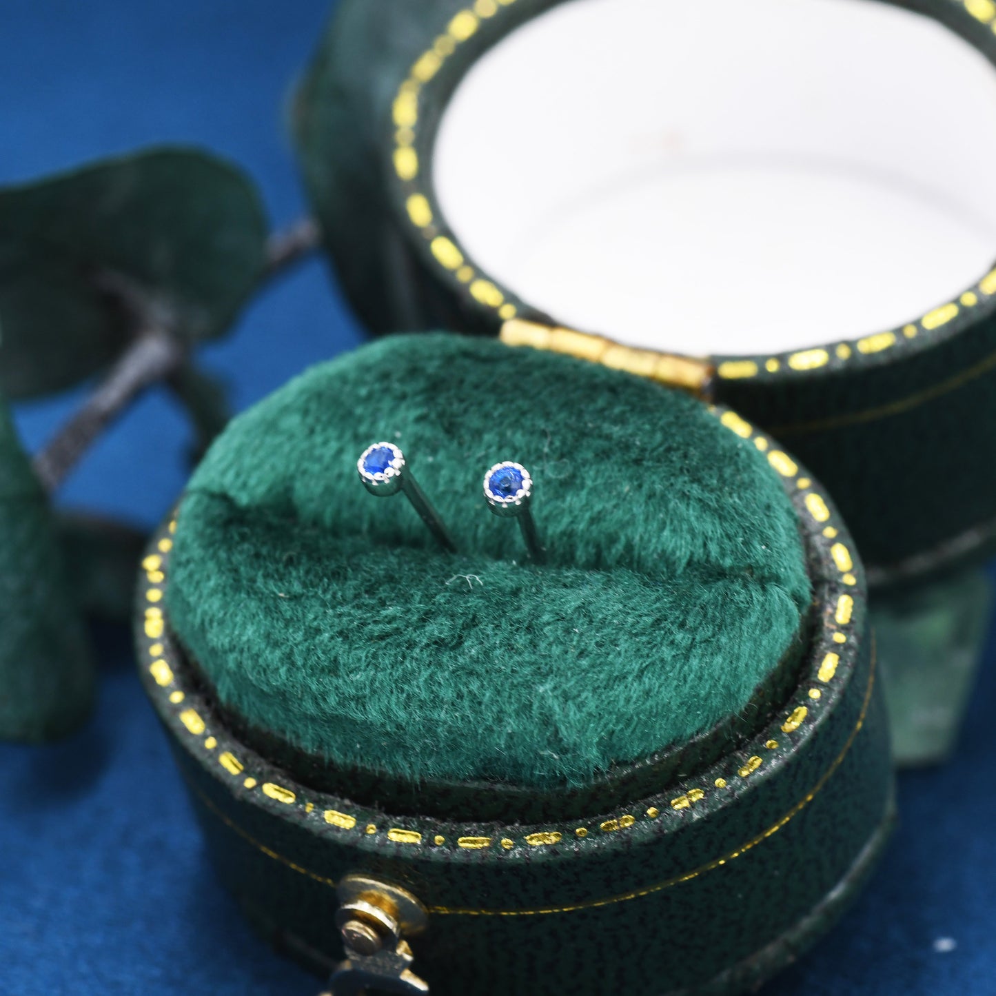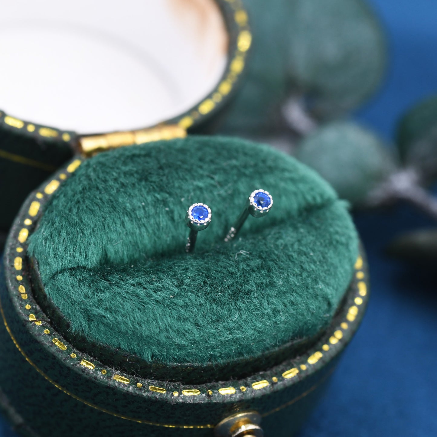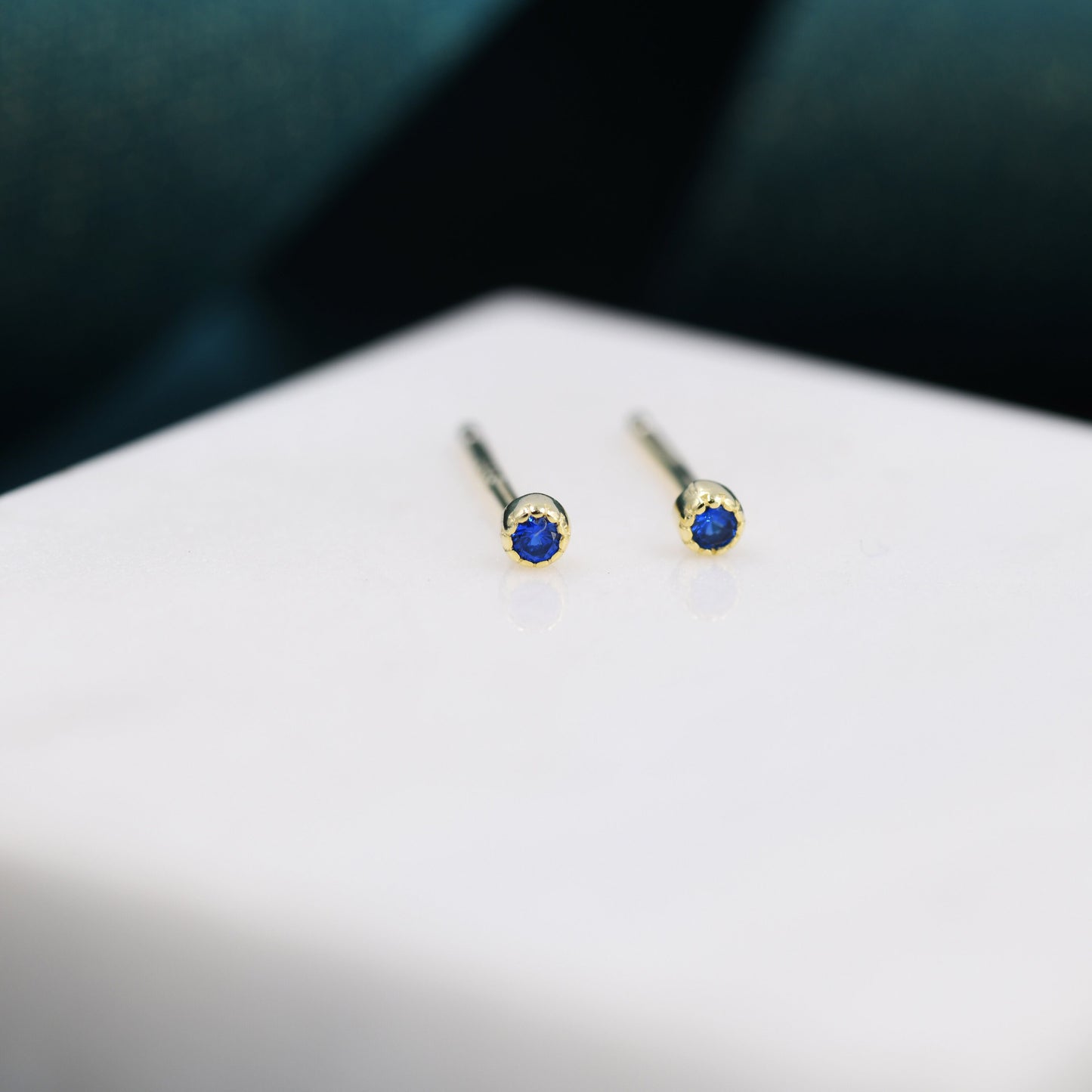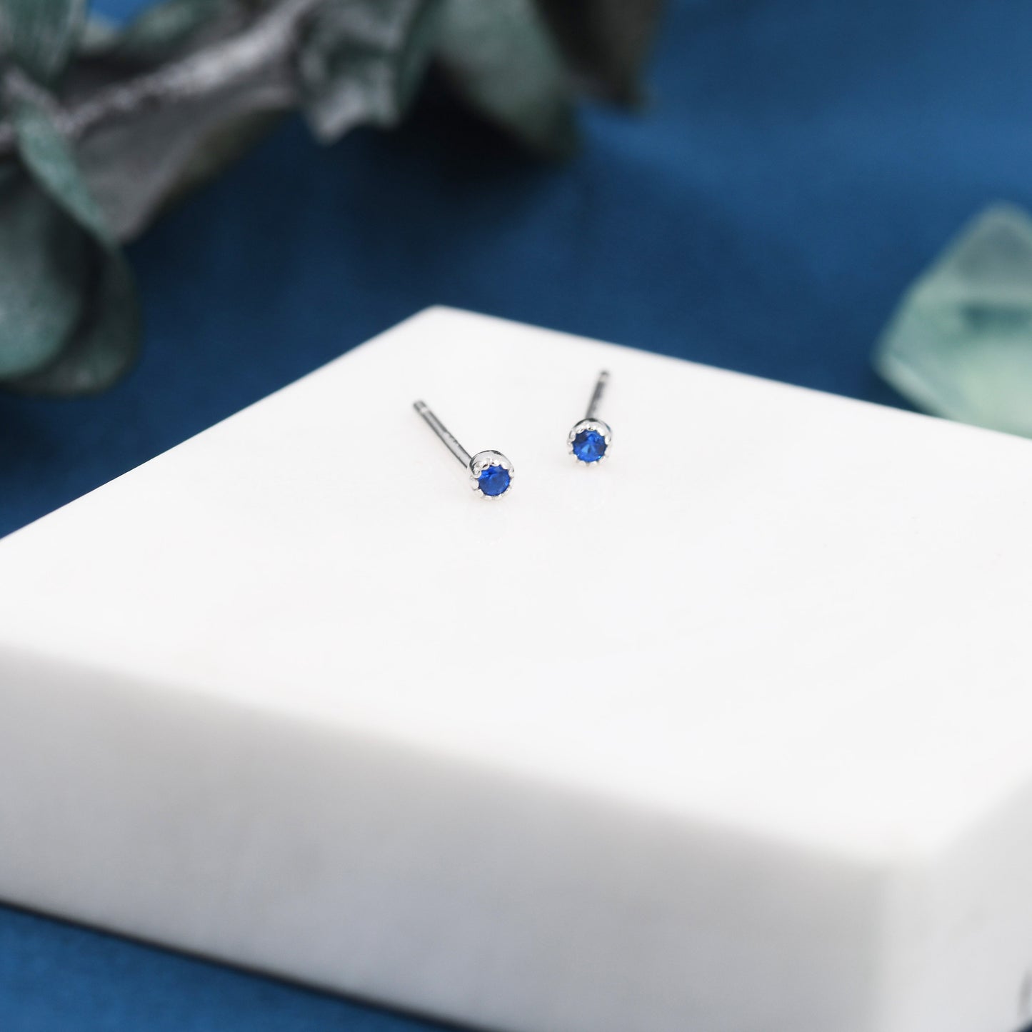 Extra Tiny 2mm Sapphire Blue CZ Stud Earrings in Sterling Silver, Barely Visible CZ Earrings, Stacking Earrings, Extra Small Stud Earrings