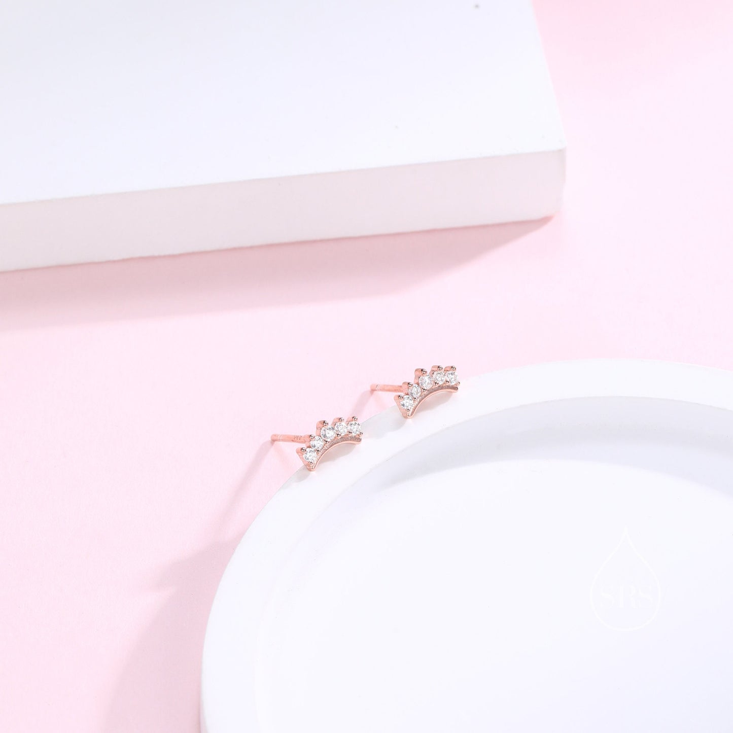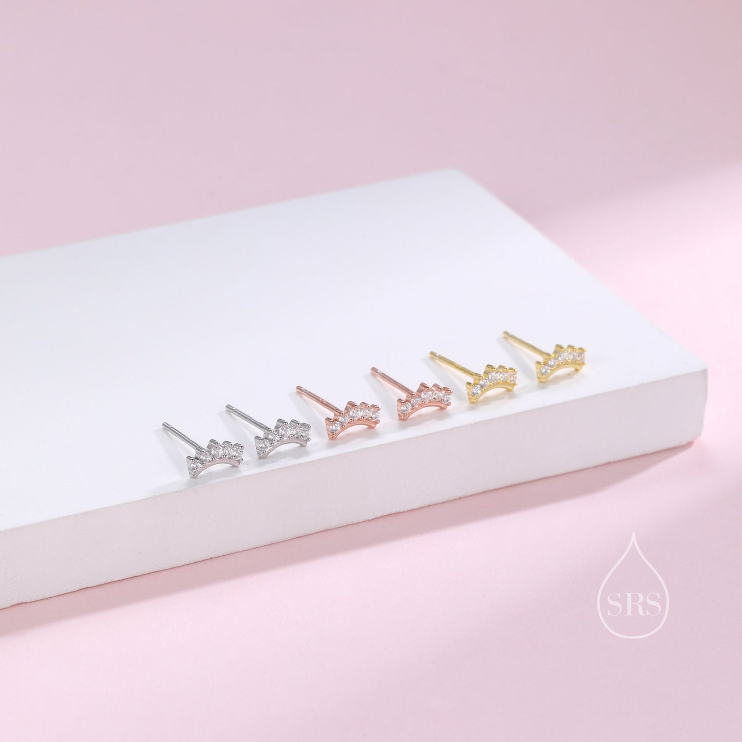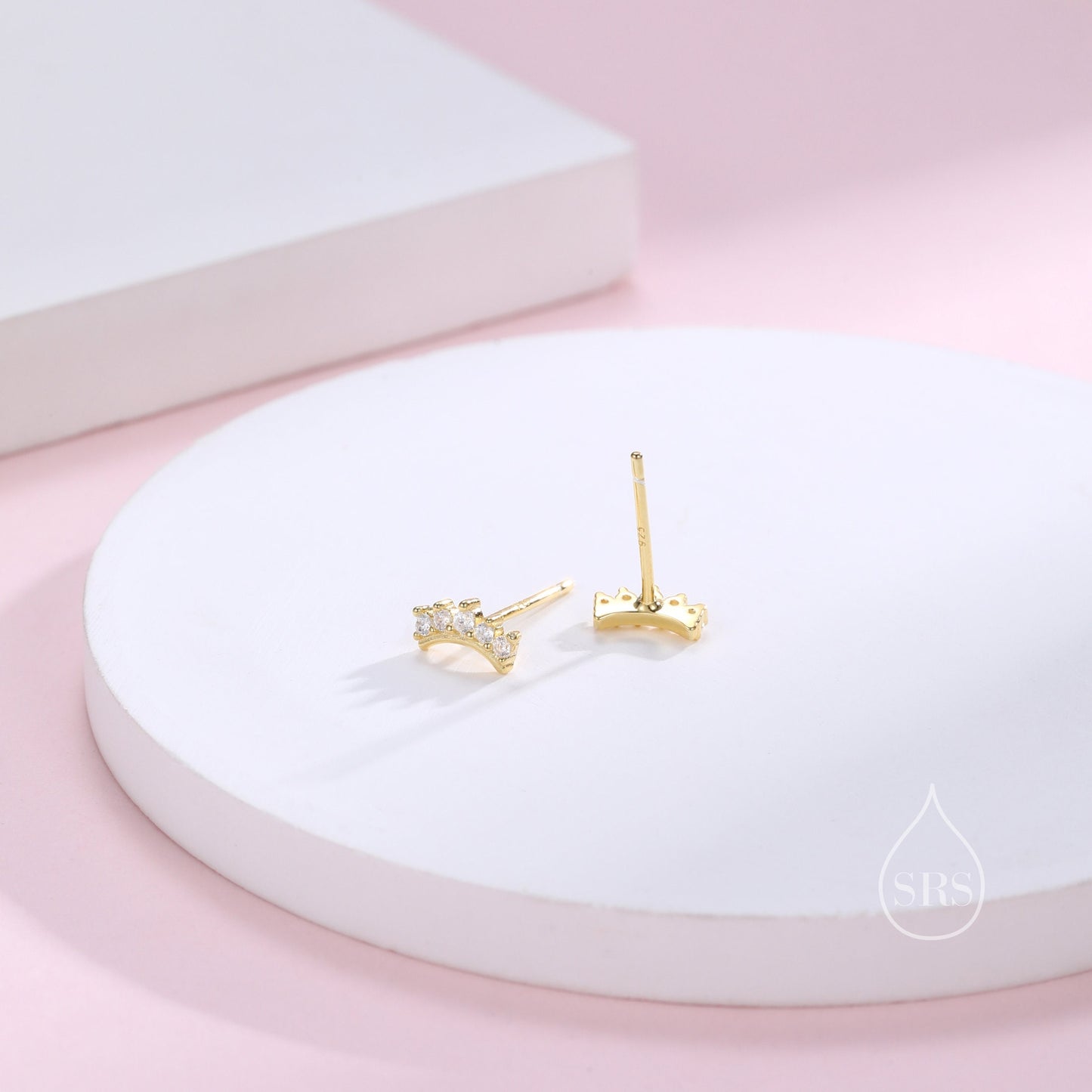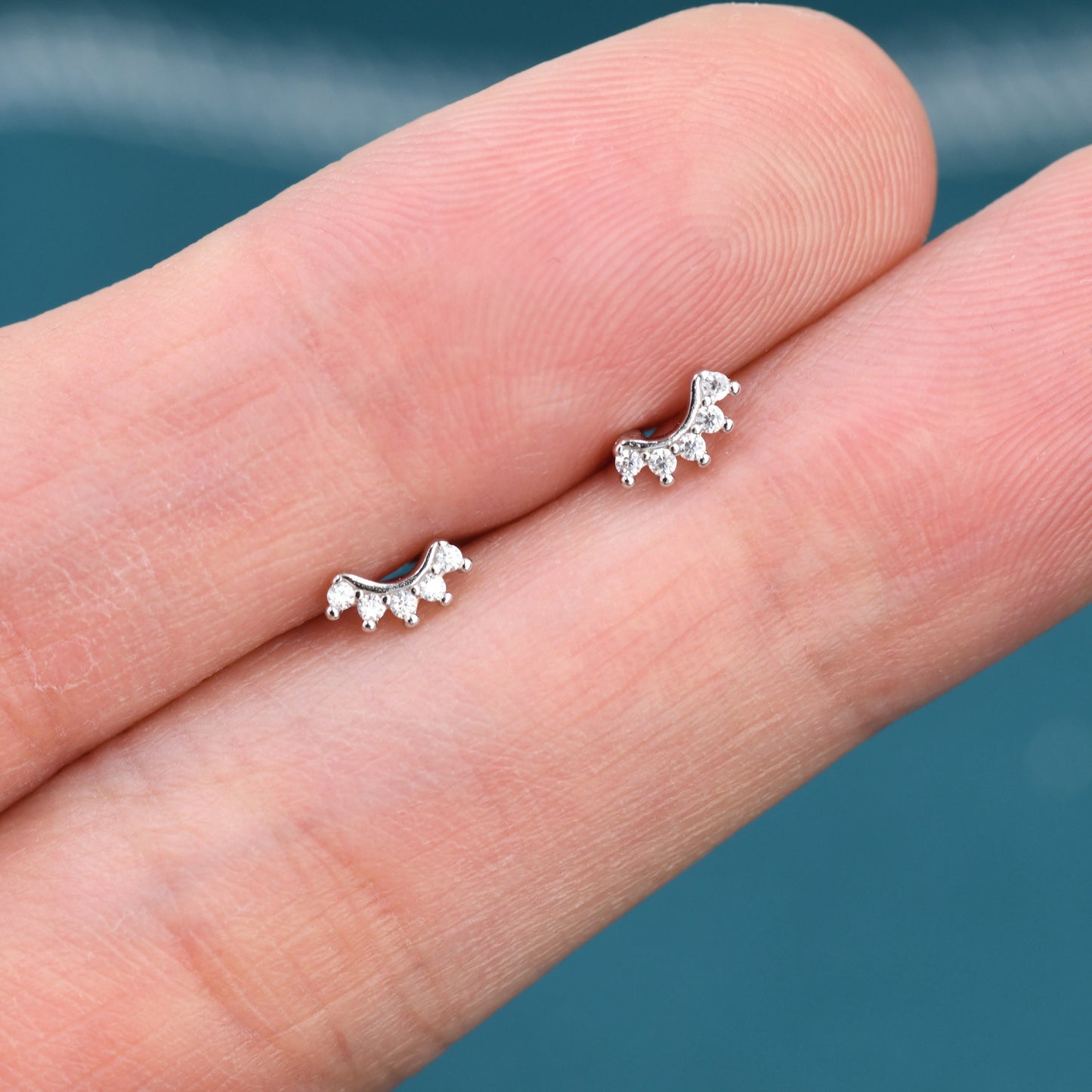Extra Tiny Curved CZ Bar Stud Earrings in Sterling Silver, Silver or Gold, Geometric Tiny Three Star CZ Earrings, Stacking Earrings