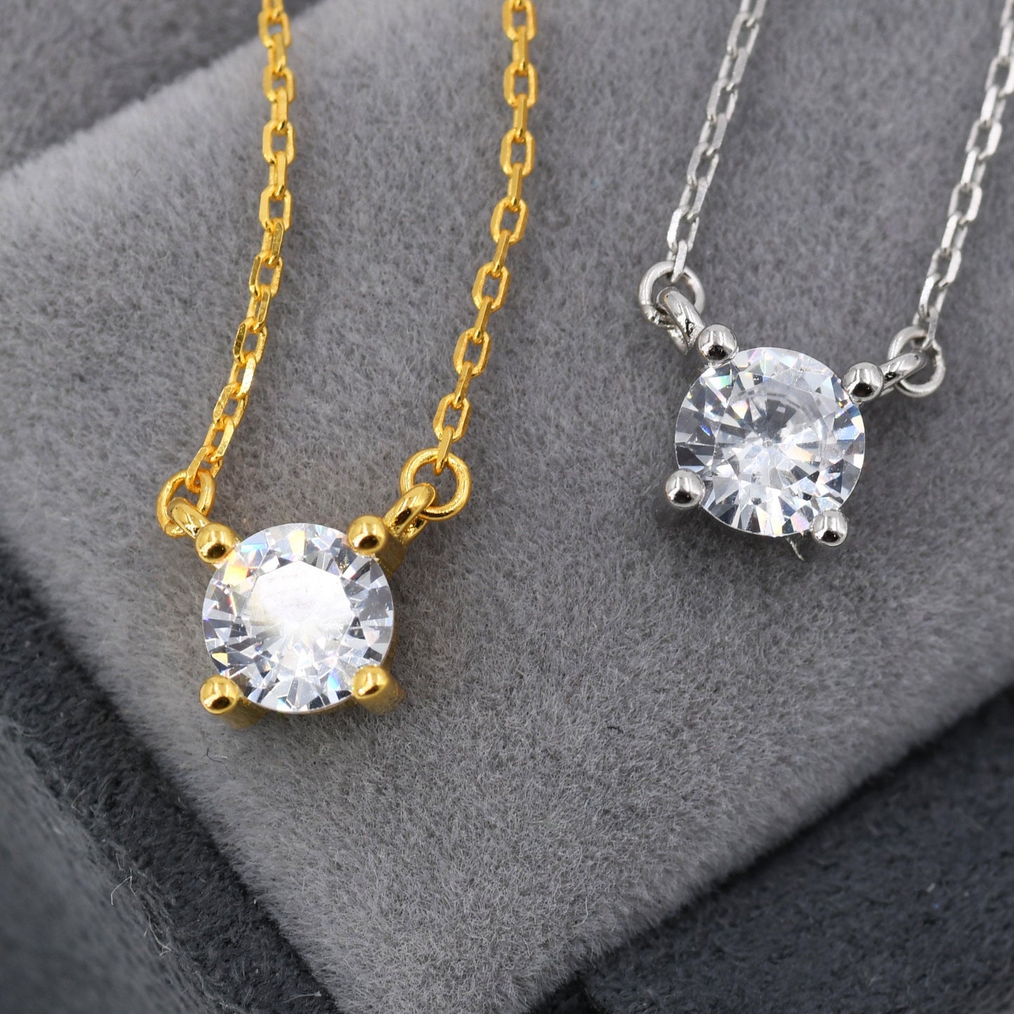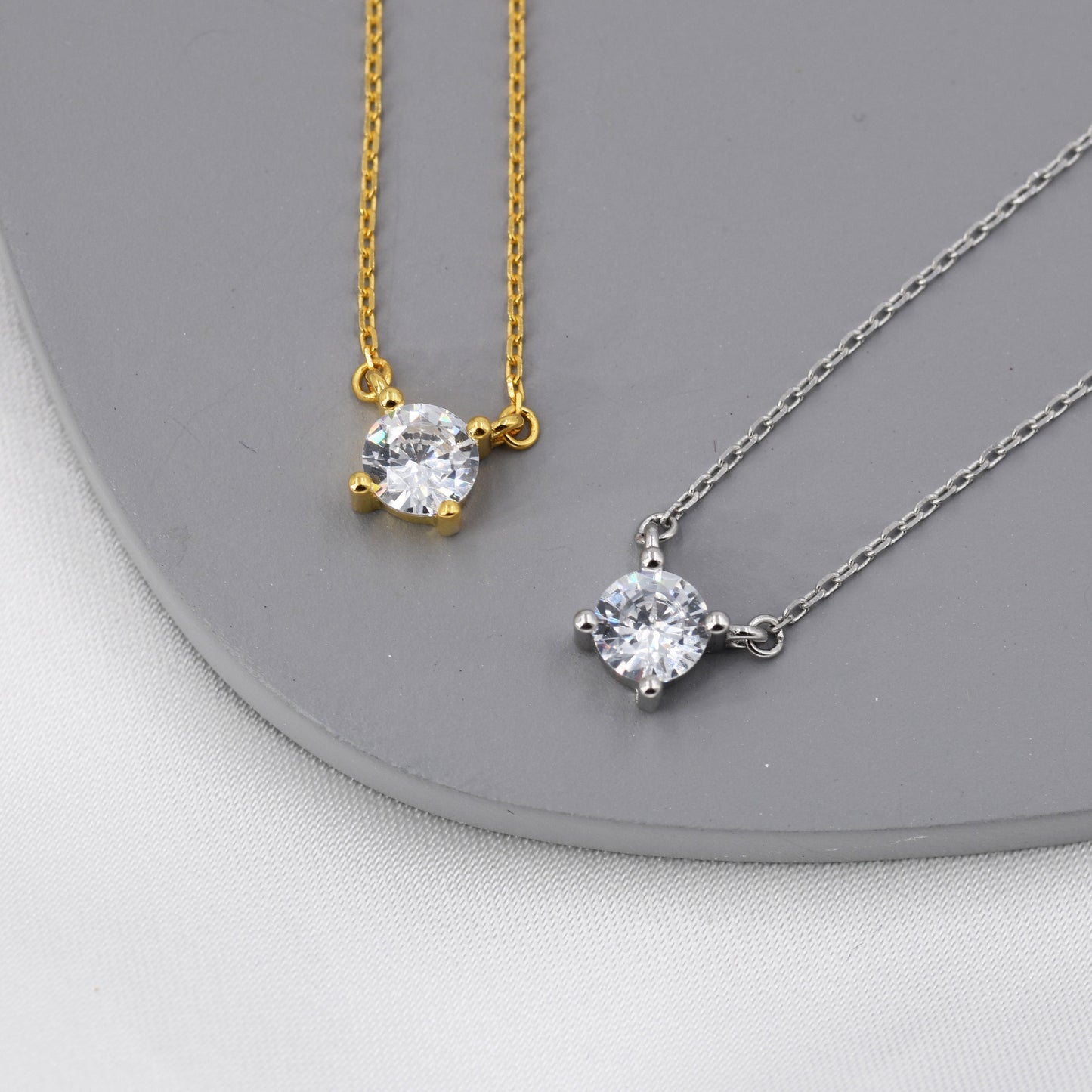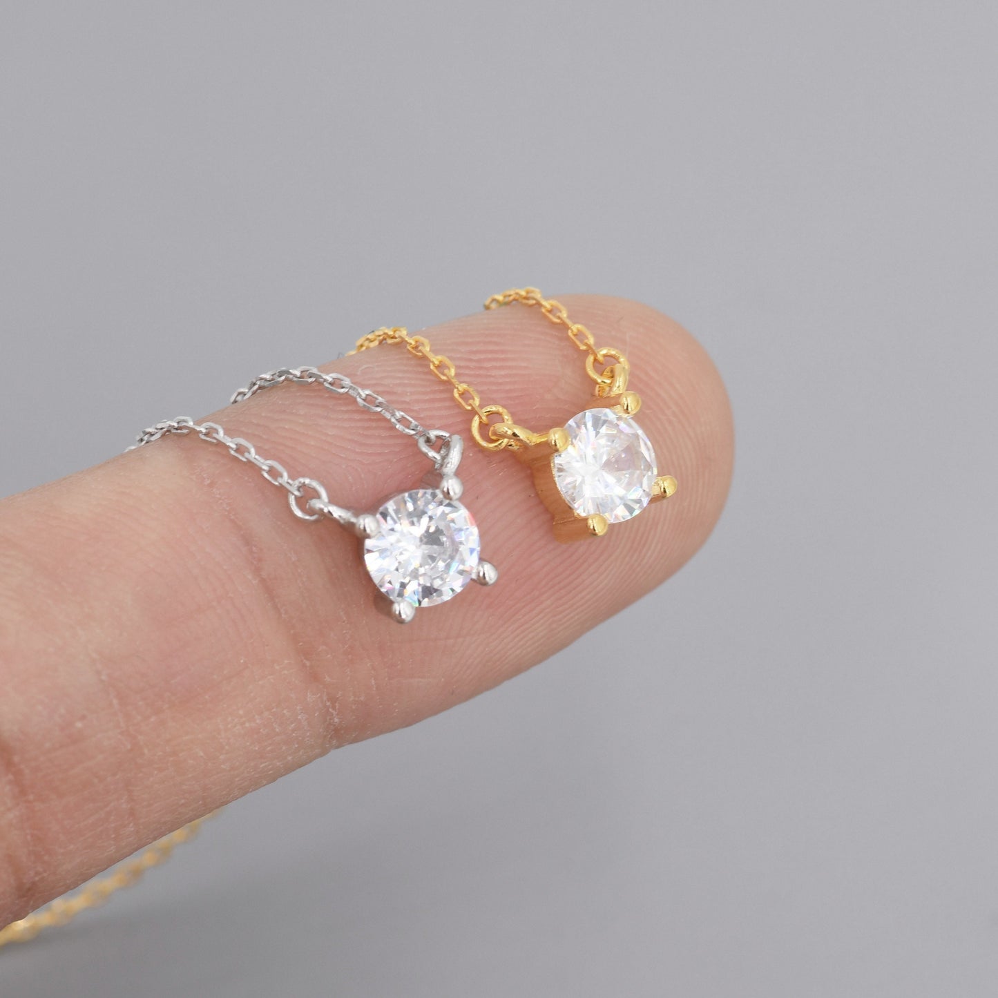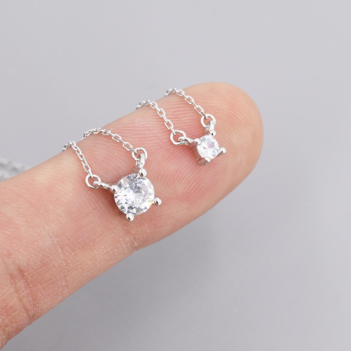 Extra Tiny CZ Necklace in Sterling Silver, Silver or Gold, Diamond Cut CZ Pendant Necklace