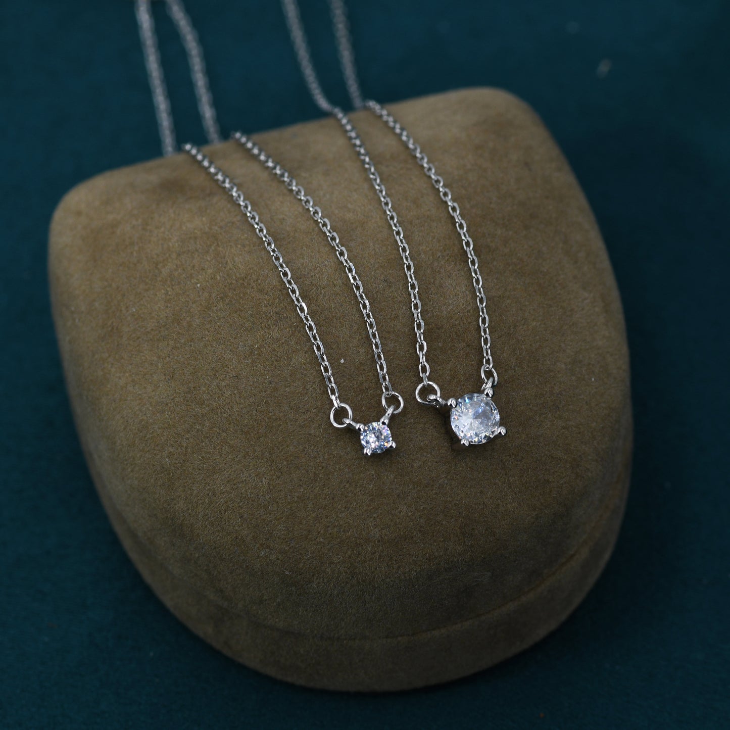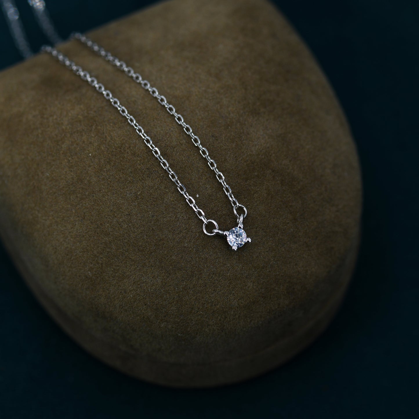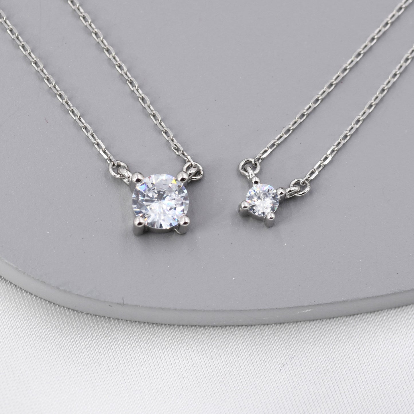 Extra Tiny CZ Necklace in Sterling Silver, Available in Two Stone Sizes, Silver or Gold, CZ Pendant Necklace