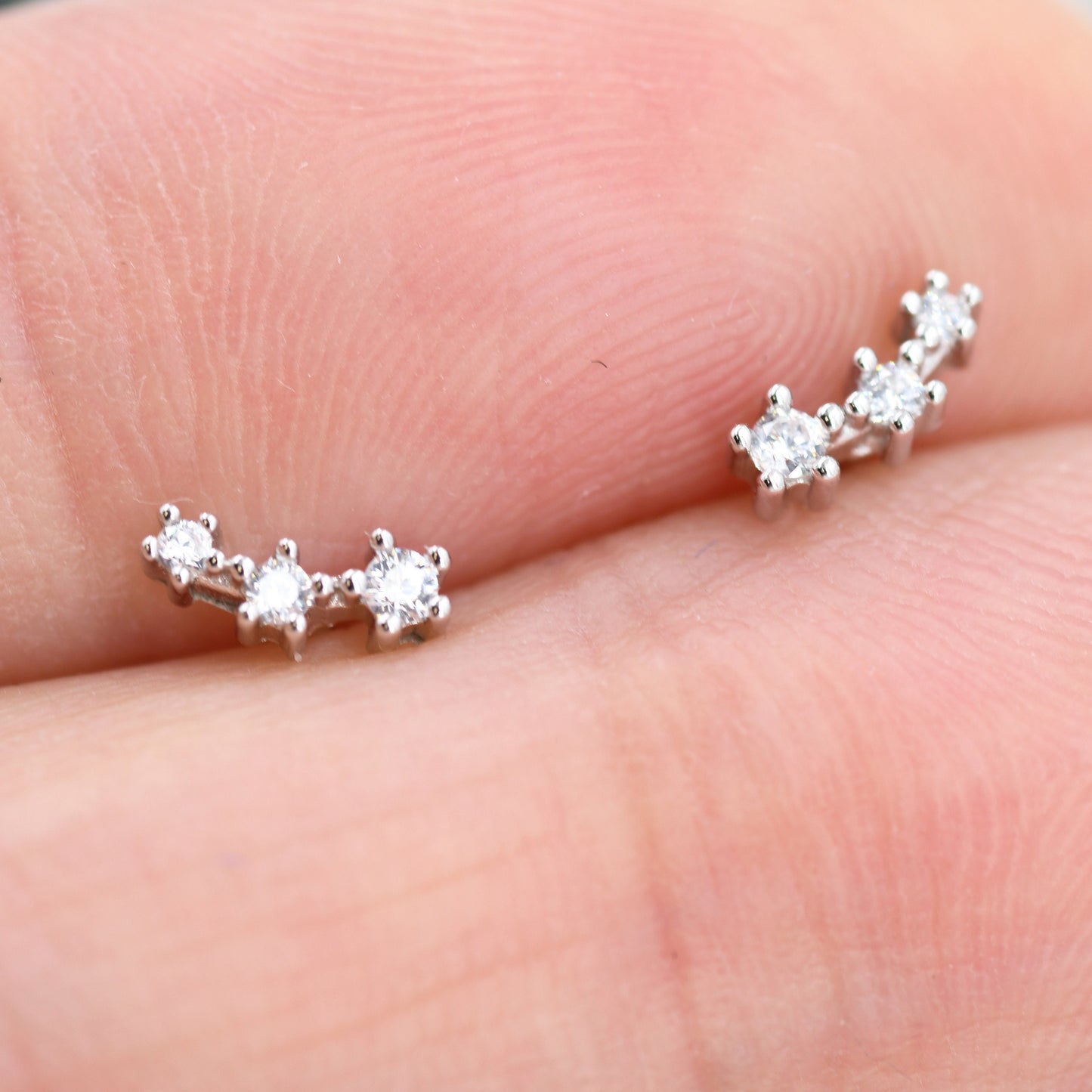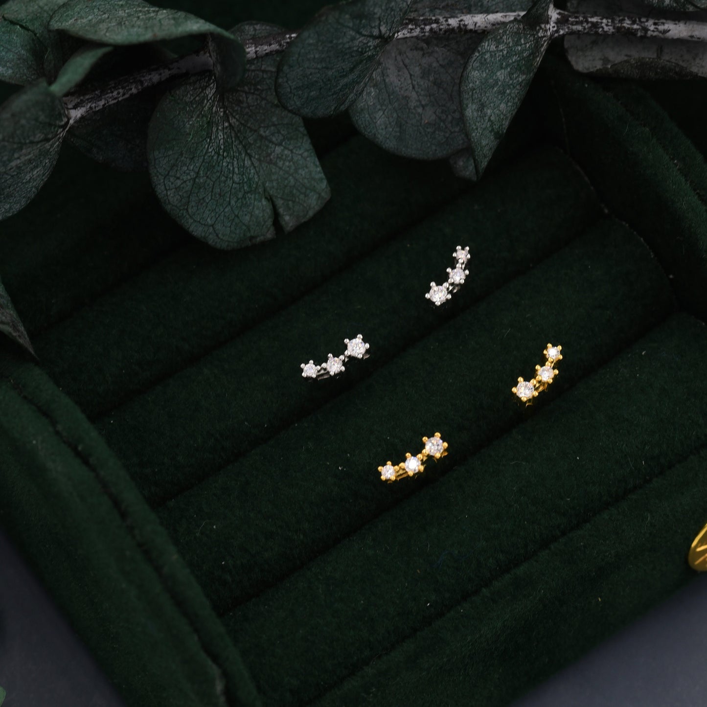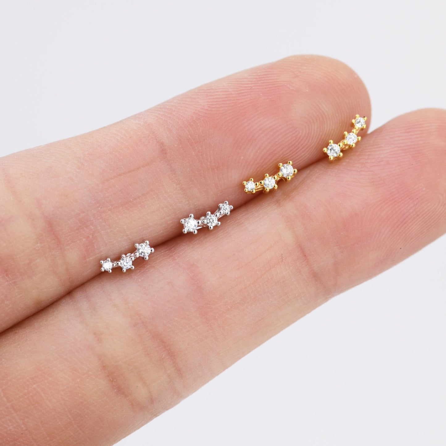 Extra Tiny CZ Trio Stud Earrings in Sterling Silver, Silver or Gold, Geometric Tiny Three Star CZ Earrings, Stacking Earrings