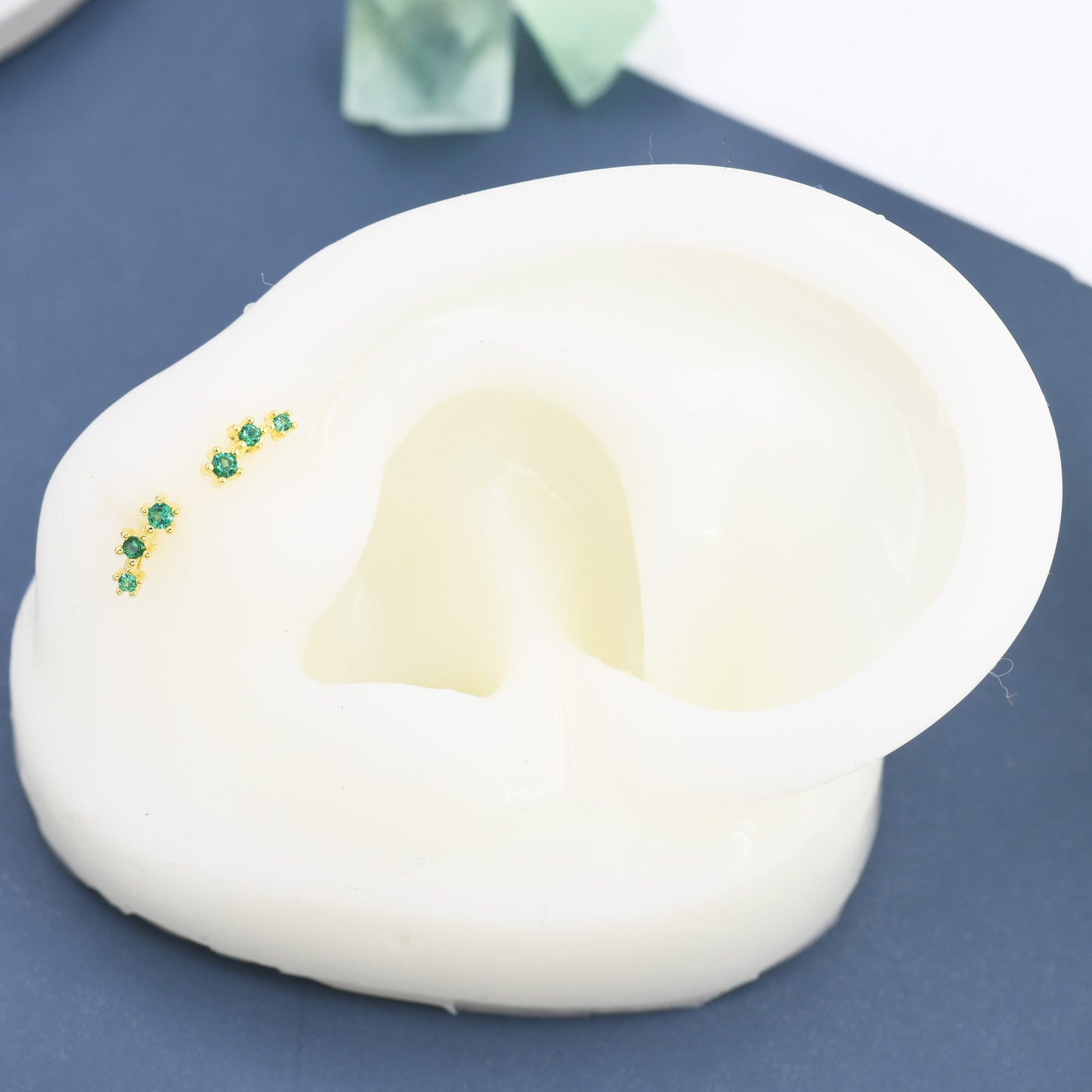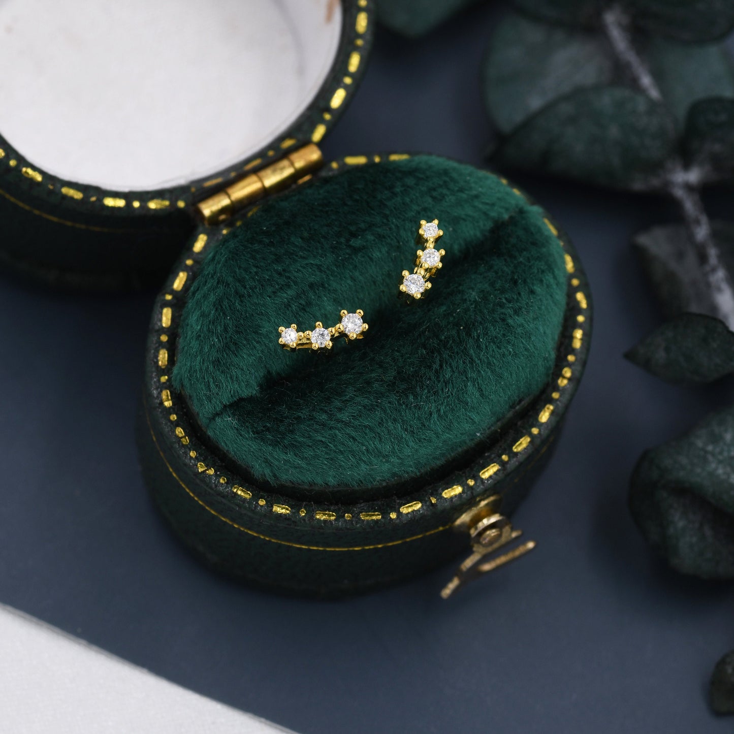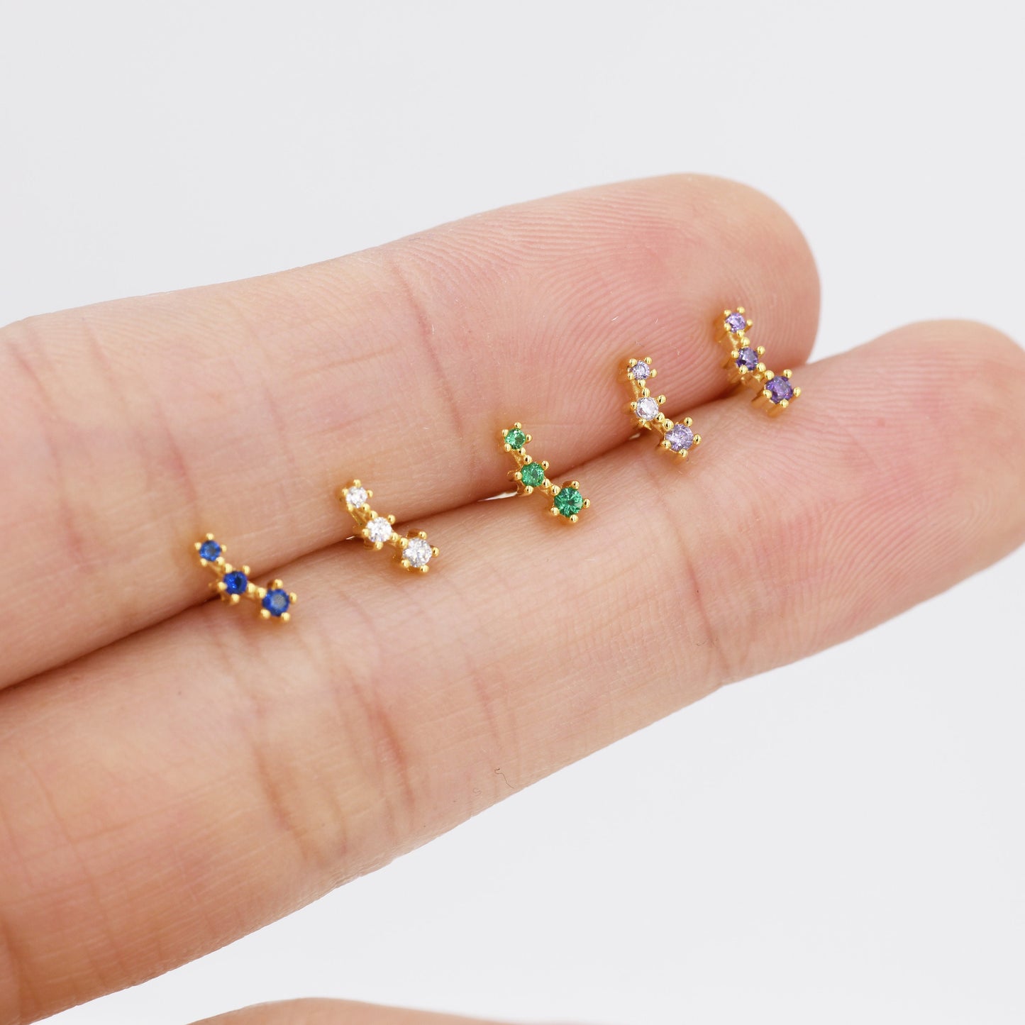 Extra Tiny CZ Trio Stud Earrings in Sterling Silver, Silver or Gold, Geometric Tiny Three Star CZ Earrings, Stacking Earrings
