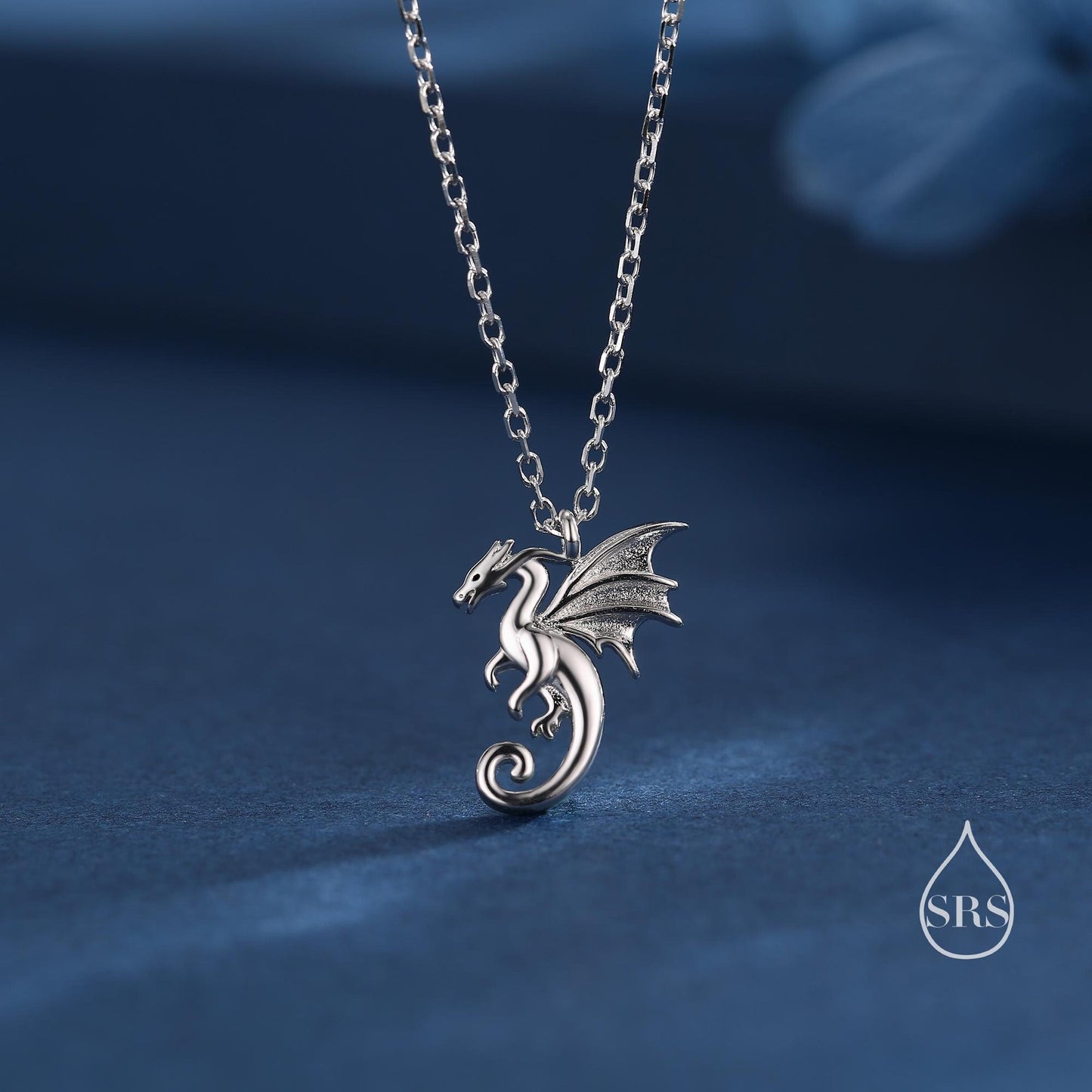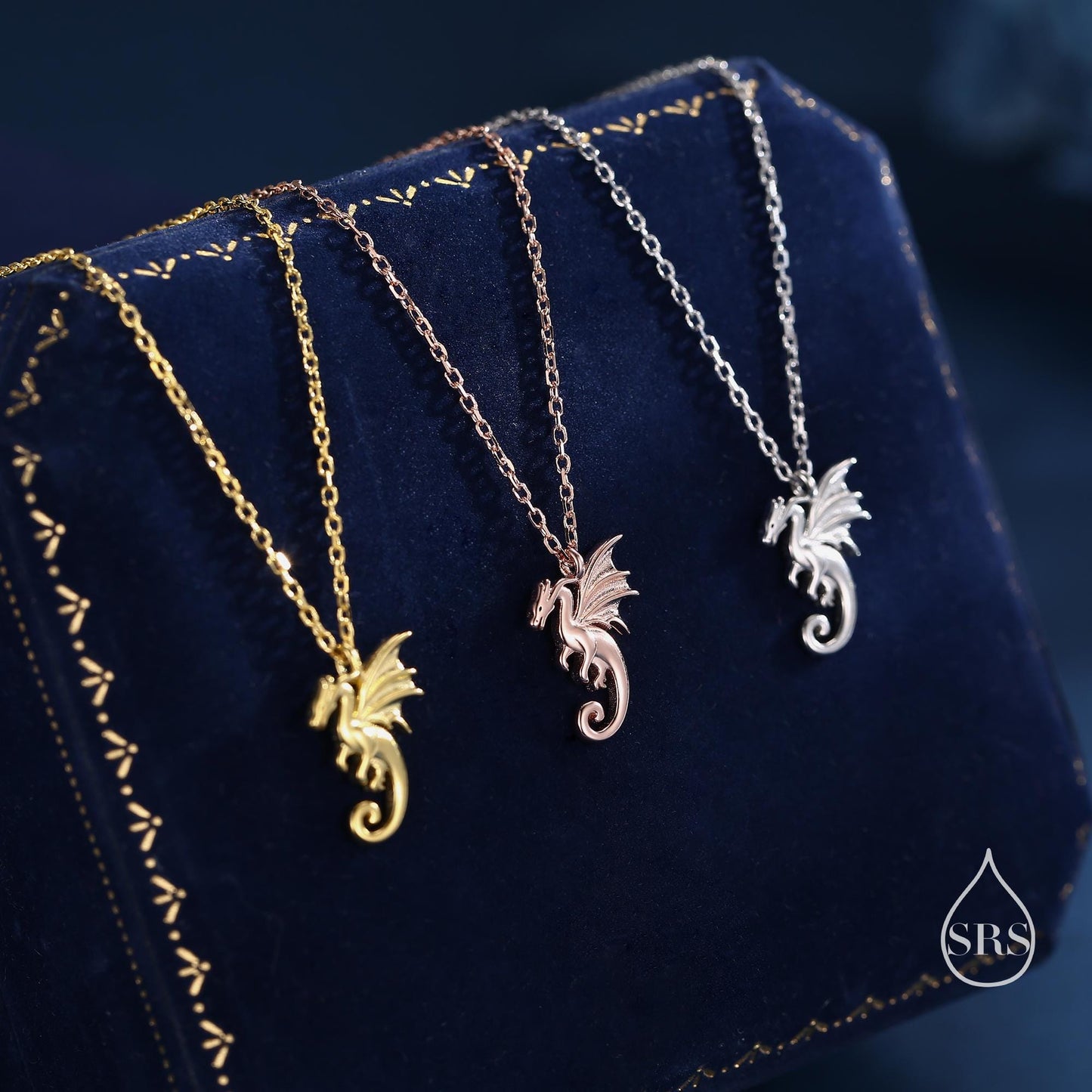 Extra Tiny Dragon Pendant Necklace in Sterling Silver, Silver or Gold or Rose Gold, Flying Dragon Necklace, Small Winged Dragon Pendant Necklace