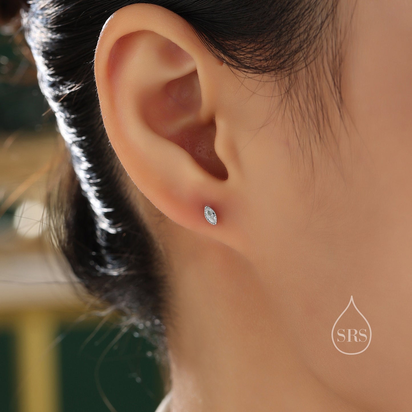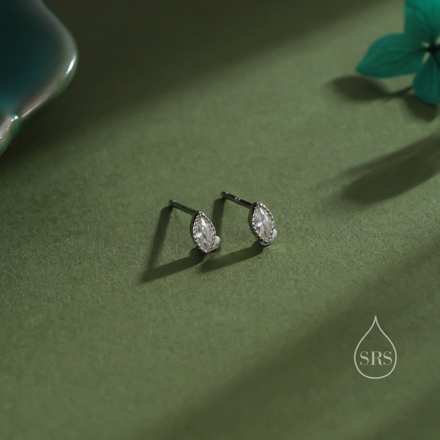 Extra Tiny Marquise CZ Stud Earrings in Sterling Silver, Silver or Gold, Dainty Marquise Crystal Earrings, Bridesmaid's Jewellery