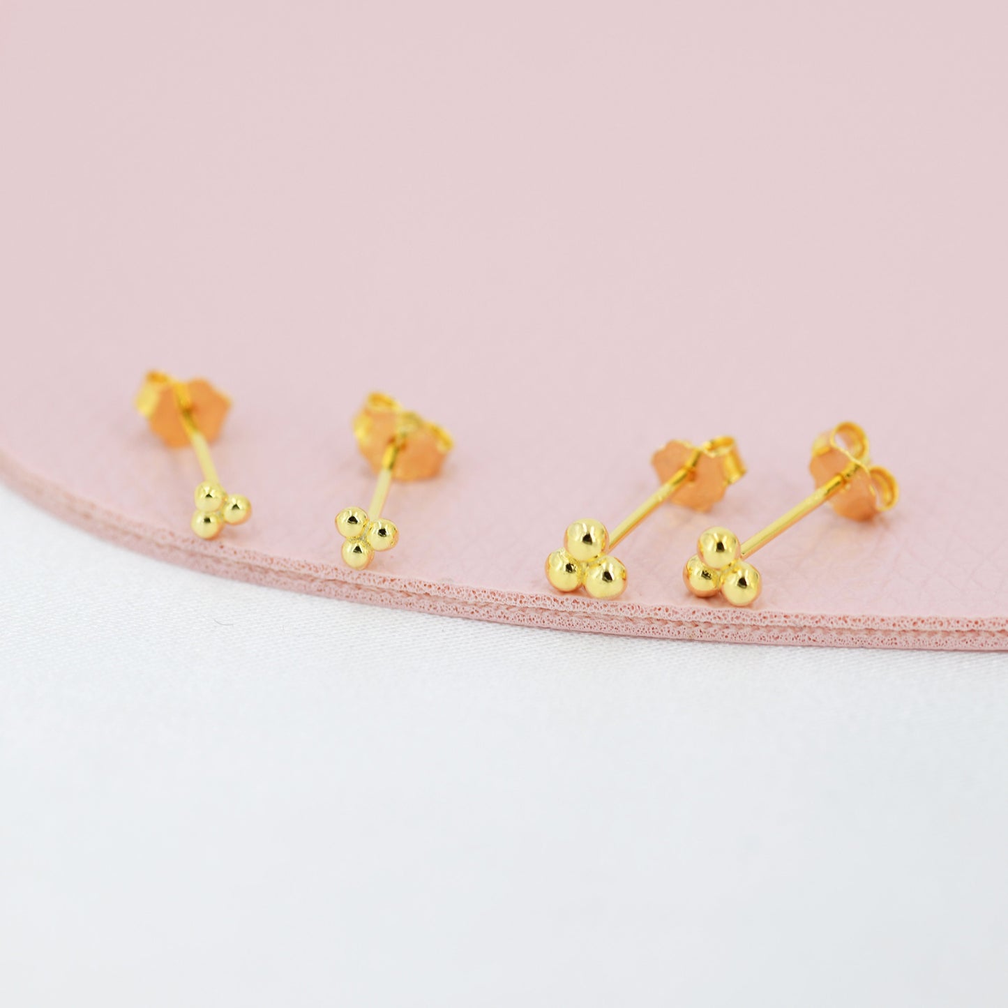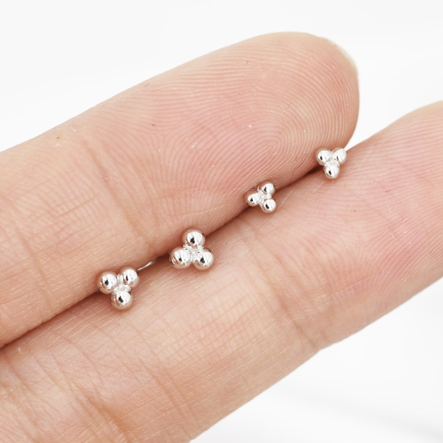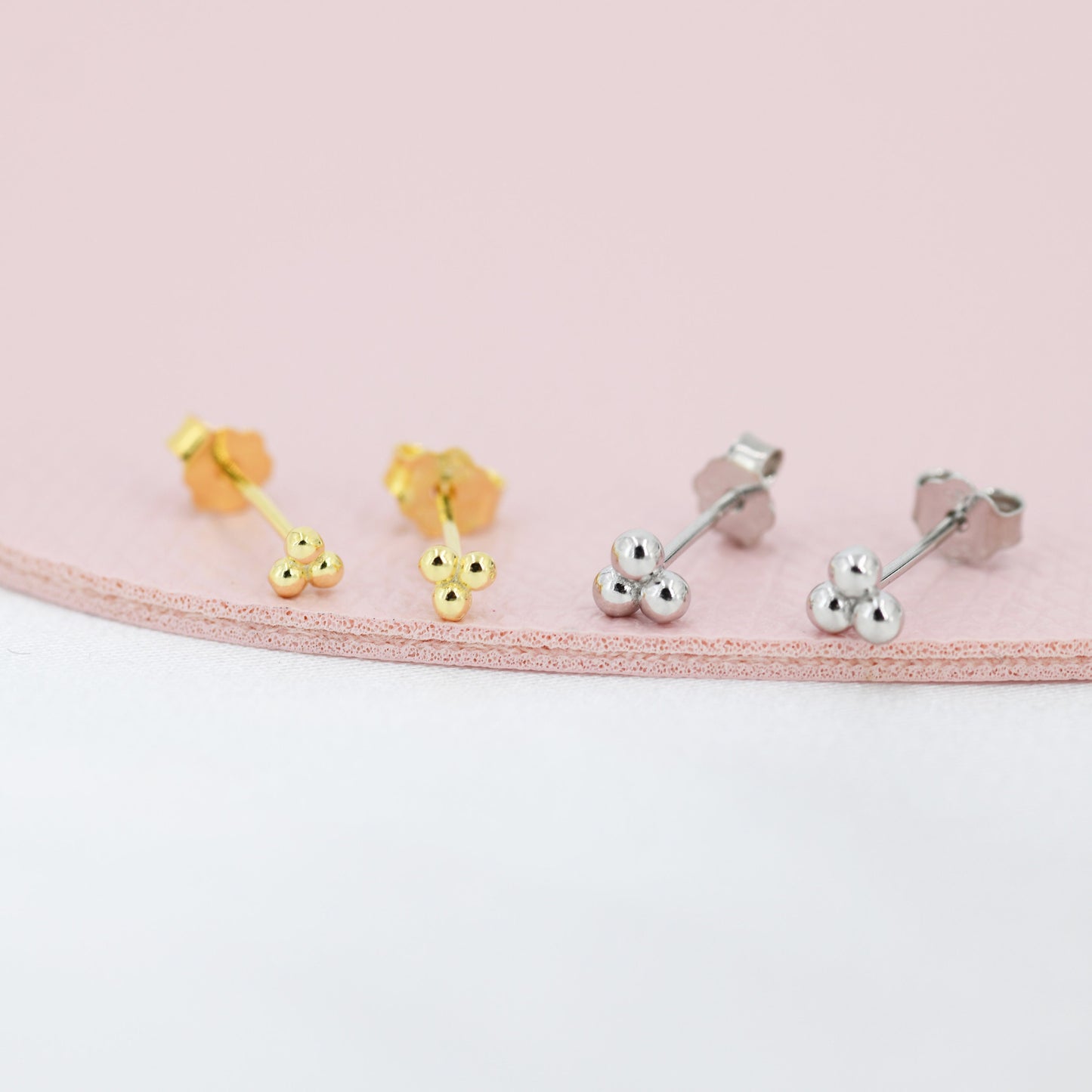 Extra Tiny Three Ball Stud Earrings in Sterling Silver, Gold or Silver, Very Small Earrings, Stacking Earrings