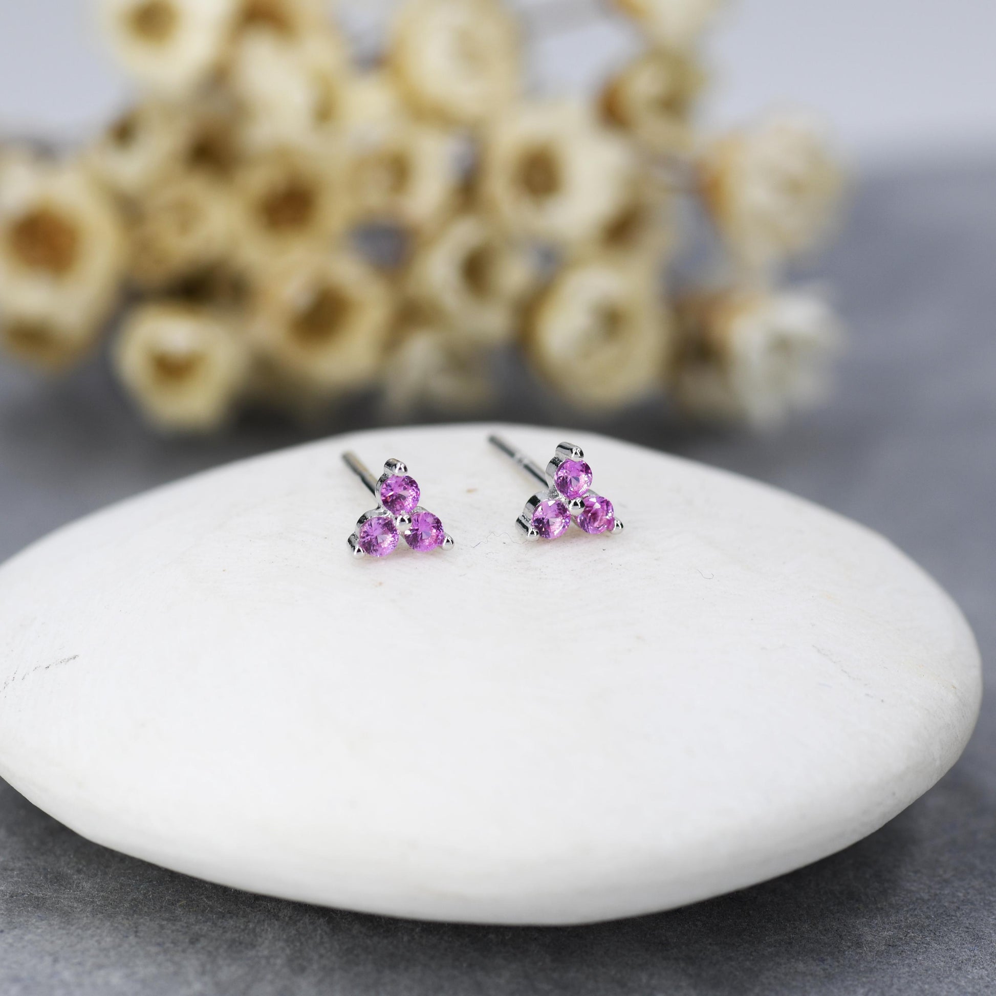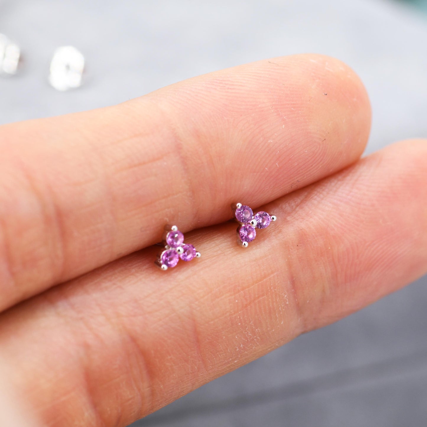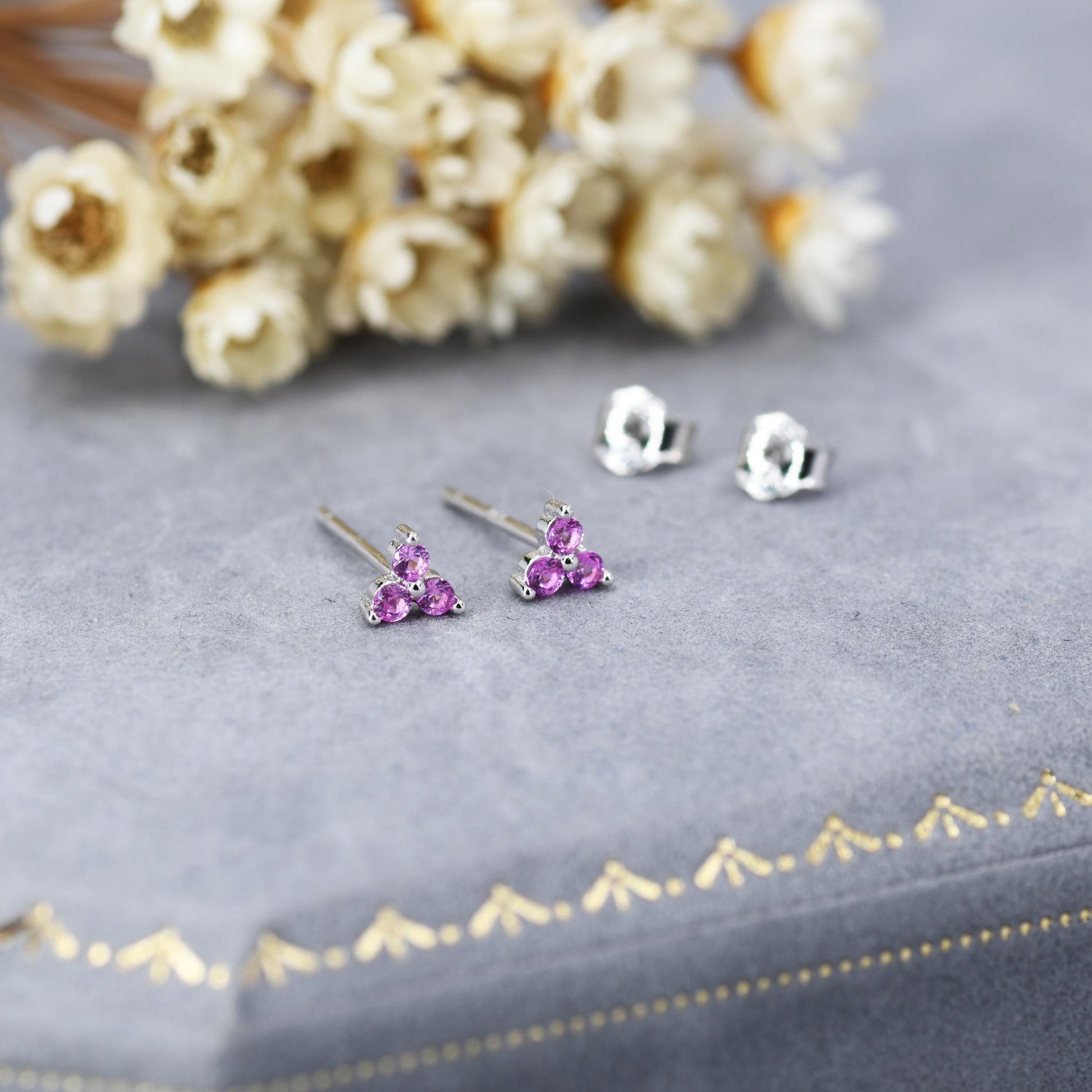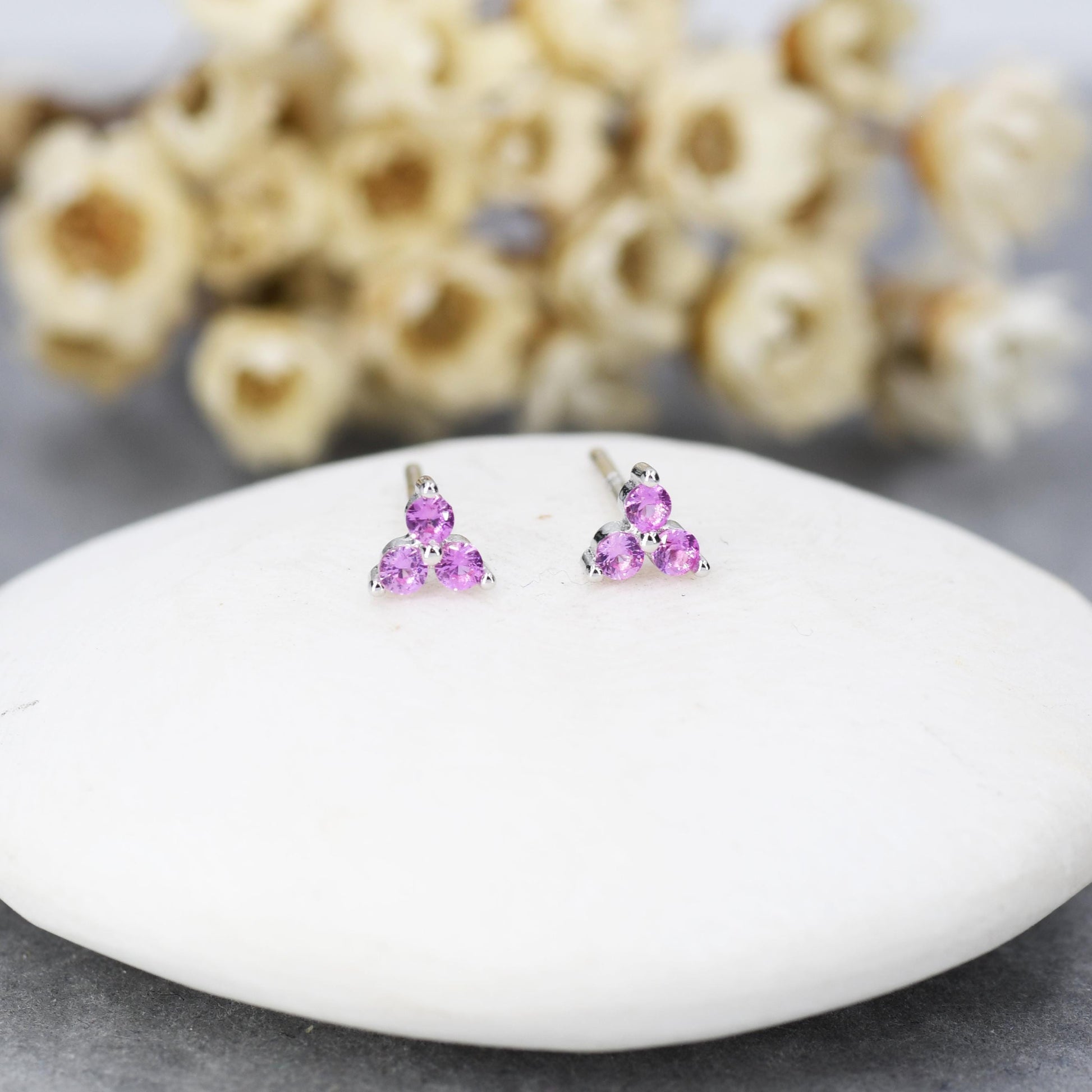 Extra Tiny Three Dot Pale Pink CZ Stud Earrings in Sterling Silver, Silver or Gold, Three Dot Trinity CZ Earrings
