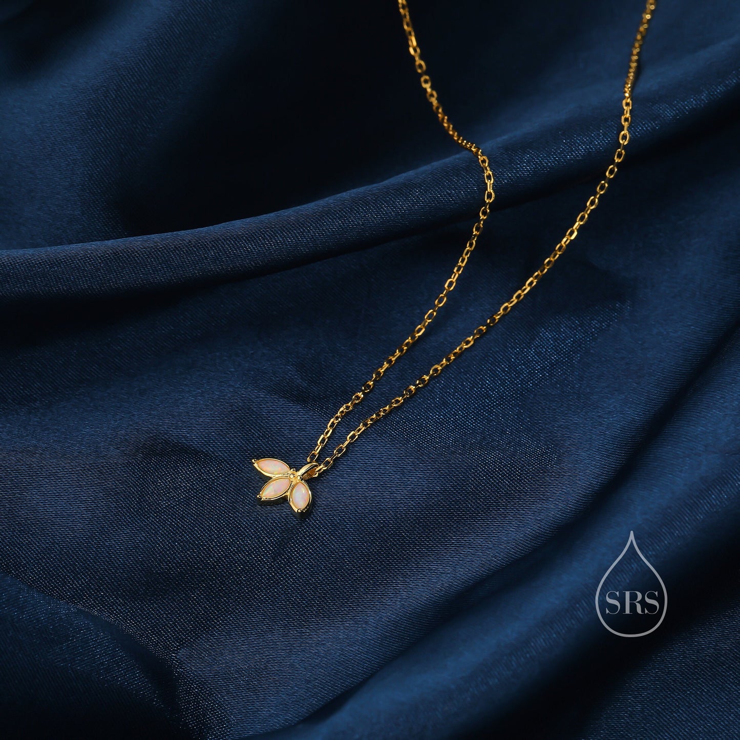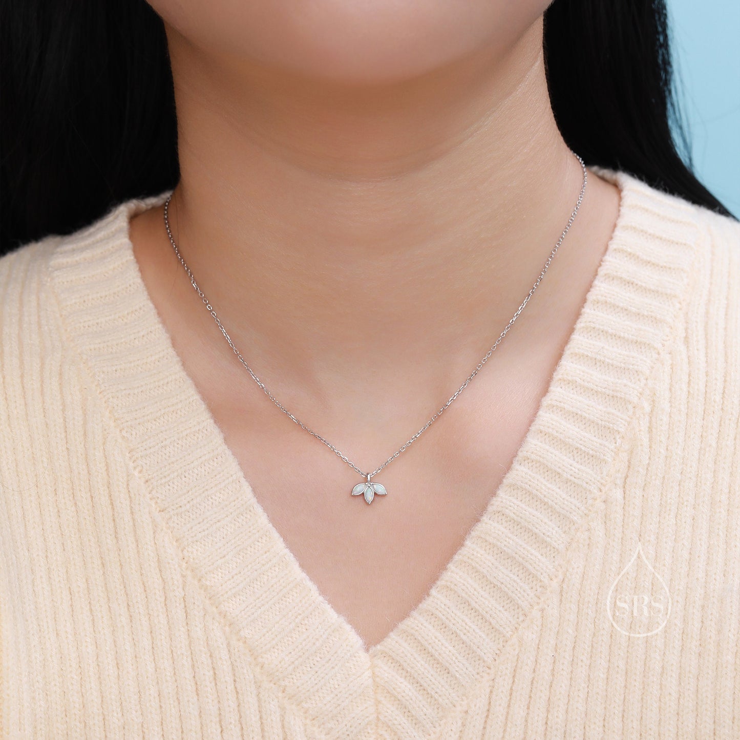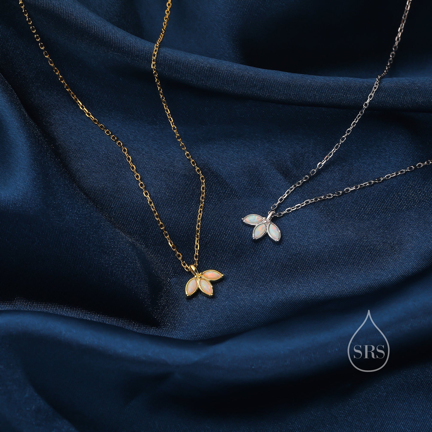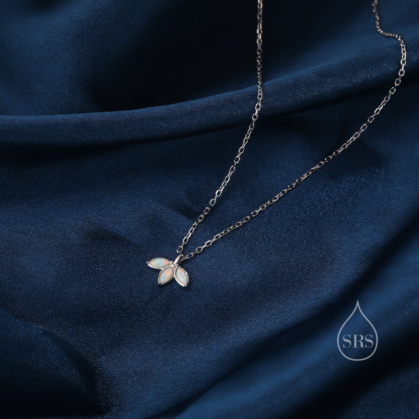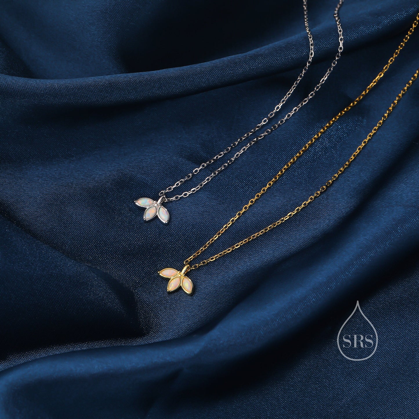 Extra Tiny White Opal Marquise Leaf Pendant Necklace in Sterling Silver, Silver or Gold, Opal Crown Necklace, Small Fire Opal Necklace
