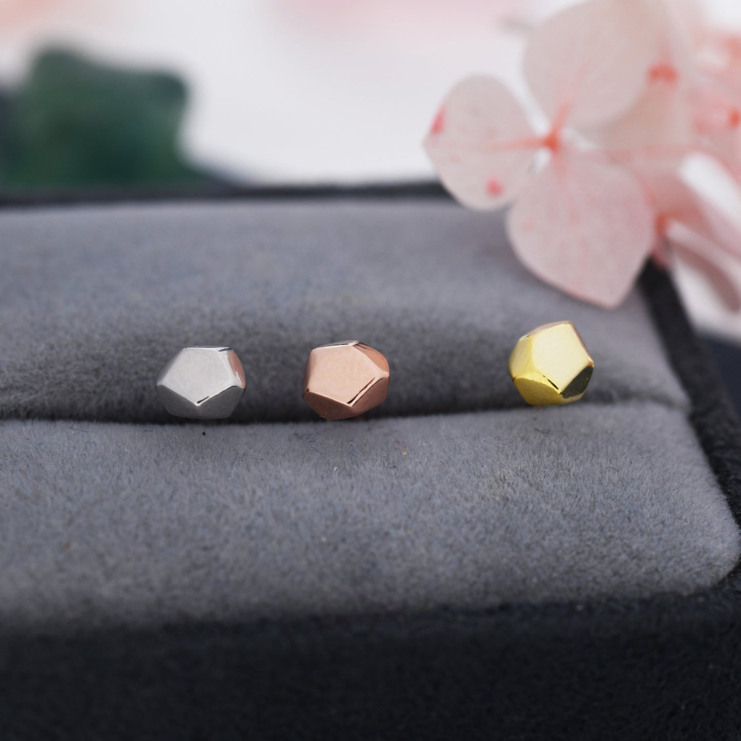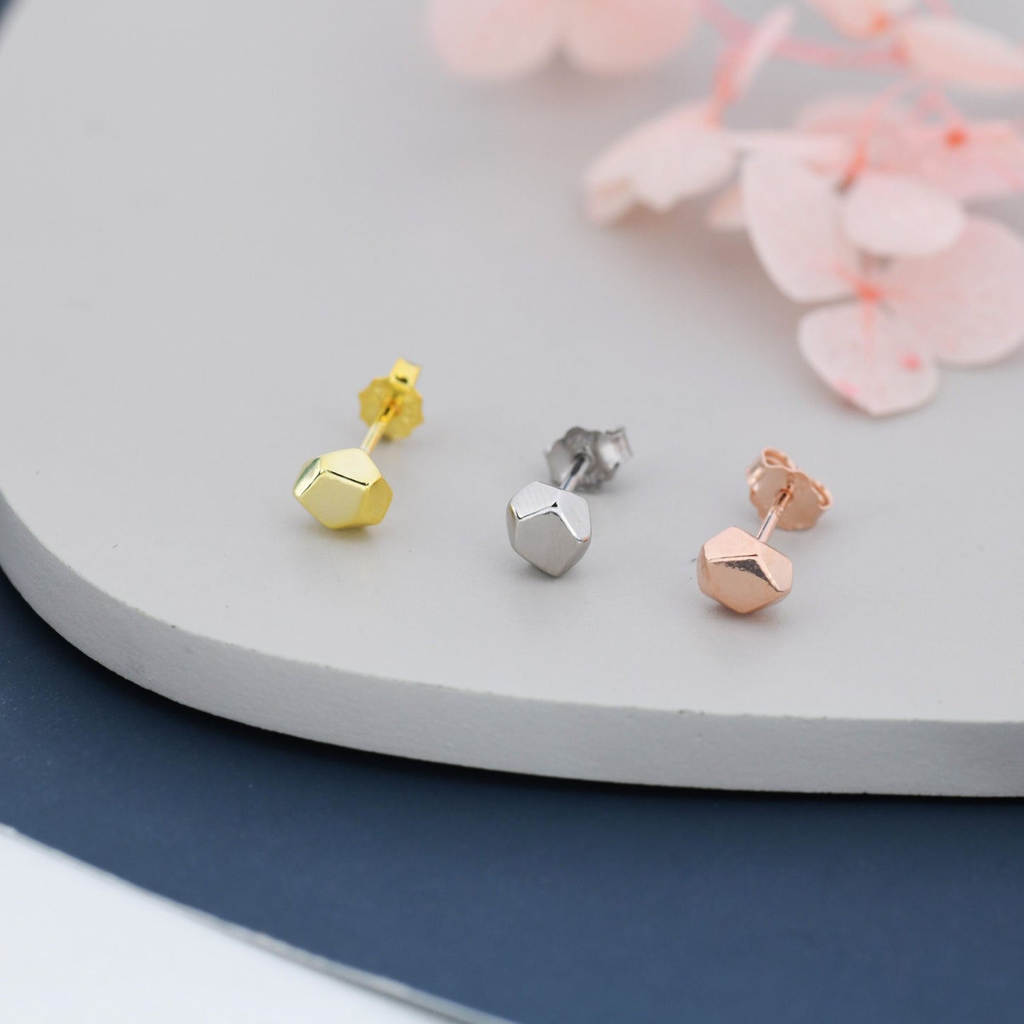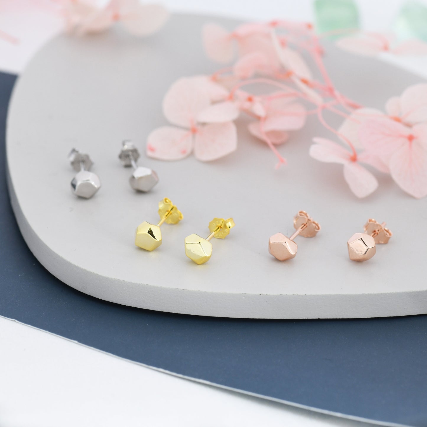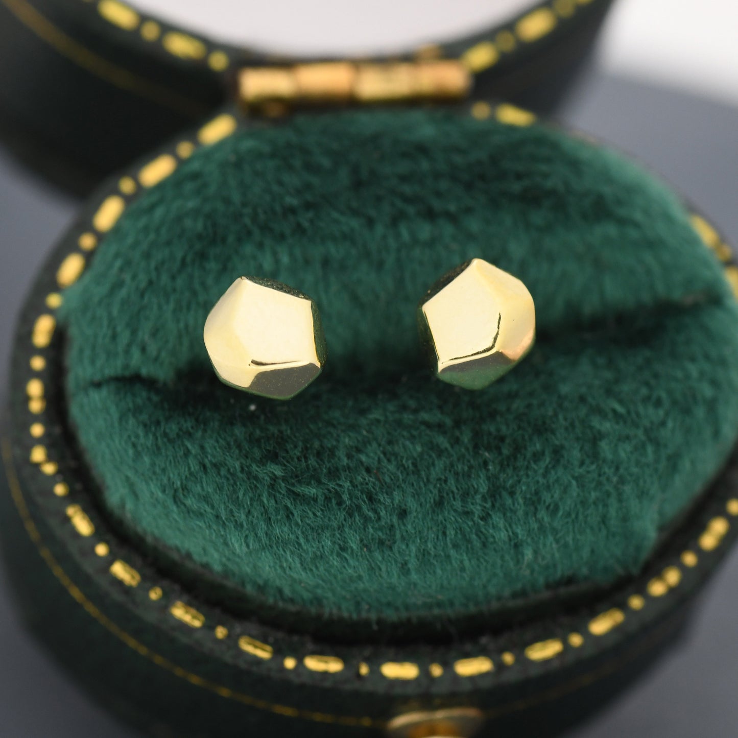 Faceted Nugget Stud Earrings in Sterling Silver, Irregular Shaped Polygon Earrings, Silver, Gold or Rose Gold