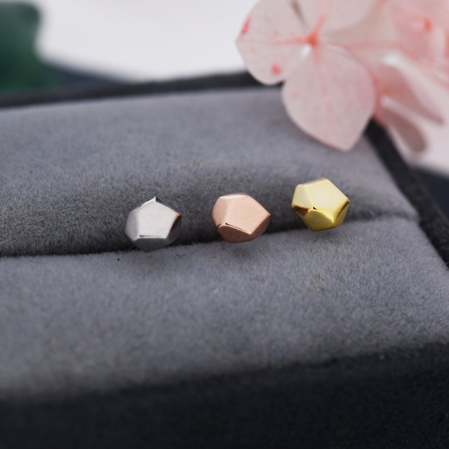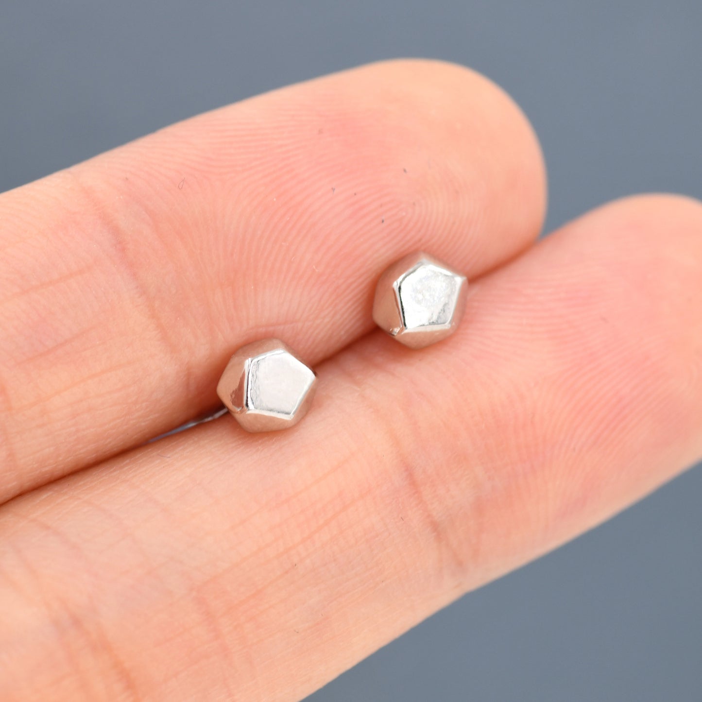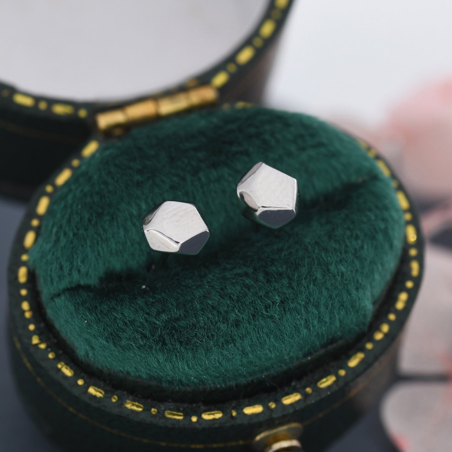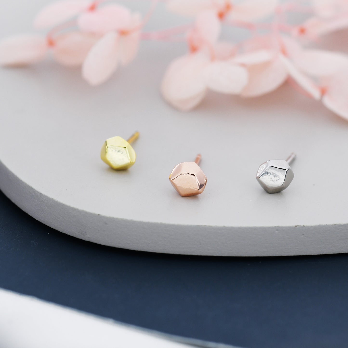 Faceted Nugget Stud Earrings in Sterling Silver, Irregular Shaped Polygon Earrings, Silver, Gold or Rose Gold